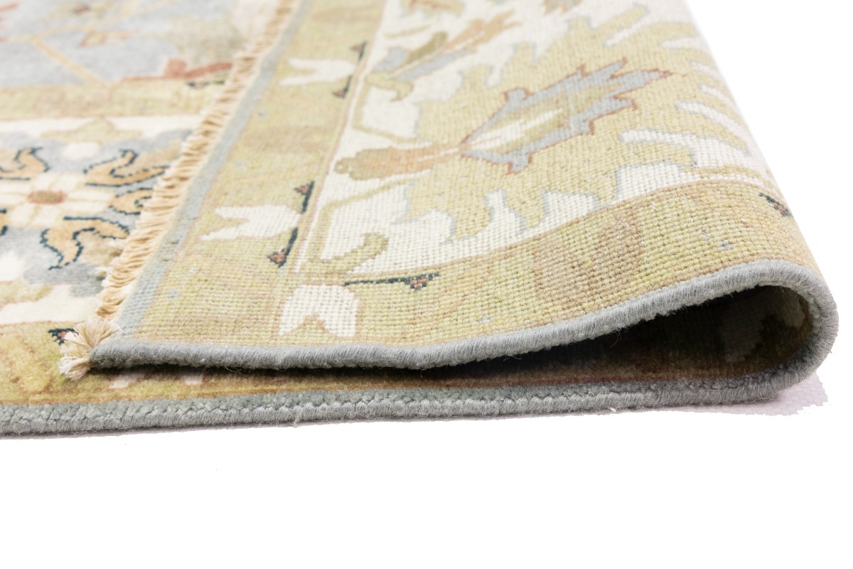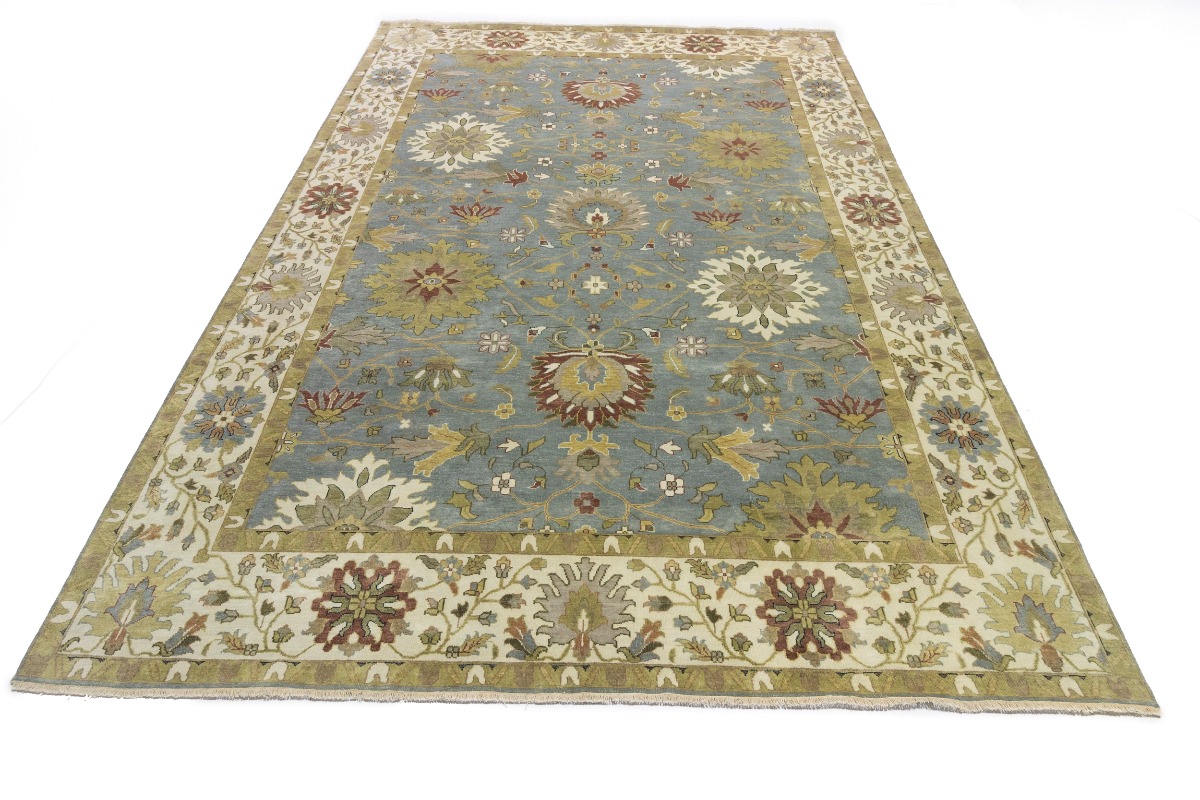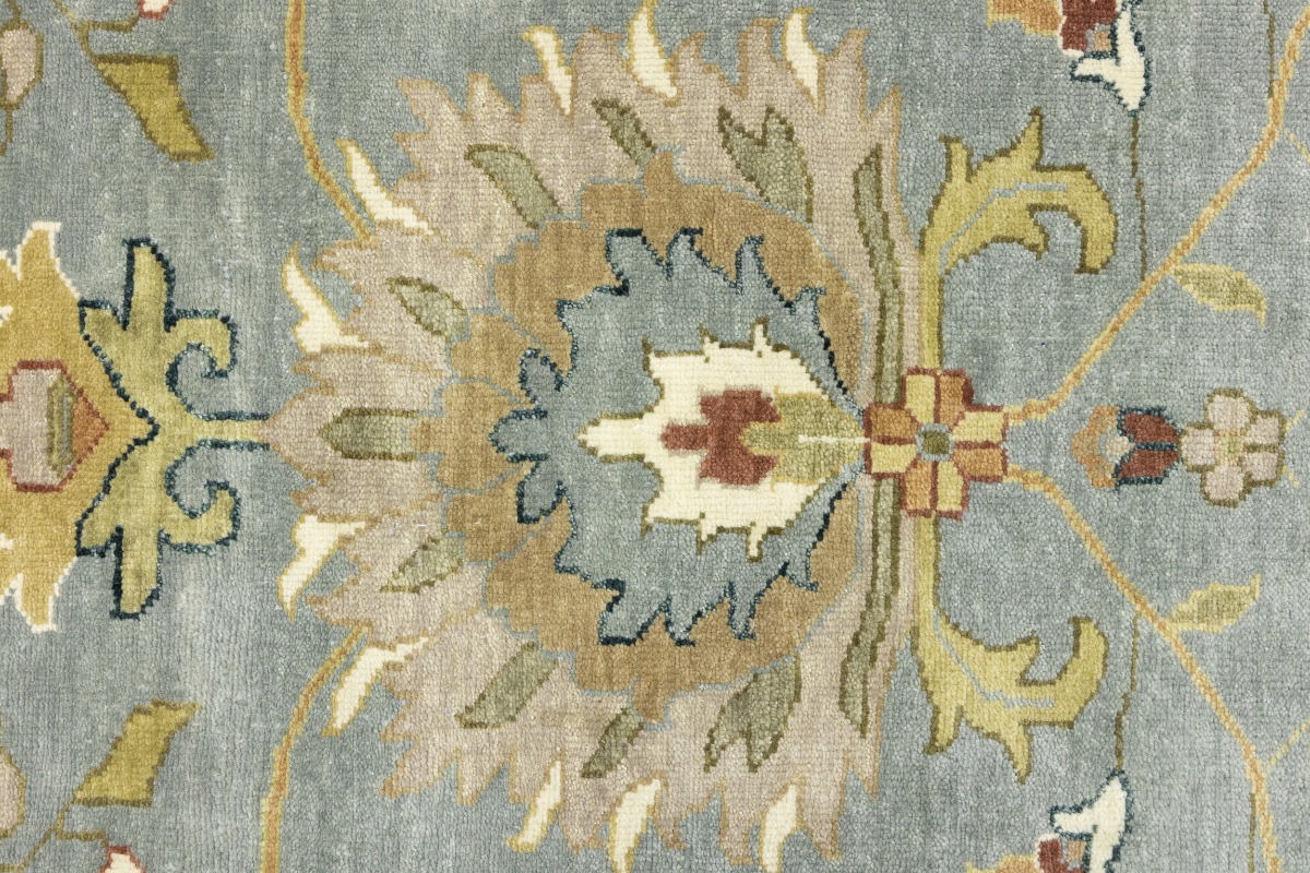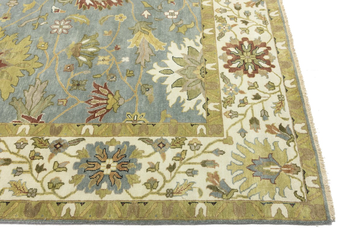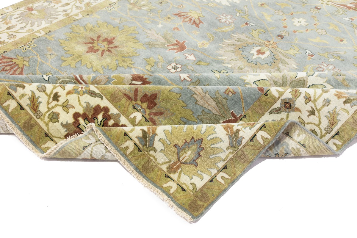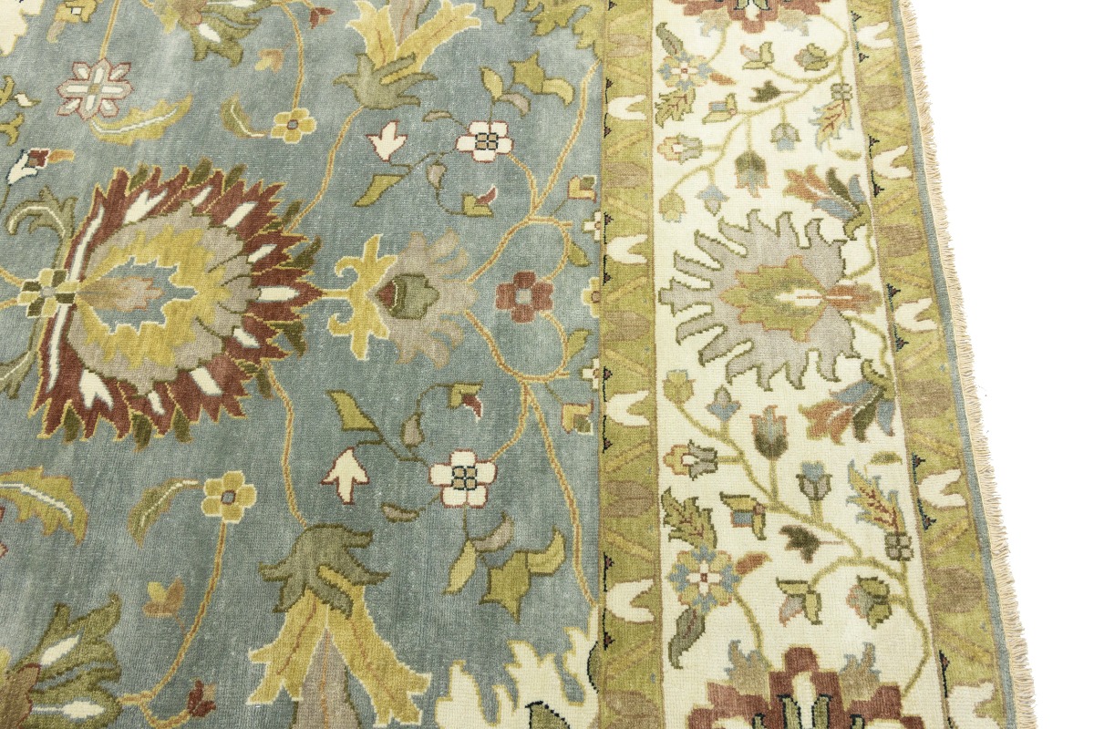 This authentic 10X14 blue-gray new Oriental rug was crafted by the hands of skilled weavers enthused by a variety of lovely artistic designs, to recreate the aged look of the unique piece with a richness of color and beautifully elaborated background field. What set this vintage style Oriental area rug from the others are the material and dye used (wool pile and cotton foundation), knot count, ancient designs, fantastic grades, and its regional historical connection: it has deep roots, from the story of the people who produced it to the meaning of the symbols and colors displayed across its canvas that have been praised for centuries. This Indian home décor carpet will be completely cozy and inviting that never will go out of style! Also, this Oriental rug would be among your most valuable treasures, it is a great investment that increase in value over time, and it will last for generations because was woven with high-quality, all-natural wool. Environmentally friendly, opulent yet affordable; this rug will give you a thorough amount of character to help define your living space with sophistication and warmth that will capture the eyes and attention of your audience (homeowners, designers, decorators, family and friends). OT-8335