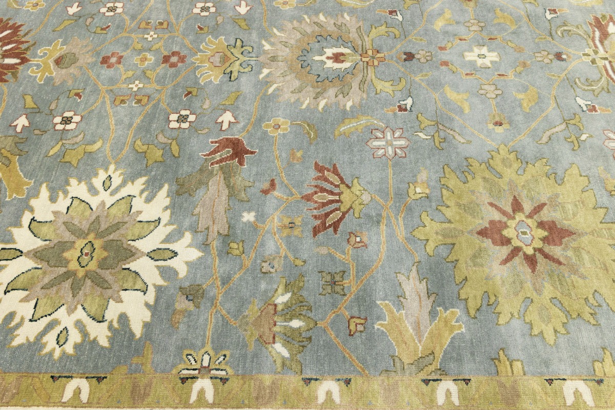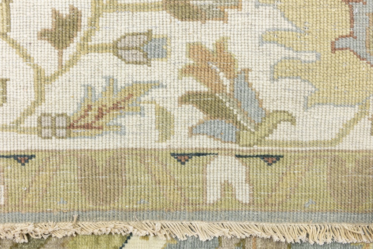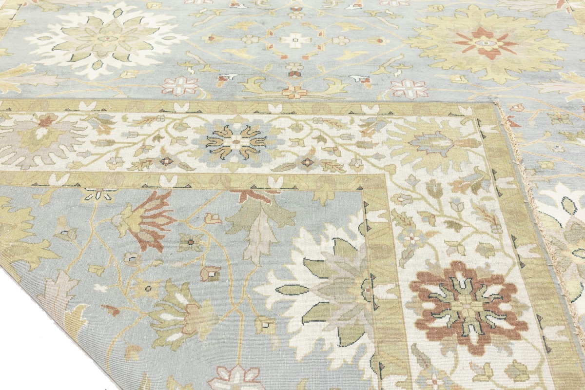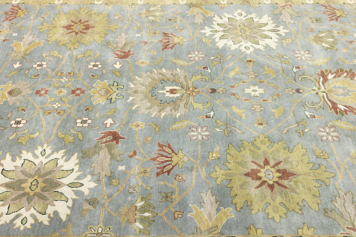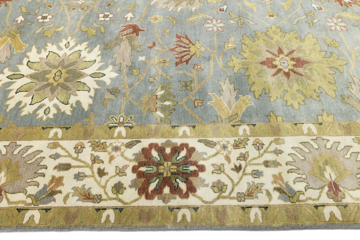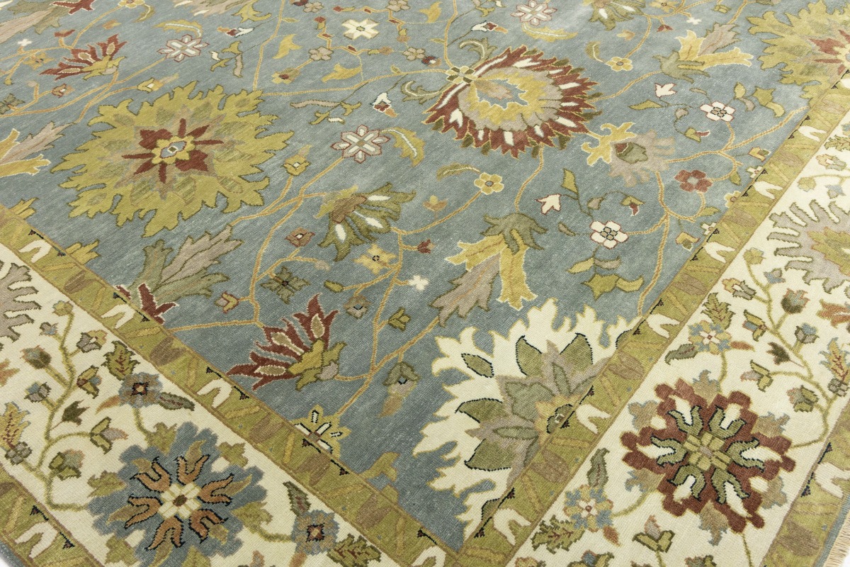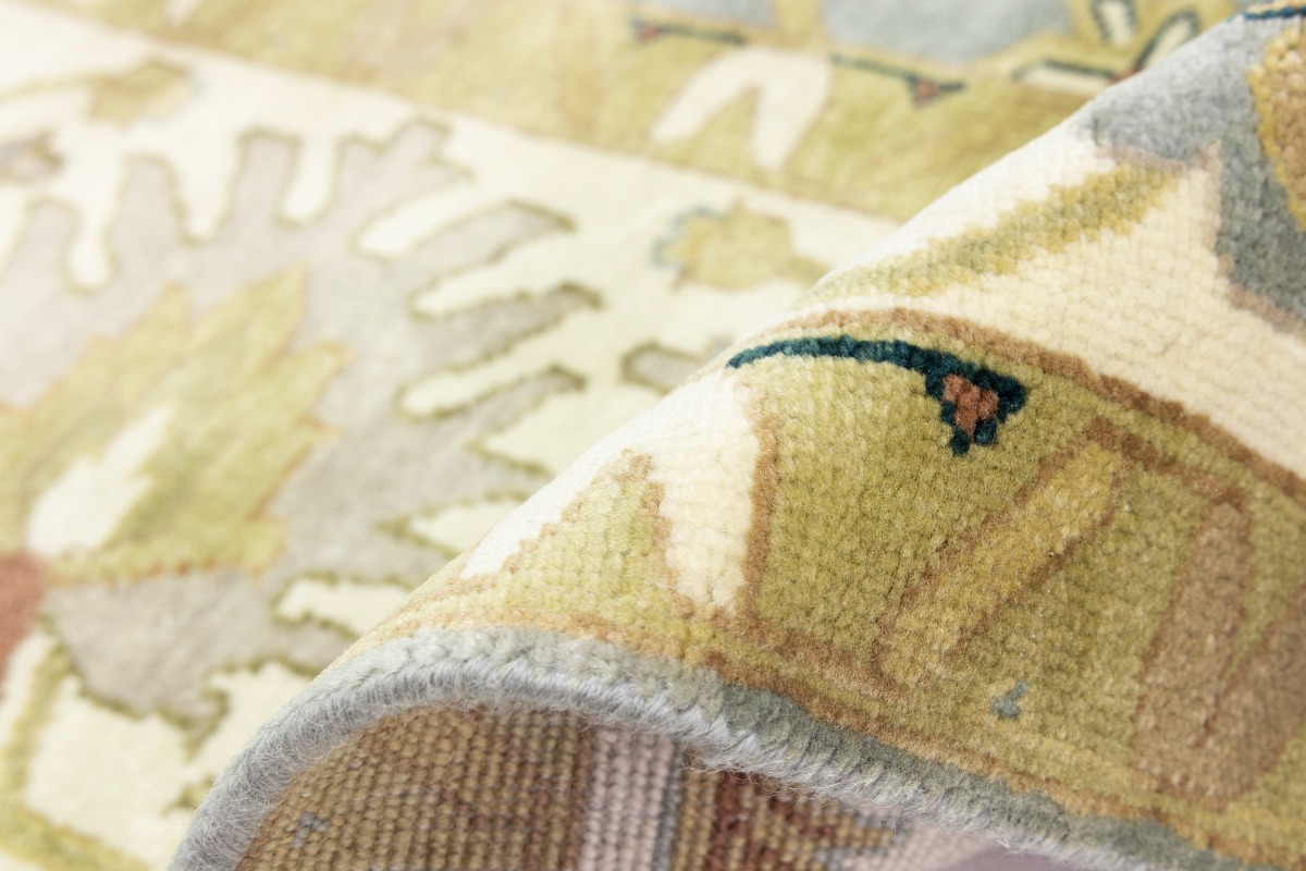 This authentic 10X14 blue-gray new Oriental rug was crafted by the hands of skilled weavers enthused by a variety of lovely artistic designs, to recreate the aged look of the unique piece with a richness of color and beautifully elaborated background field. What set this vintage style Oriental area rug from the others are the material and dye used (wool pile and cotton foundation), knot count, ancient designs, fantastic grades, and its regional historical connection: it has deep roots, from the story of the people who produced it to the meaning of the symbols and colors displayed across its canvas that have been praised for centuries. This Indian home décor carpet will be completely cozy and inviting that never will go out of style! Also, this Oriental rug would be among your most valuable treasures, it is a great investment that increase in value over time, and it will last for generations because was woven with high-quality, all-natural wool. Environmentally friendly, opulent yet affordable; this rug will give you a thorough amount of character to help define your living space with sophistication and warmth that will capture the eyes and attention of your audience (homeowners, designers, decorators, family and friends). OT-8335