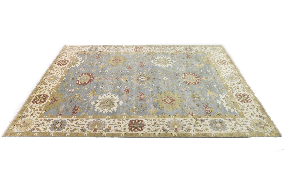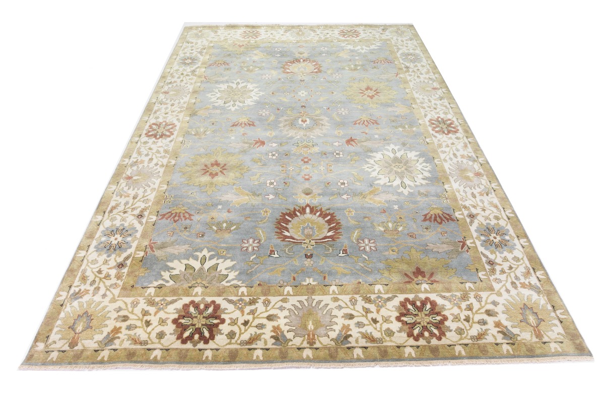 Hand Knotted 10X14 blue-gray oriental rug made with natural dyes (fine wool pile and cotton foundation), superior knot count, and appealing ancient designs. This Oriental rug never will go out of style and would be among your most valuable treasures.