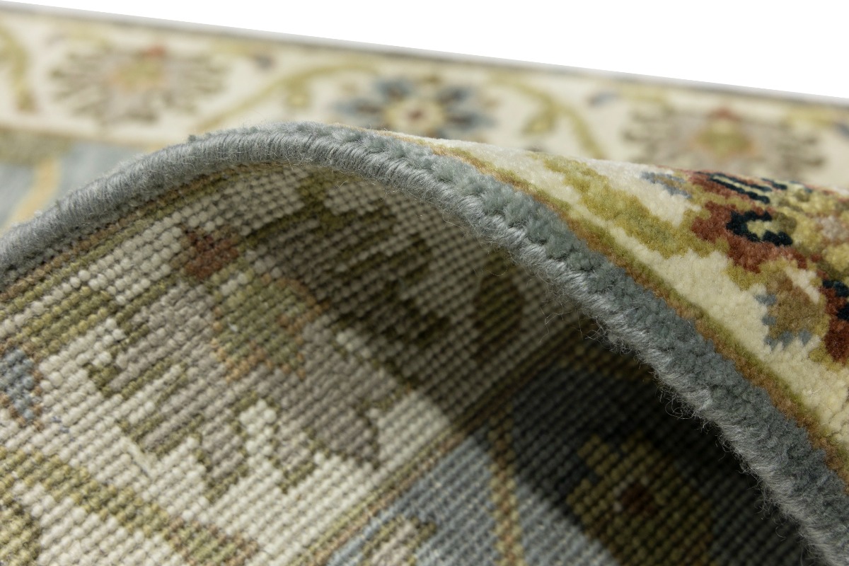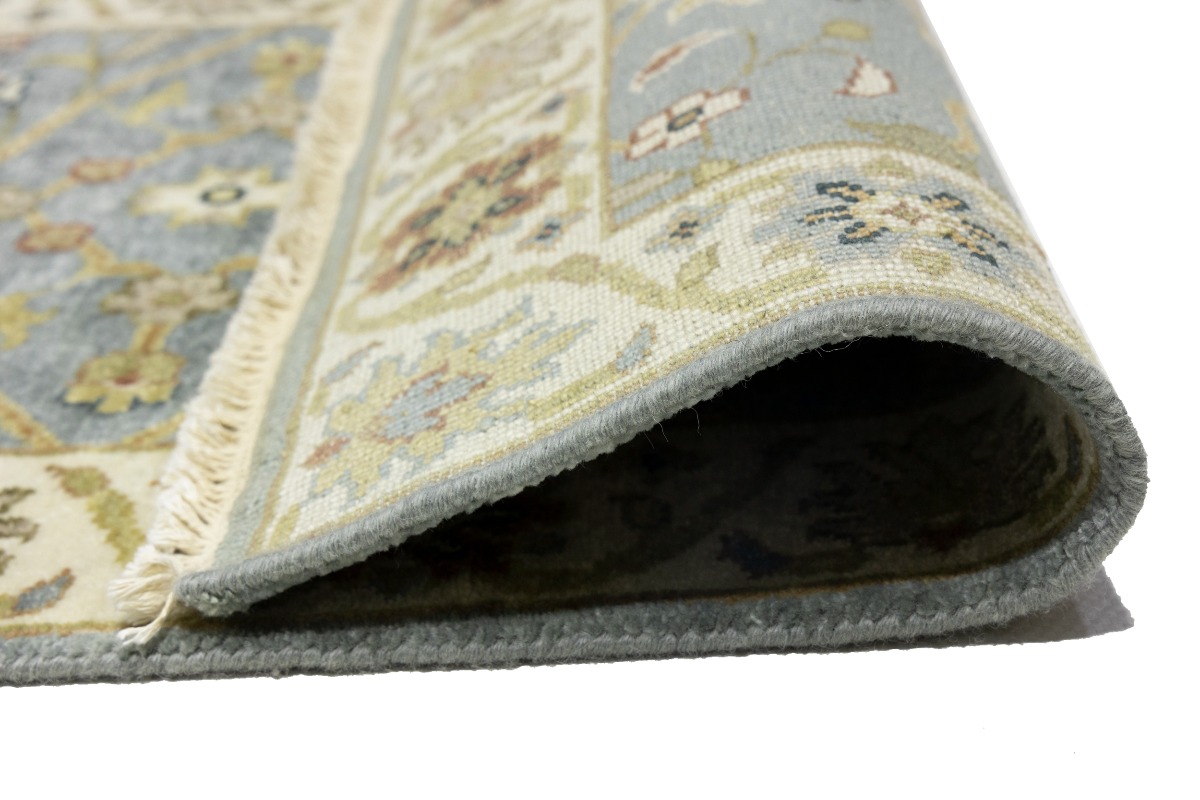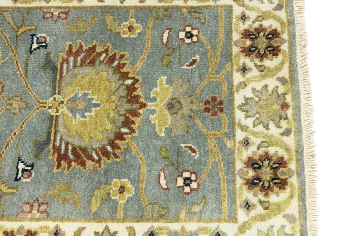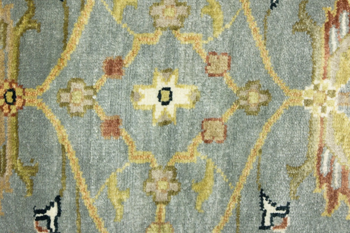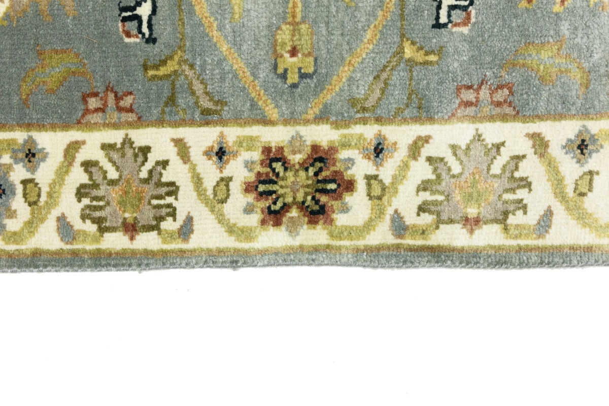 This authentic 2'5X12 blue-gray new Oriental runner was crafted by the hands of skilled weavers enthused by a variety of lovely artistic designs, to recreate the aged look of the unique piece with a richness of color and beautifully elaborated background field. What set this vintage style Oriental area runner from the others are the material and dye used (wool pile and cotton foundation), knot count, ancient designs, fantastic grades, and its regional historical connection: it has deep roots, from the story of the people who produced it to the meaning of the symbols and colors displayed across its canvas that have been praised for centuries. This Indian home décor carpet will be completely cozy and inviting that never will go out of style! Also, this Oriental rug would be among your most valuable treasures, it is a great investment that increase in value over time, and it will last for generations because was woven with high-quality, all-natural wool. Environmentally friendly, opulent yet affordable; this runner will give you a thorough amount of character to help define your living space with sophistication and warmth that will capture the eyes and attention of your audience (homeowners, designers, decorators, family and friends). OT-8338