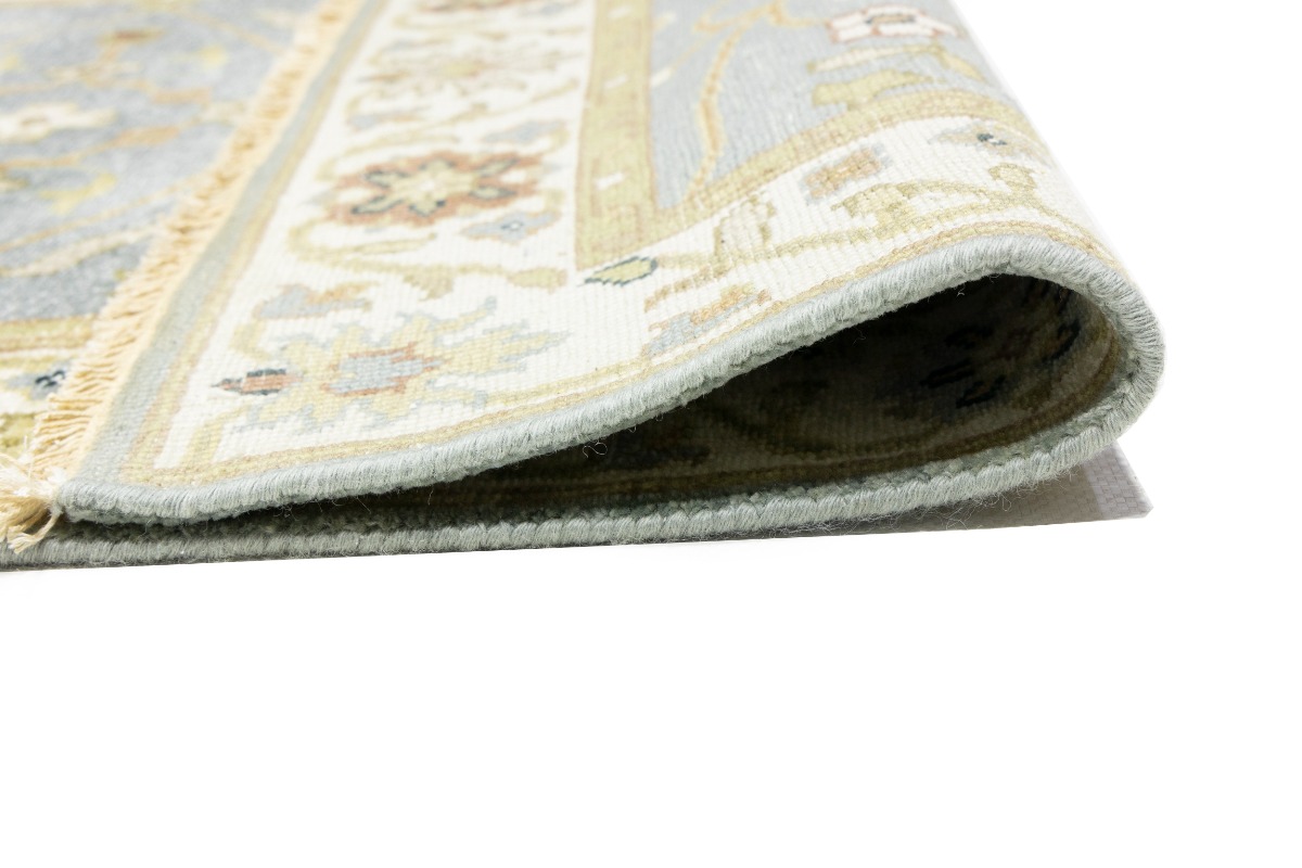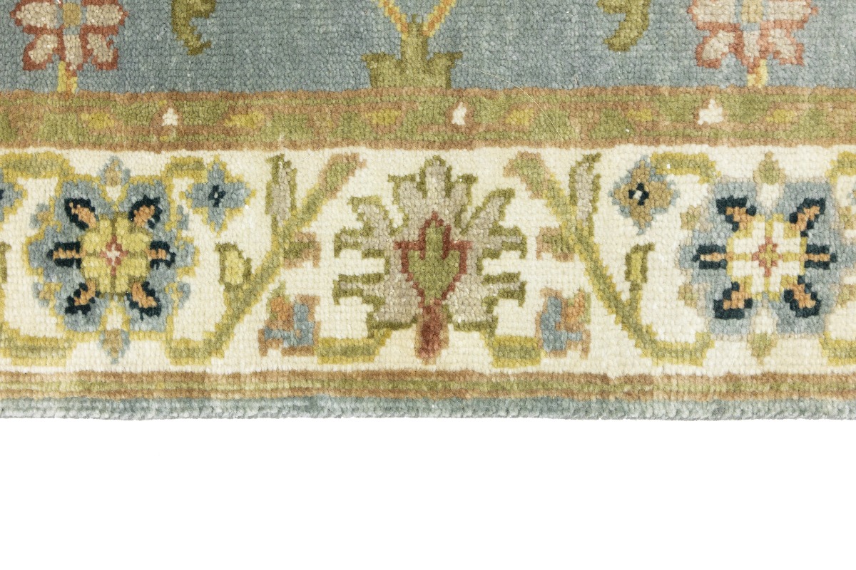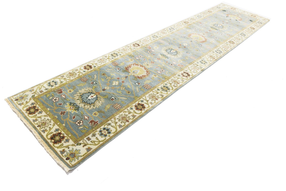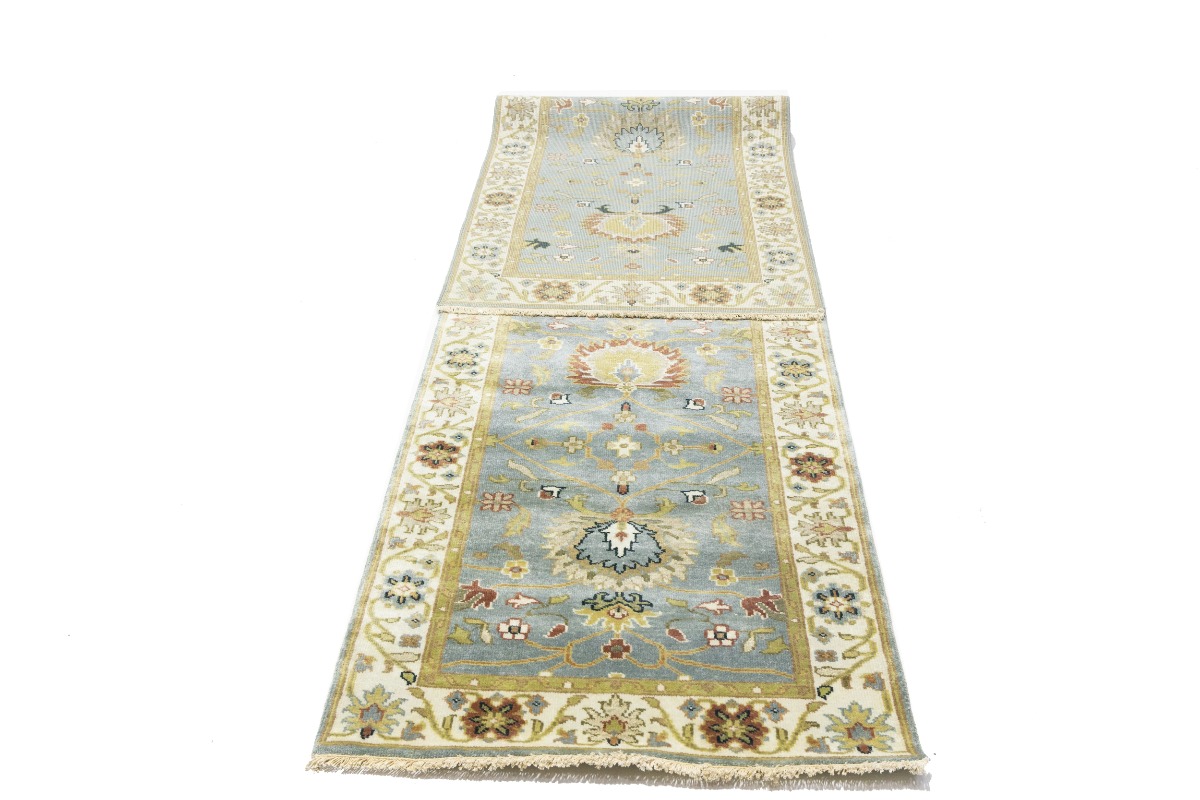 This authentic 3X13 blue-gray new Oriental runner was crafted by the hands of skilled weavers enthused by a variety of lovely artistic designs, to recreate the aged look of the unique piece with a richness of color and beautifully elaborated background field. What set this vintage style Oriental area runner from the others are the material and dye used (wool pile and cotton foundation), knot count, ancient designs, fantastic grades, and its regional historical connection: it has deep roots, from the story of the people who produced it to the meaning of the symbols and colors displayed across its canvas that have been praised for centuries. This Indian home décor carpet will be completely cozy and inviting that never will go out of style! Also, this Oriental rug would be among your most valuable treasures, it is a great investment that increase in value over time, and it will last for generations because was woven with high-quality, all-natural wool. Environmentally friendly, opulent yet affordable; this runner will give you a thorough amount of character to help define your living space with sophistication and warmth that will capture the eyes and attention of your audience (homeowners, designers, decorators, family and friends). OT-8340