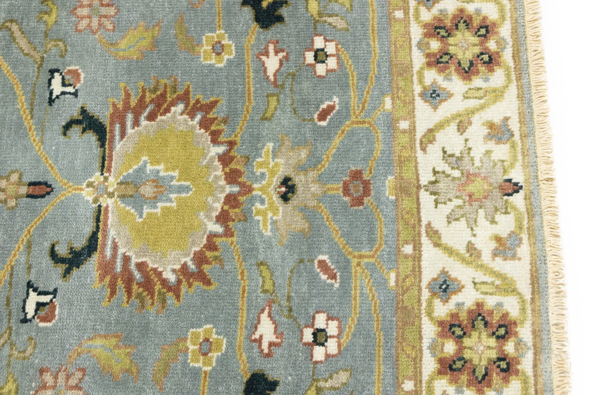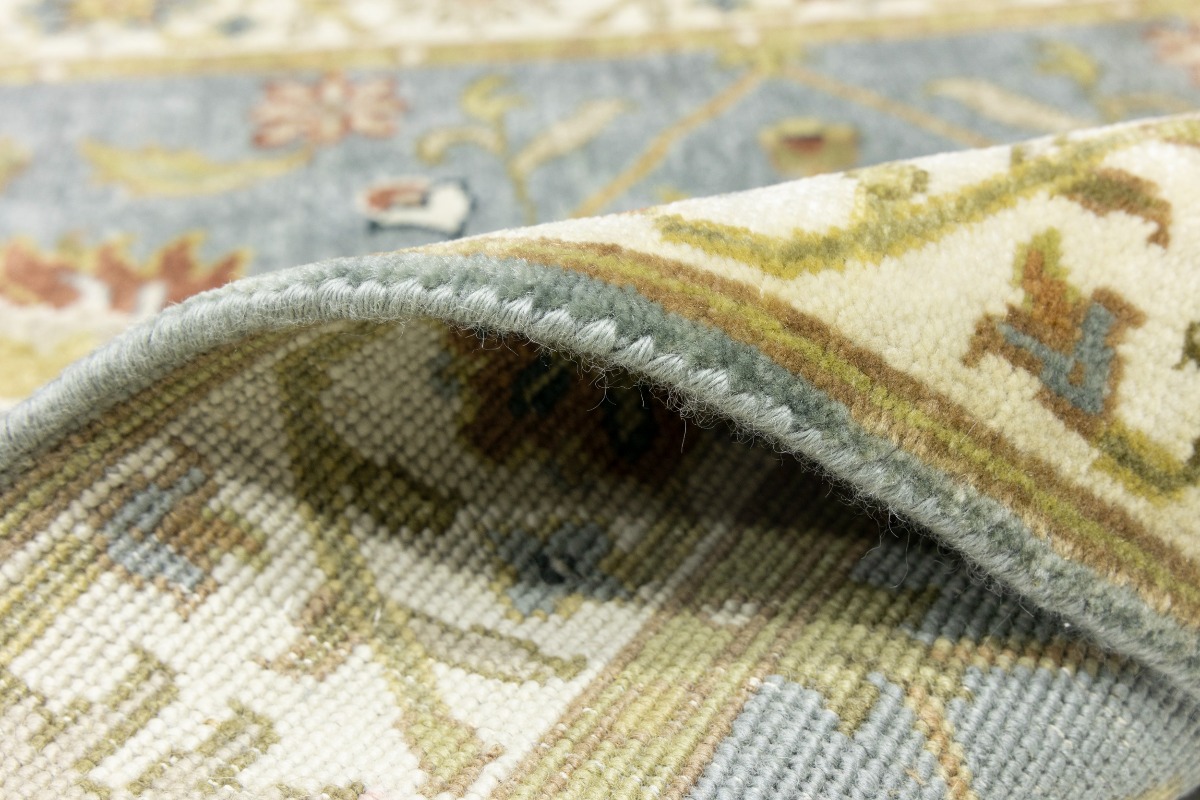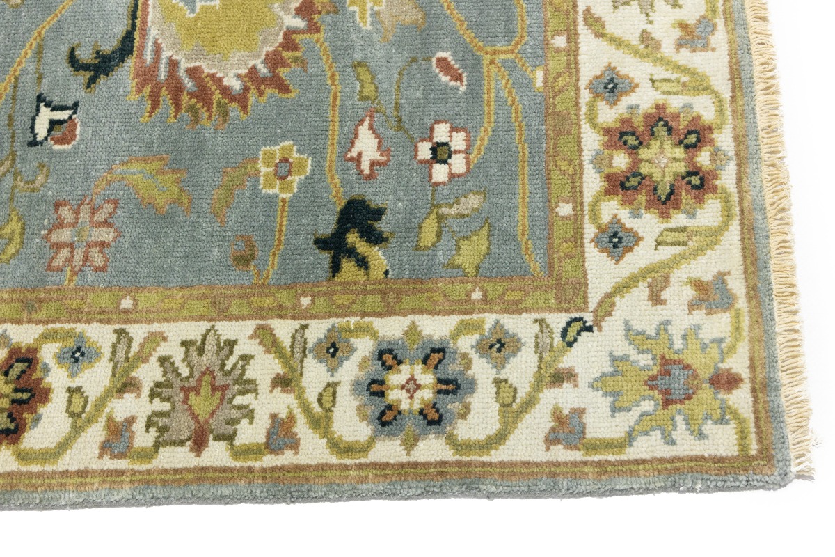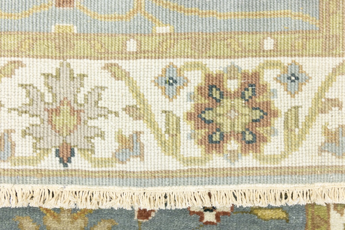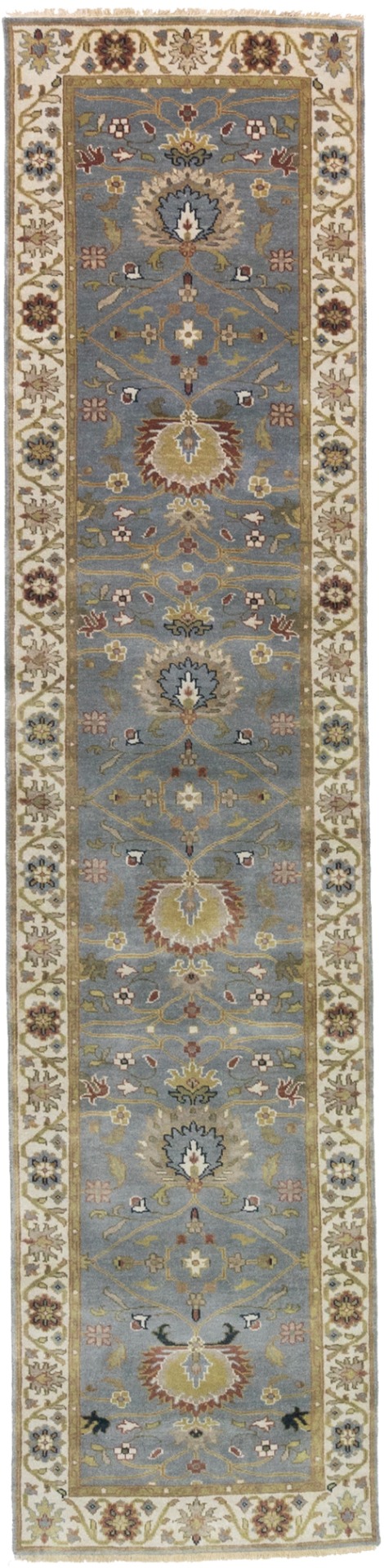 This authentic 3X13 blue-gray new Oriental runner was crafted by the hands of skilled weavers enthused by a variety of lovely artistic designs, to recreate the aged look of the unique piece with a richness of color and beautifully elaborated background field. What set this vintage style Oriental area runner from the others are the material and dye used (wool pile and cotton foundation), knot count, ancient designs, fantastic grades, and its regional historical connection: it has deep roots, from the story of the people who produced it to the meaning of the symbols and colors displayed across its canvas that have been praised for centuries. This Indian home décor carpet will be completely cozy and inviting that never will go out of style! Also, this Oriental rug would be among your most valuable treasures, it is a great investment that increase in value over time, and it will last for generations because was woven with high-quality, all-natural wool. Environmentally friendly, opulent yet affordable; this runner will give you a thorough amount of character to help define your living space with sophistication and warmth that will capture the eyes and attention of your audience (homeowners, designers, decorators, family and friends). OT-8340