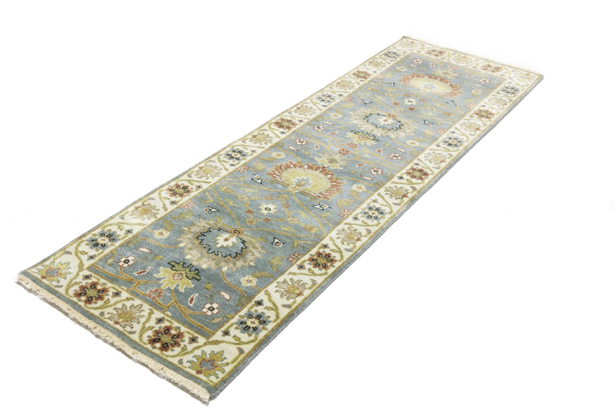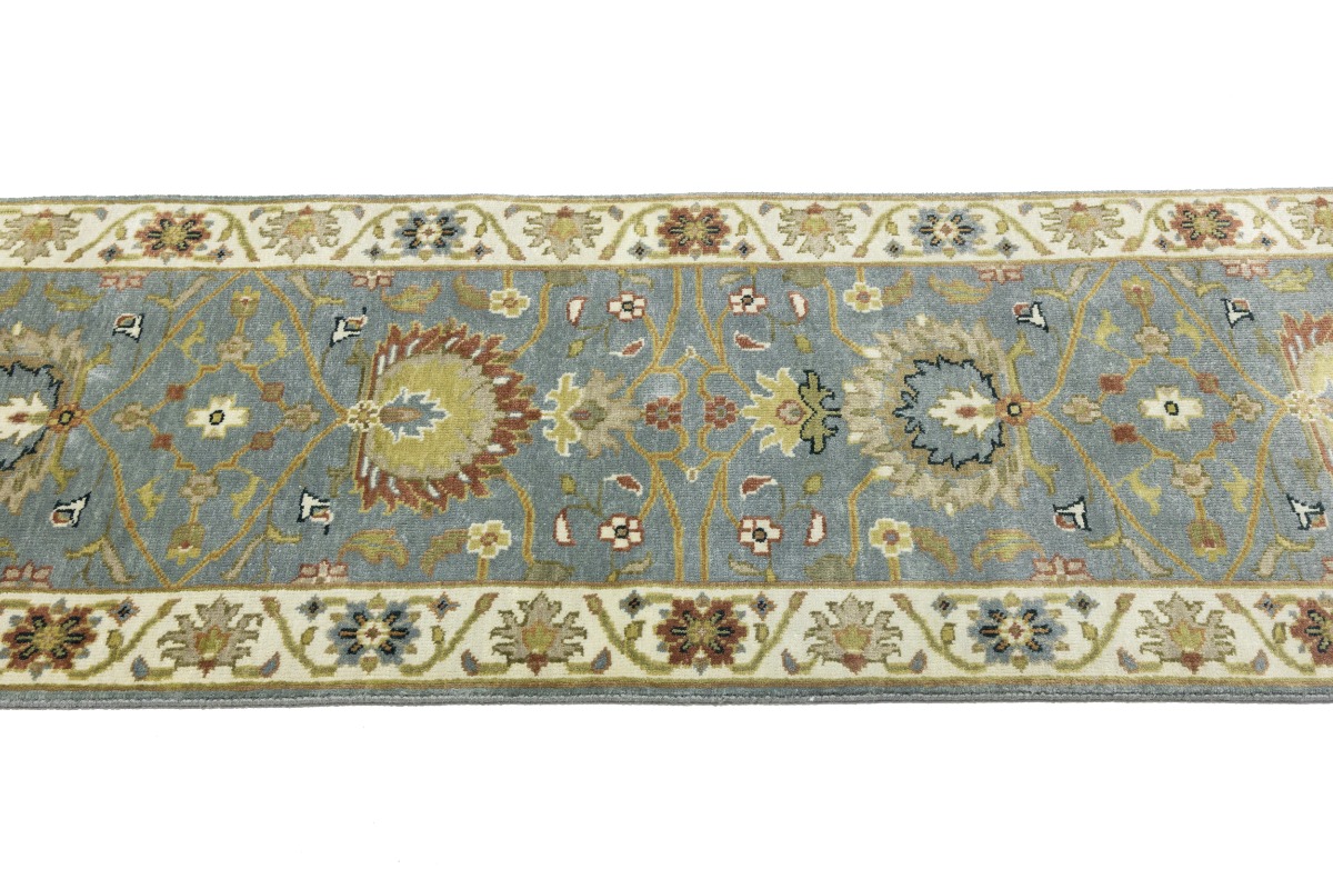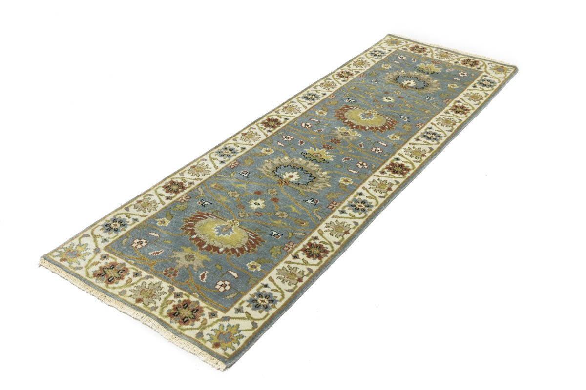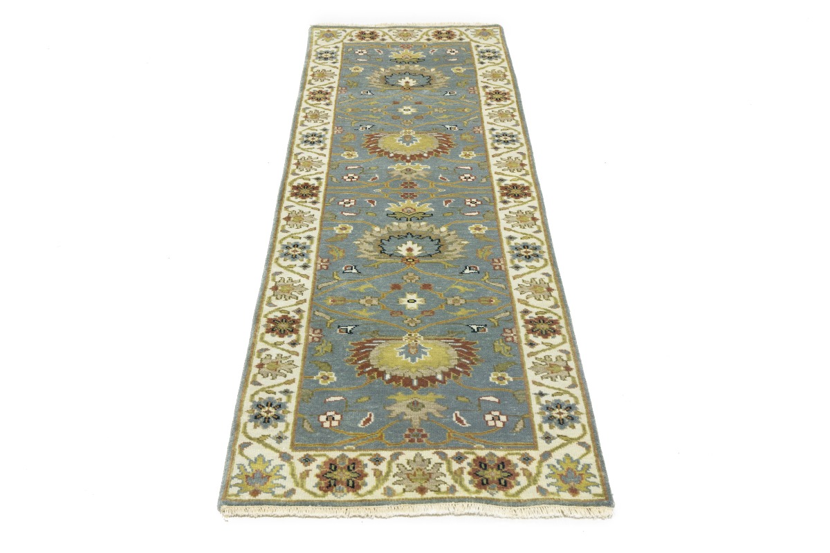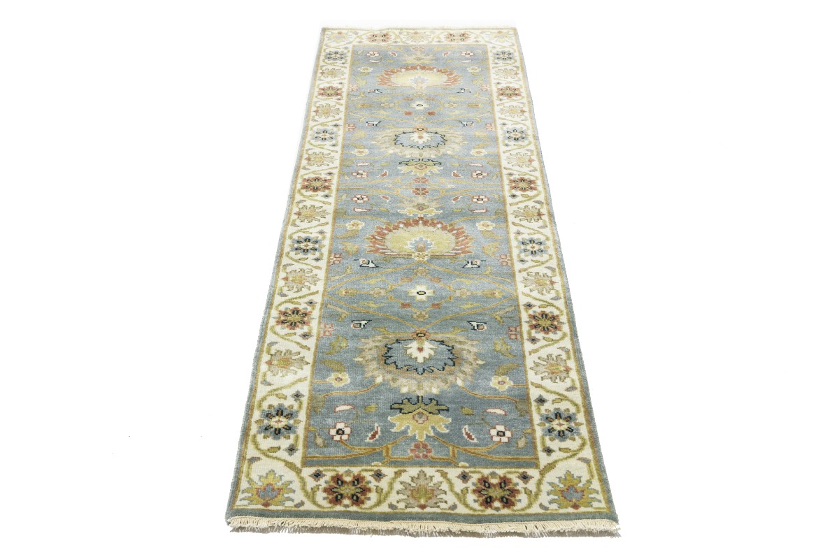 This original 3X8 blue-gray new Oriental runner was finely knotted by the hands of weavers influenced by a variety of amazing artistic designs, to recreate the aged look of the exceptional piece with a richness of color and embellished background field. What set this vintage style Oriental area runner from the others are the material and dye used (wool pile and cotton foundation), knot count, antique designs, fantastic grades, and its regional historical connection: it has deep roots, from the story of the people who produced it to the meaning of the symbols and colors displayed across its canvas that have been praised for centuries. This Indian home décor carpet will be completely cozy and inviting that never will go out of style! Also, this Oriental rug would be among your most valuable treasures, it is a great investment that increase in value over time, and it will last a lifetime because was woven with high-quality, all-natural wool. Eco-friendly, opulent yet affordable; this runner will give you an extra pop of character to help define your home environment with luxury and warmth that will capture the eyes and attention of your audience (homeowners, designers, decorators, family and friends). OT-8336