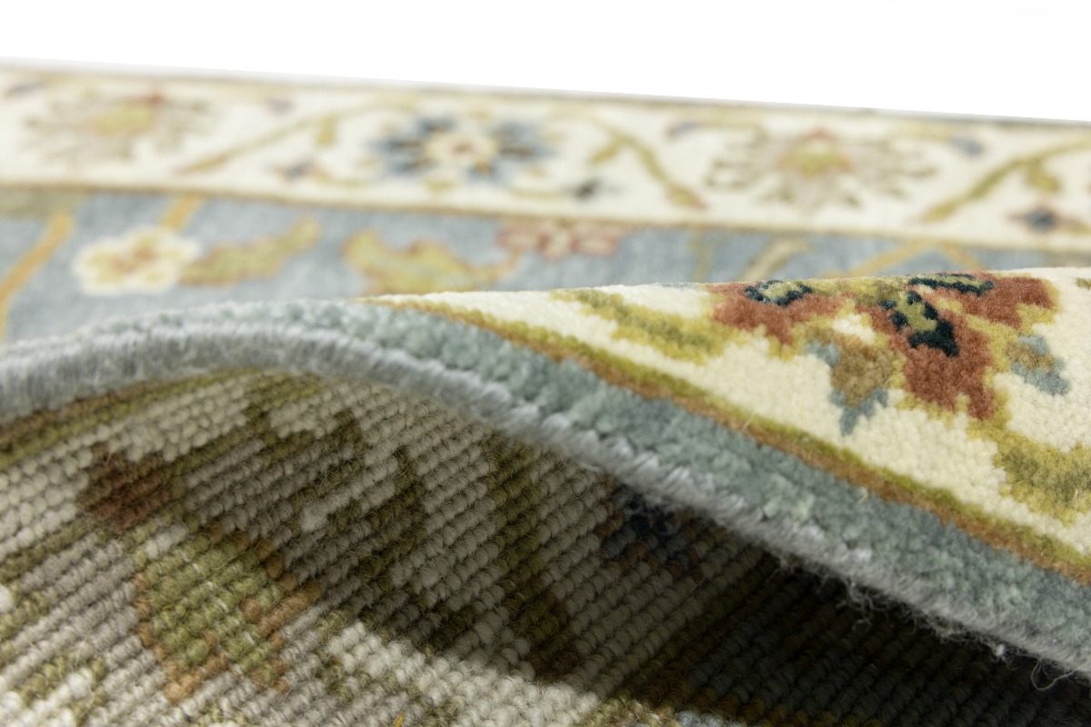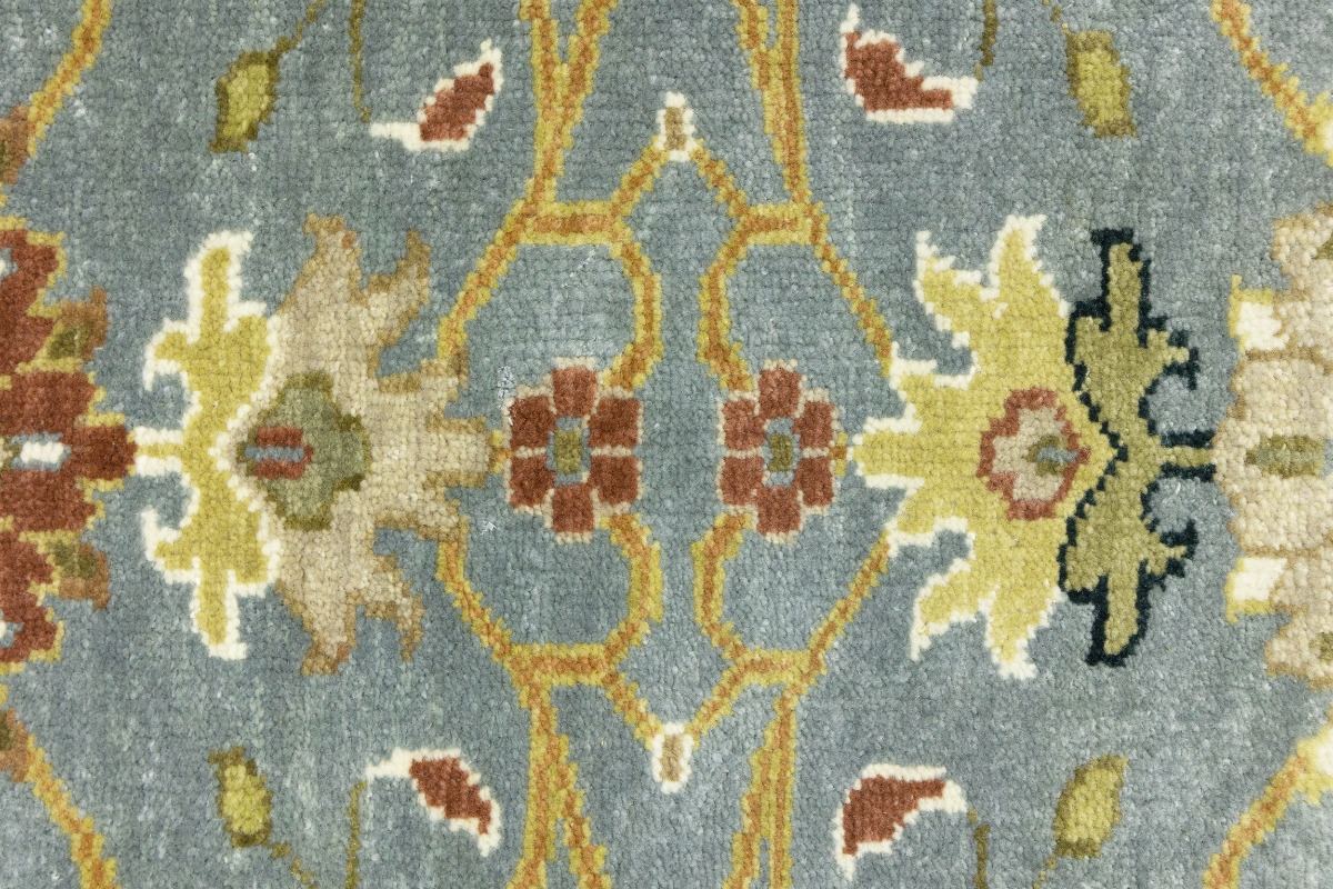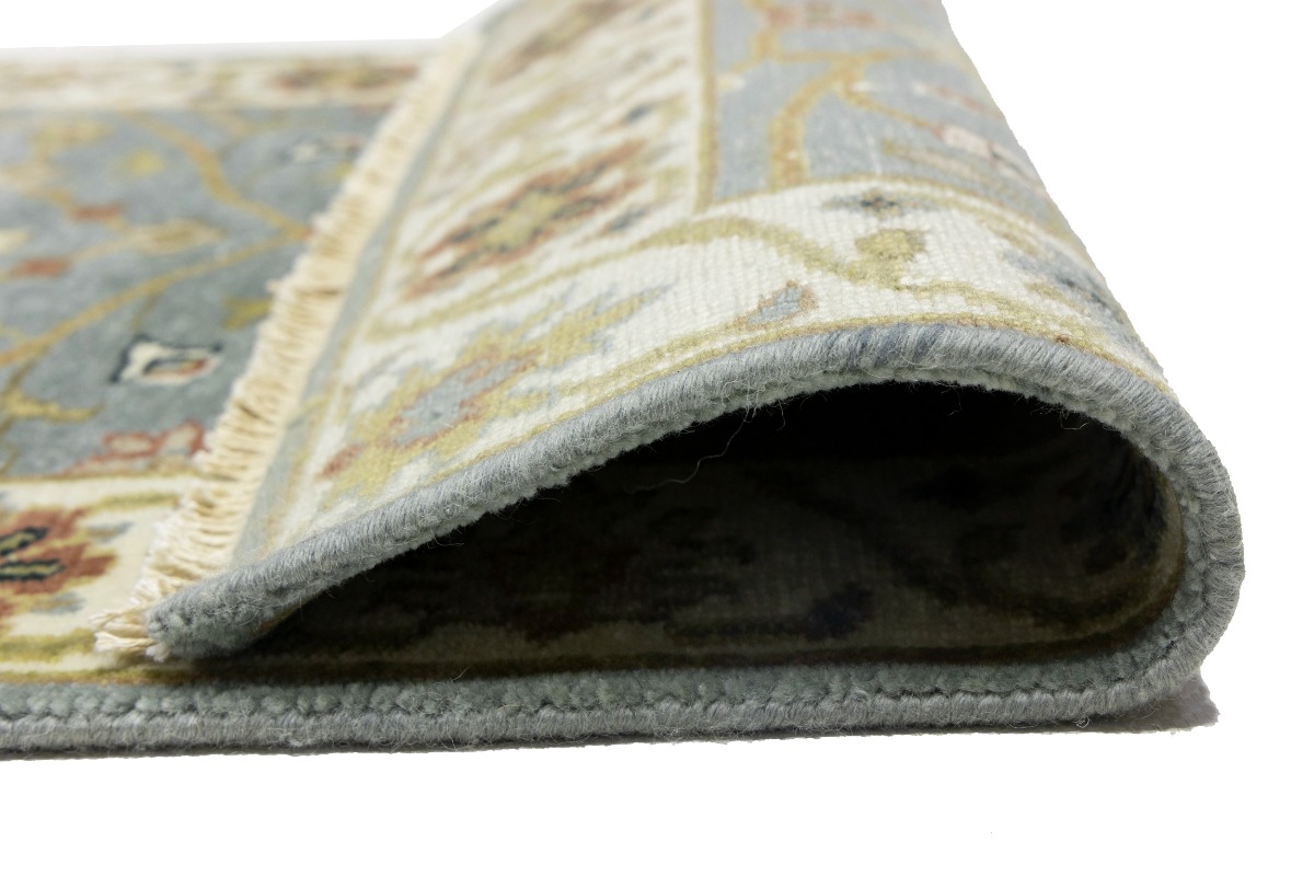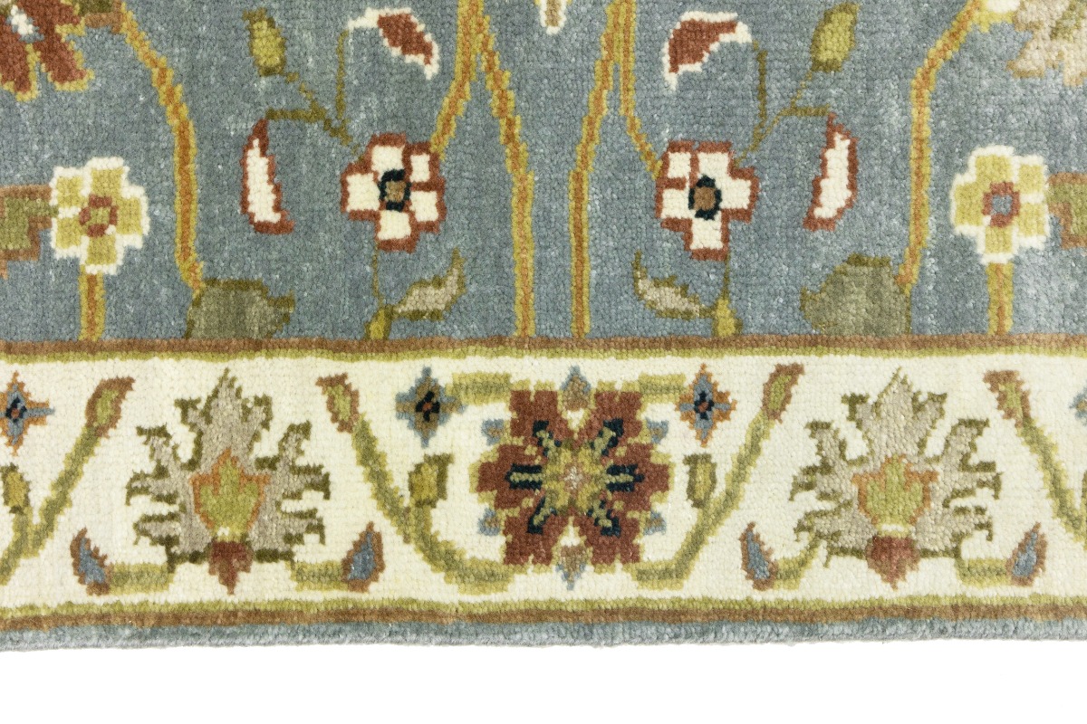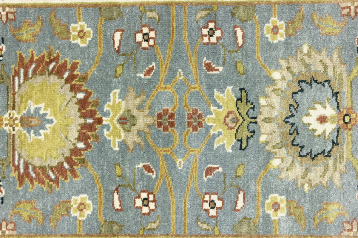 This original 3X8 blue-gray new Oriental runner was finely knotted by the hands of weavers influenced by a variety of amazing artistic designs, to recreate the aged look of the exceptional piece with a richness of color and embellished background field. What set this vintage style Oriental area runner from the others are the material and dye used (wool pile and cotton foundation), knot count, antique designs, fantastic grades, and its regional historical connection: it has deep roots, from the story of the people who produced it to the meaning of the symbols and colors displayed across its canvas that have been praised for centuries. This Indian home décor carpet will be completely cozy and inviting that never will go out of style! Also, this Oriental rug would be among your most valuable treasures, it is a great investment that increase in value over time, and it will last a lifetime because was woven with high-quality, all-natural wool. Eco-friendly, opulent yet affordable; this runner will give you an extra pop of character to help define your home environment with luxury and warmth that will capture the eyes and attention of your audience (homeowners, designers, decorators, family and friends). OT-8336