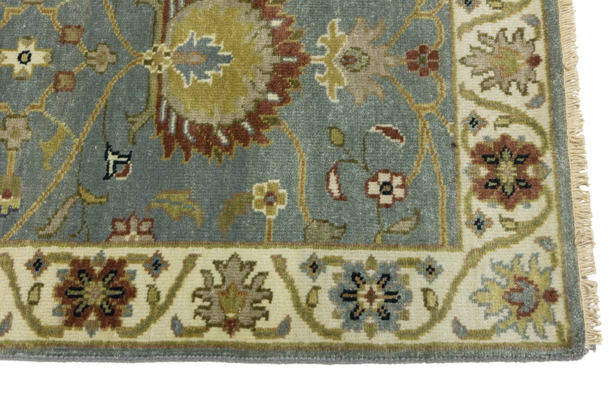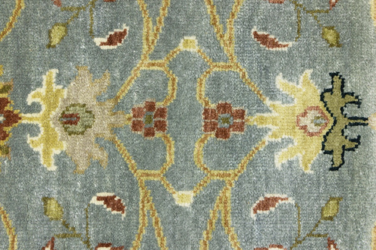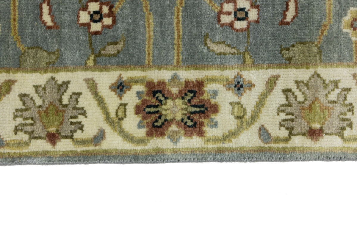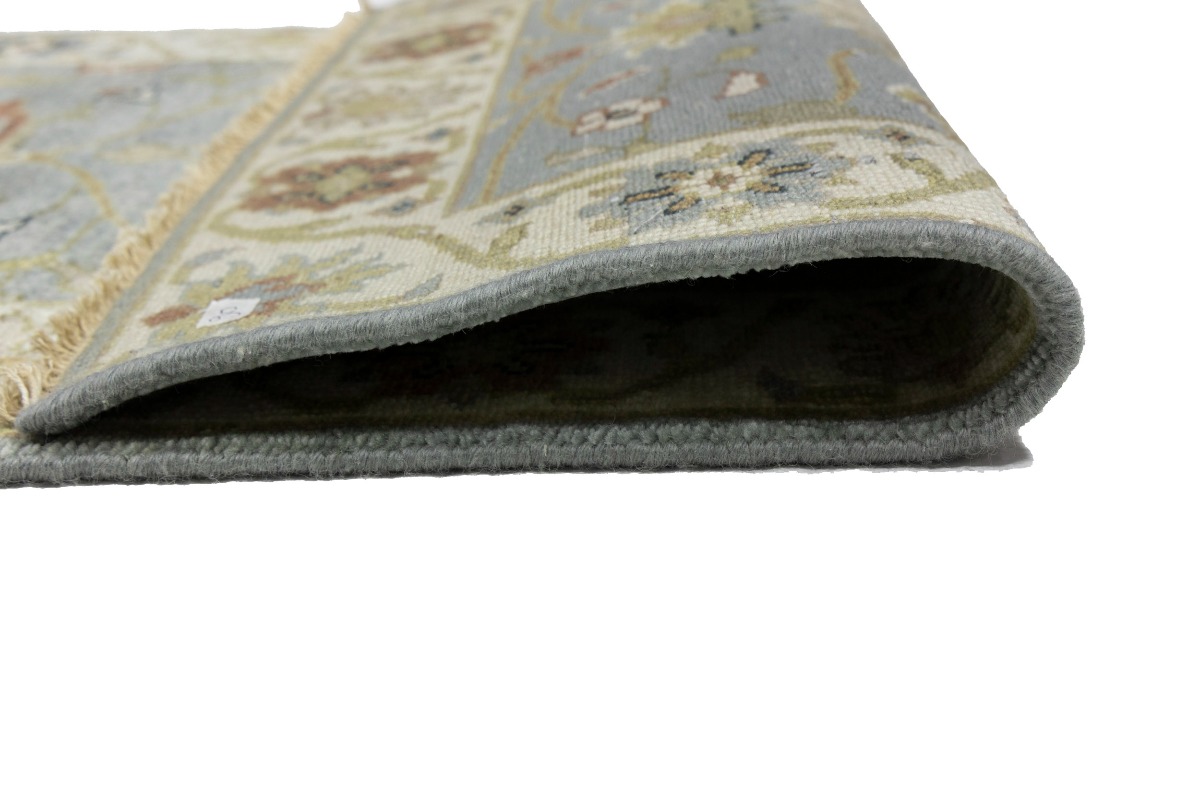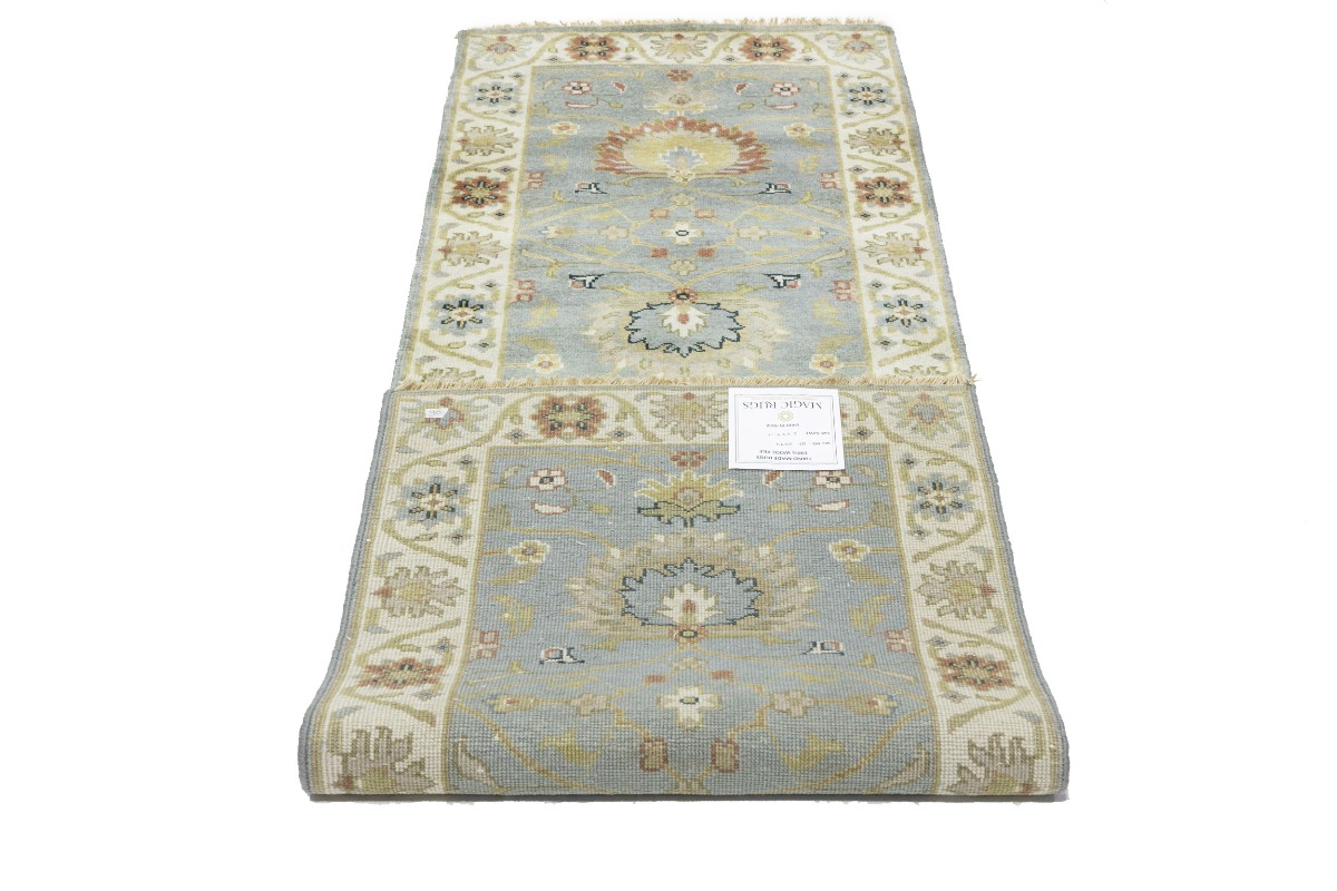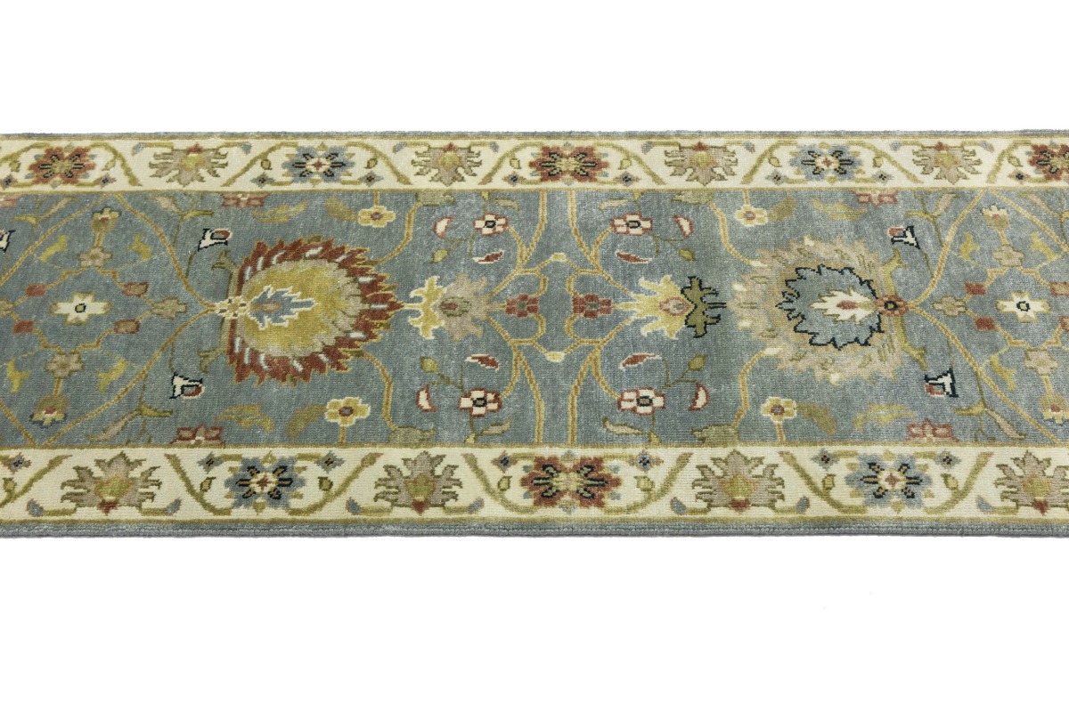 This authentic 3X8 blue-gray new Oriental runner was crafted by the hands of skilled weavers enthused by a variety of lovely artistic designs, to recreate the aged look of the unique piece with a richness of color and beautifully elaborated background field. What set this vintage style Oriental area runner from the others are the material and dye used (wool pile and cotton foundation), knot count, ancient designs, fantastic grades, and its regional historical connection: it has deep roots, from the story of the people who produced it to the meaning of the symbols and colors displayed across its canvas that have been praised for centuries. This Indian home décor carpet will be completely cozy and inviting that never will go out of style! Also, this Oriental rug would be among your most valuable treasures, it is a great investment that increase in value over time, and it will last for generations because was woven with high-quality, all-natural wool. Environmentally friendly, opulent yet affordable; this runner will give you a thorough amount of character to help define your living space with sophistication and warmth that will capture the eyes and attention of your audience (homeowners, designers, decorators, family and friends). OT-8697