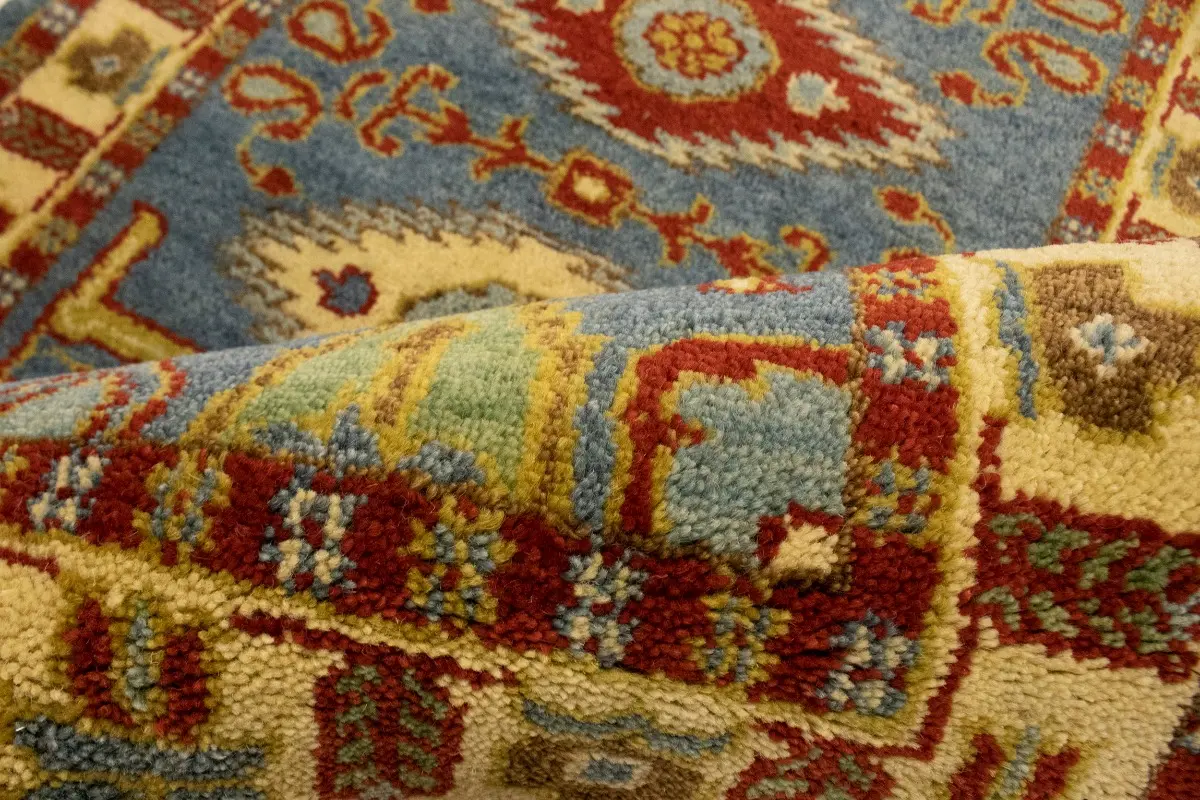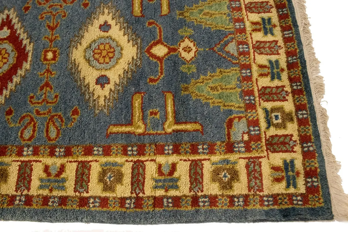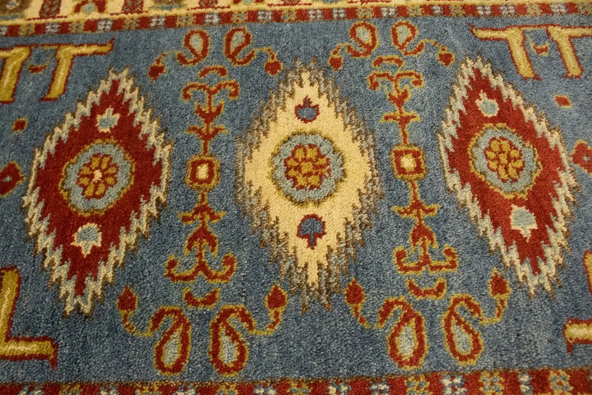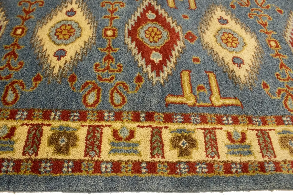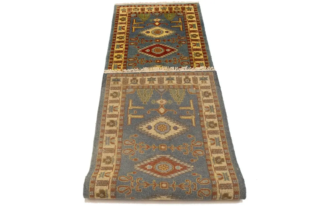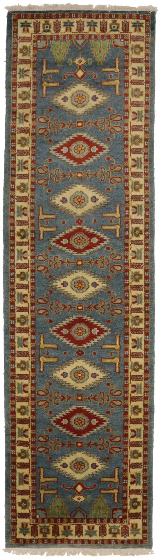 Blue-gray Geometric 3X10 Kazak Oriental Runner Rug