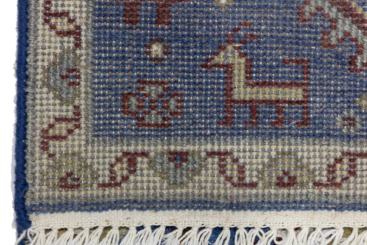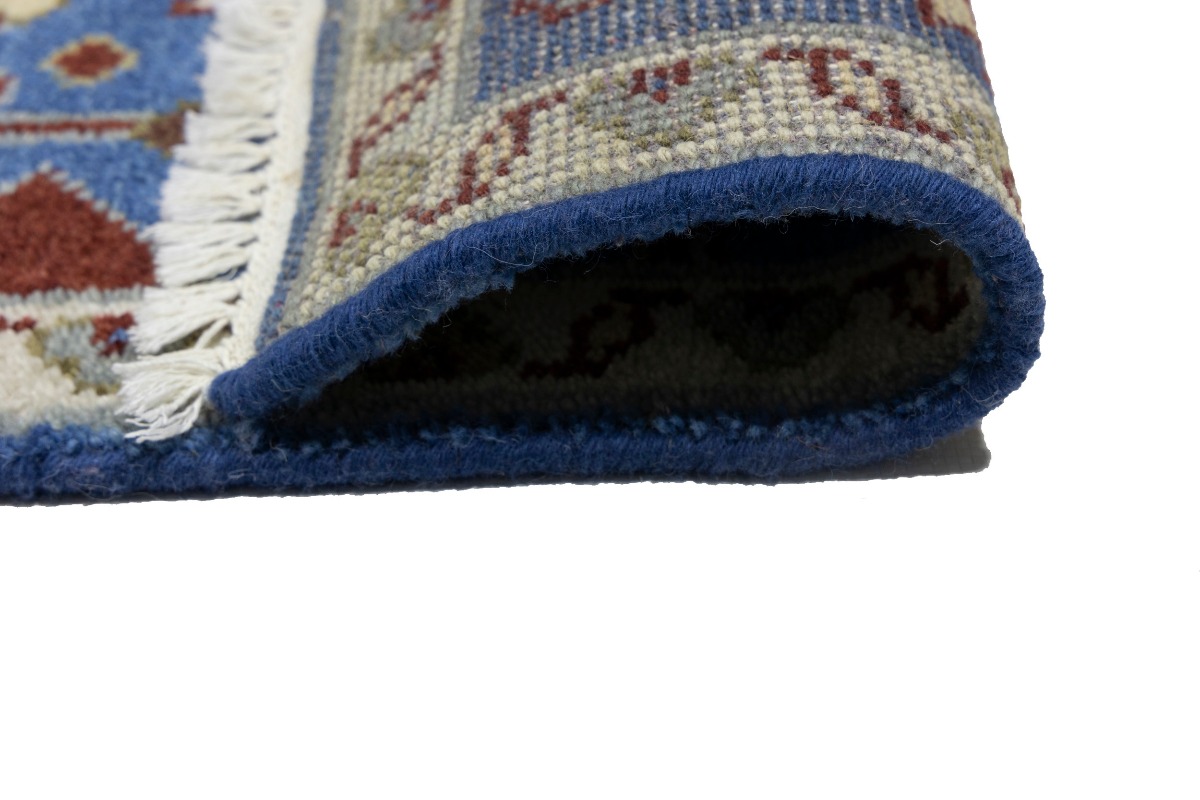 This original 3X8 blue new Oriental runner was finely knotted by the hands of weavers influenced by a variety of amazing artistic designs, to recreate the aged look of the exceptional piece with a richness of color and embellished background field. What set this vintage style Oriental area runner from the others are the material and dye used (wool pile and cotton foundation), knot count, antique designs, fantastic grades, and its regional historical connection: it has deep roots, from the story of the people who produced it to the meaning of the symbols and colors displayed across its canvas that have been praised for centuries. This Indian home décor carpet will be completely cozy and inviting that never will go out of style! Also, this Oriental rug would be among your most valuable treasures, it is a great investment that increase in value over time, and it will last a lifetime because was woven with high-quality, all-natural wool. Eco-friendly, opulent yet affordable; this runner will give you an extra pop of character to help define your home environment with luxury and warmth that will capture the eyes and attention of your audience (homeowners, designers, decorators, family and friends). OT-7655