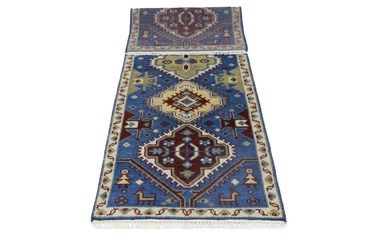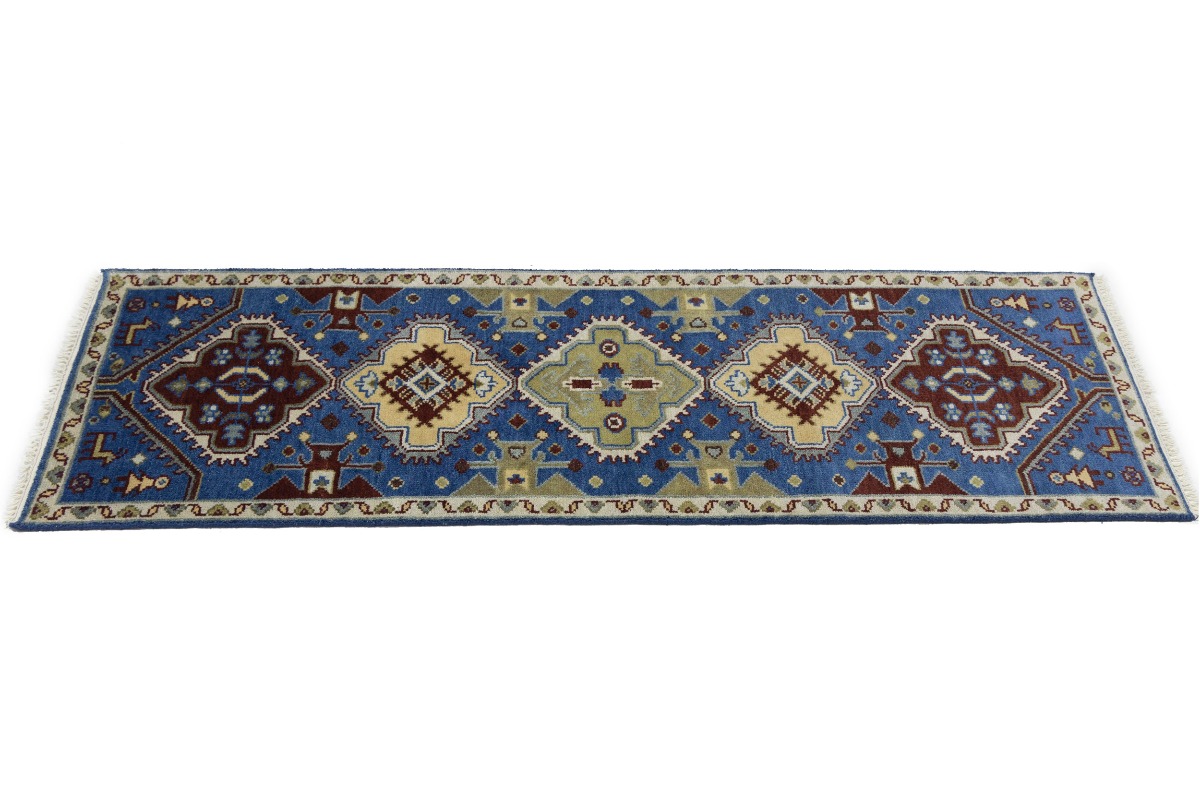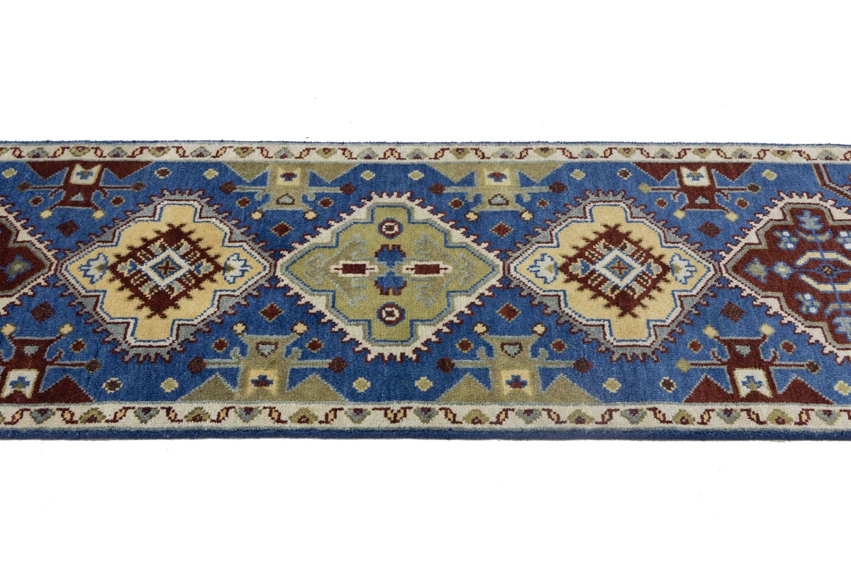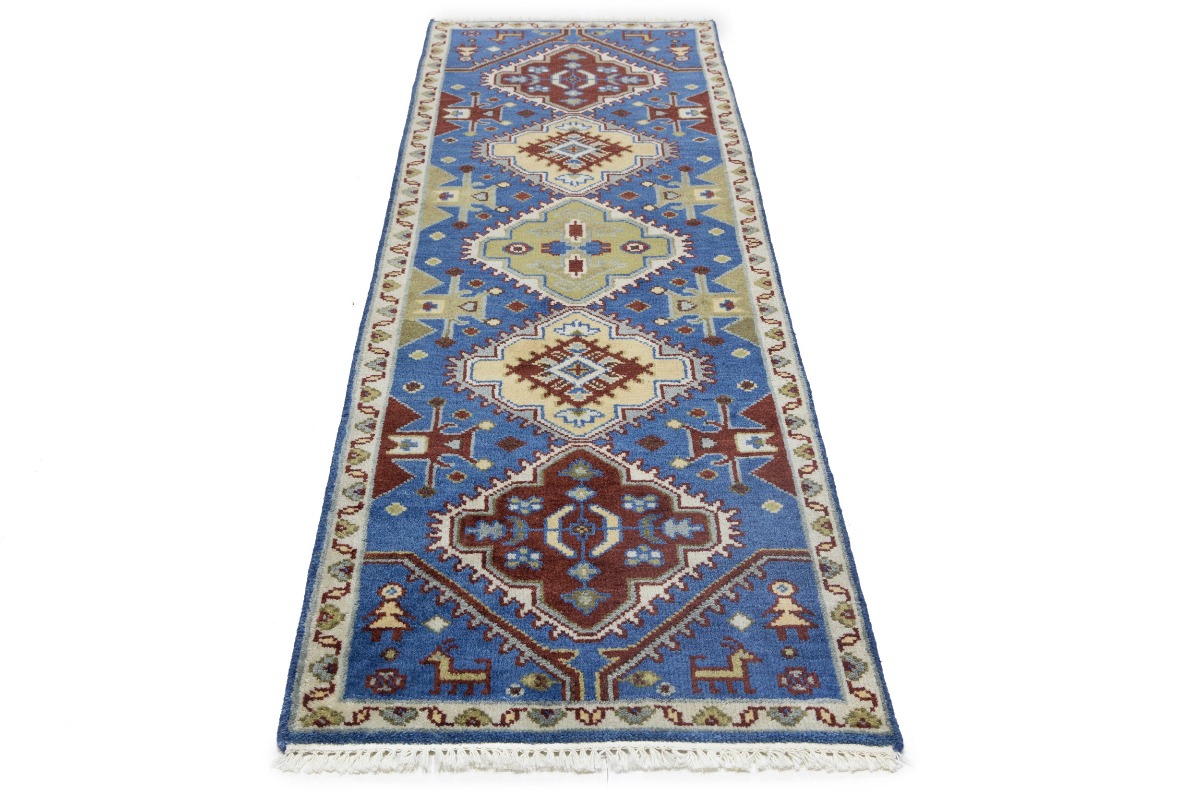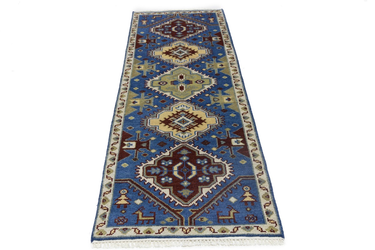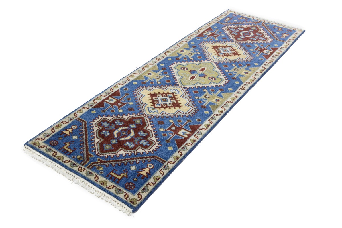 Blue Tribal 3X8 Kazak Oriental Runner Rug