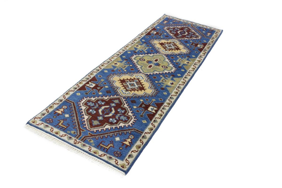 Hand Knotted 3X8 blue oriental runner made with vegetable dyes (fine wool pile and cotton foundation), superior knot count, and alluring ancient designs. This Oriental runner never will go out of style and would be among your most valuable treasures.