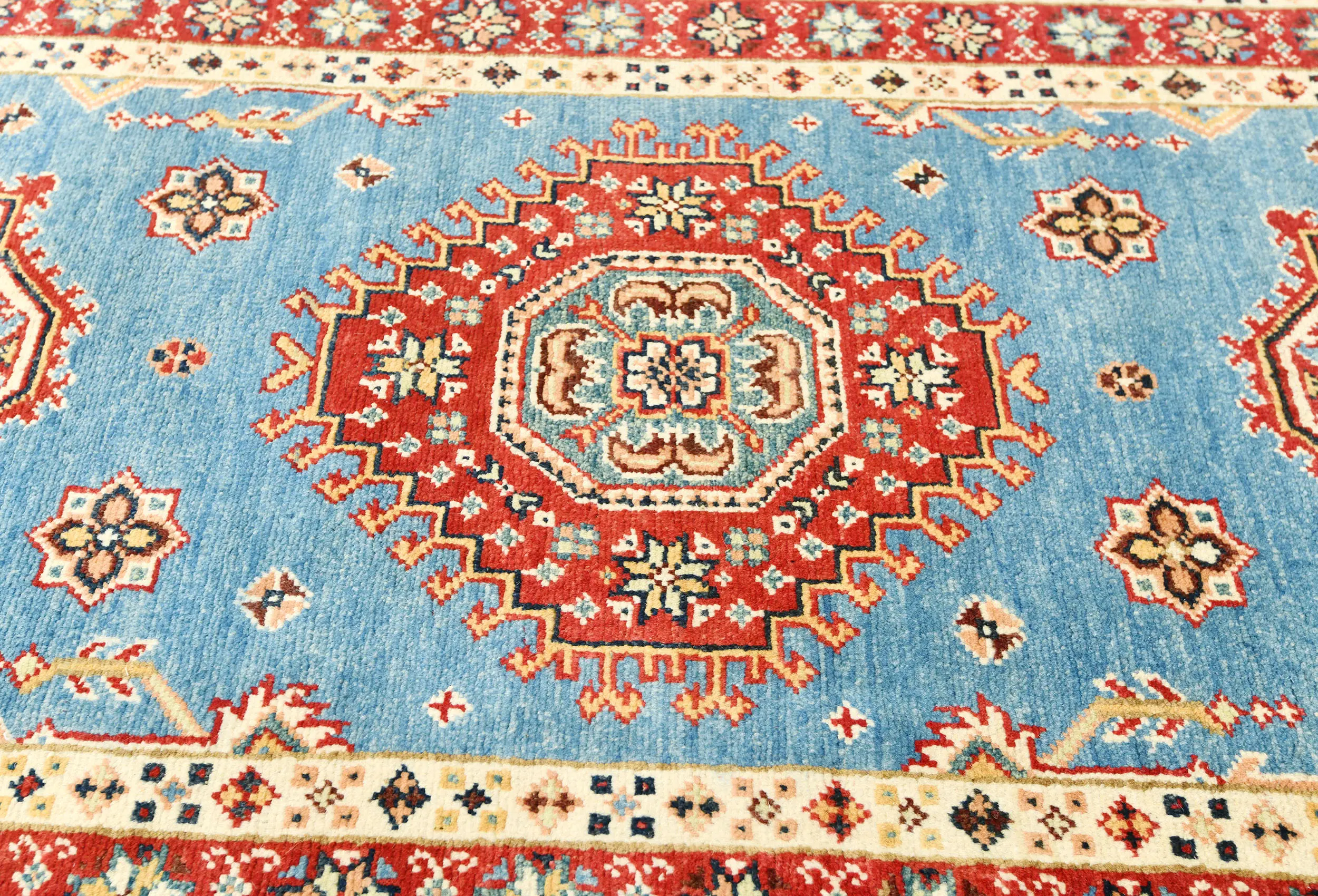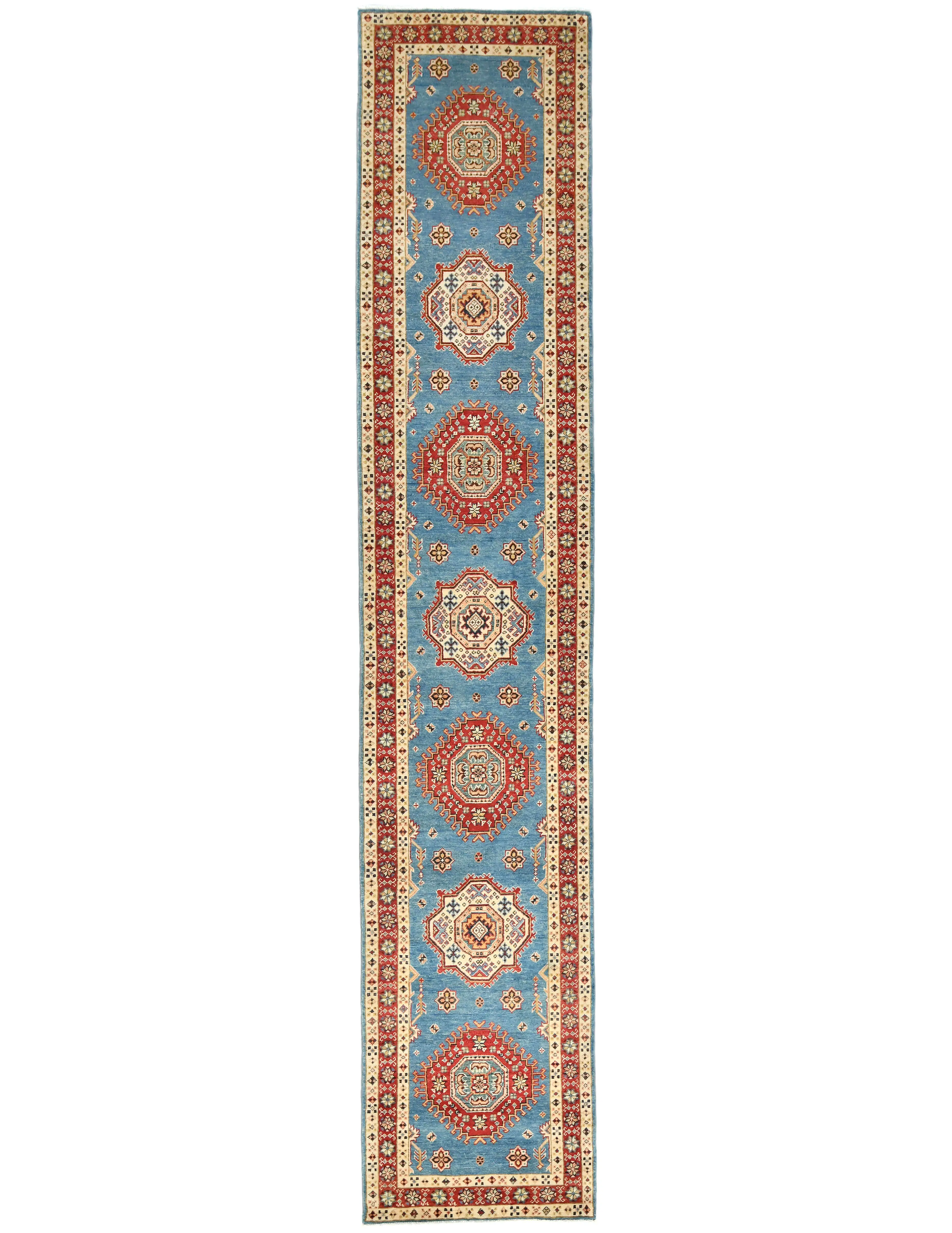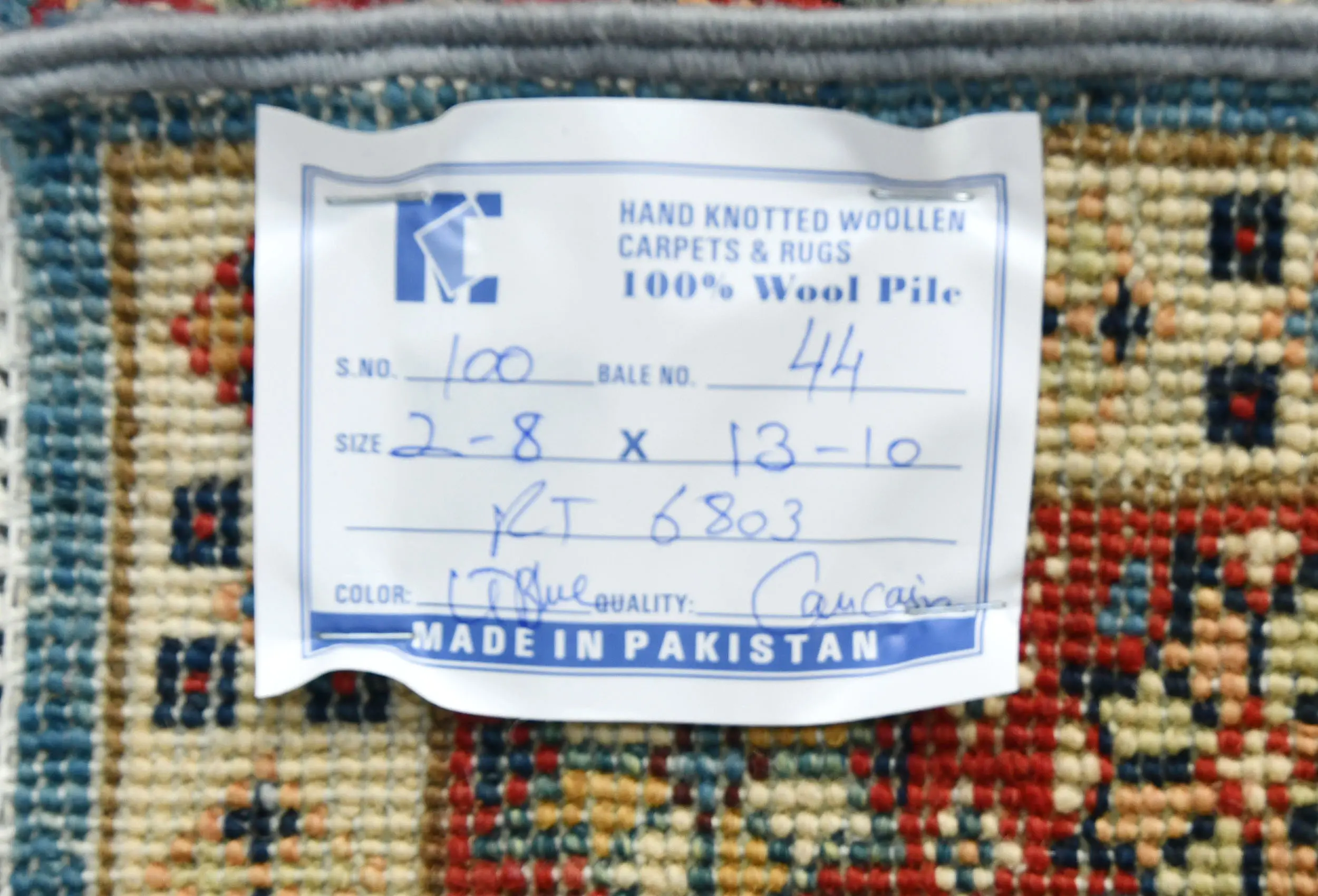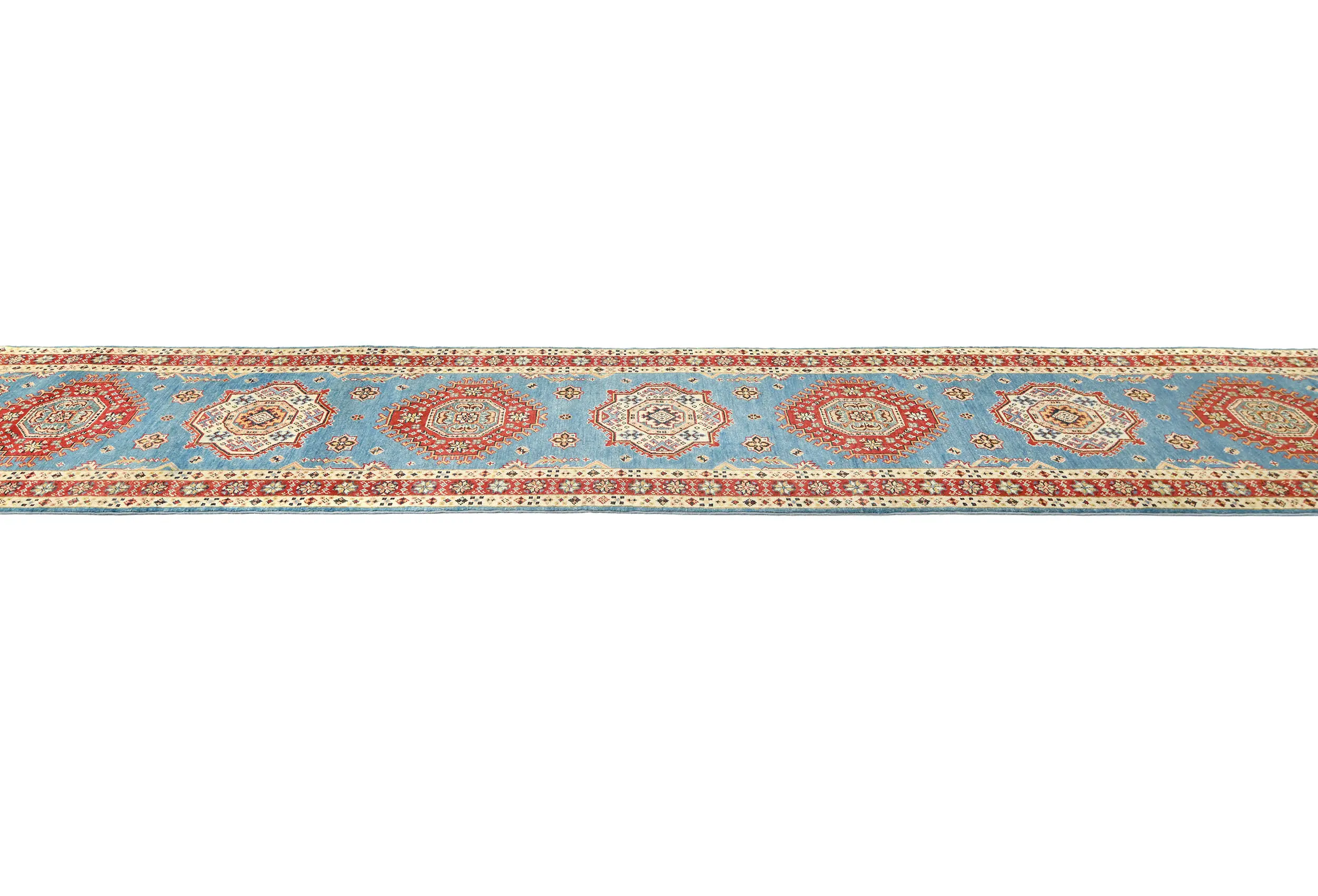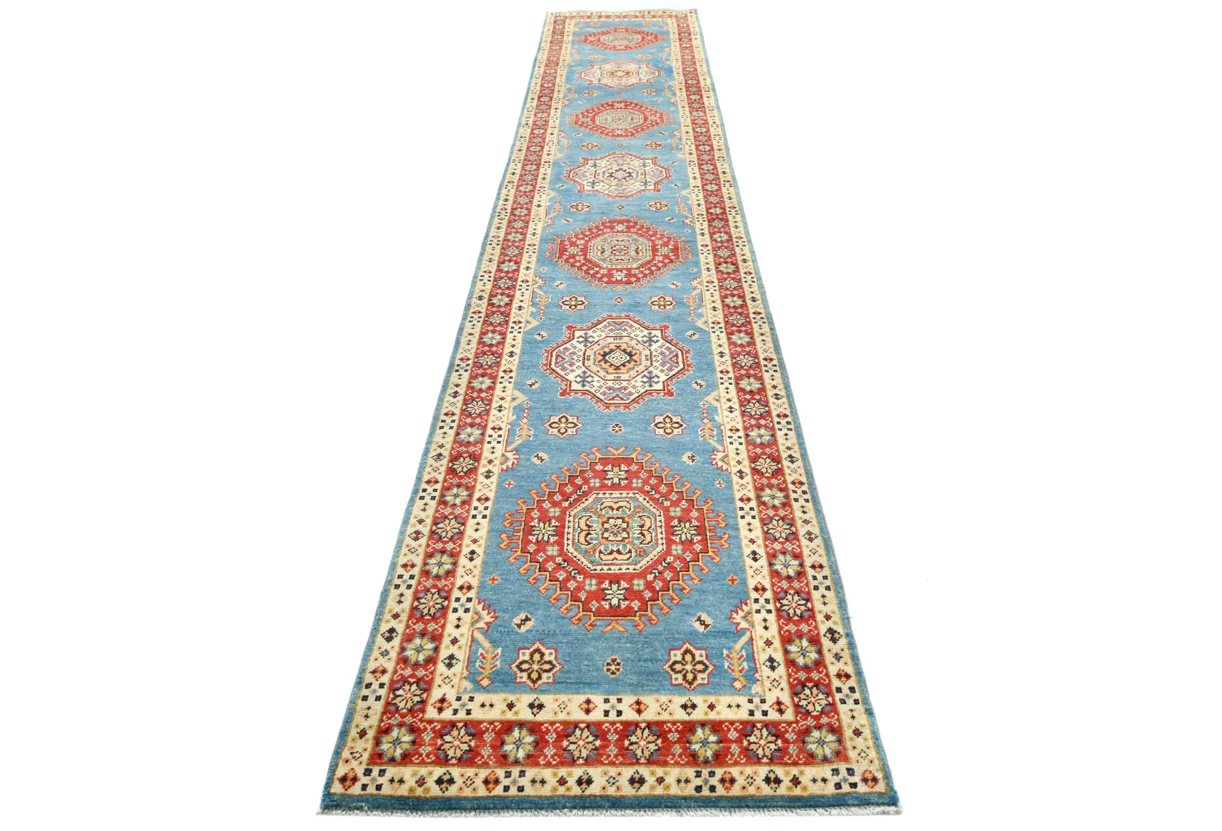 Blue Tribal Geometric 3X14 Kazak Oriental Runner Rug