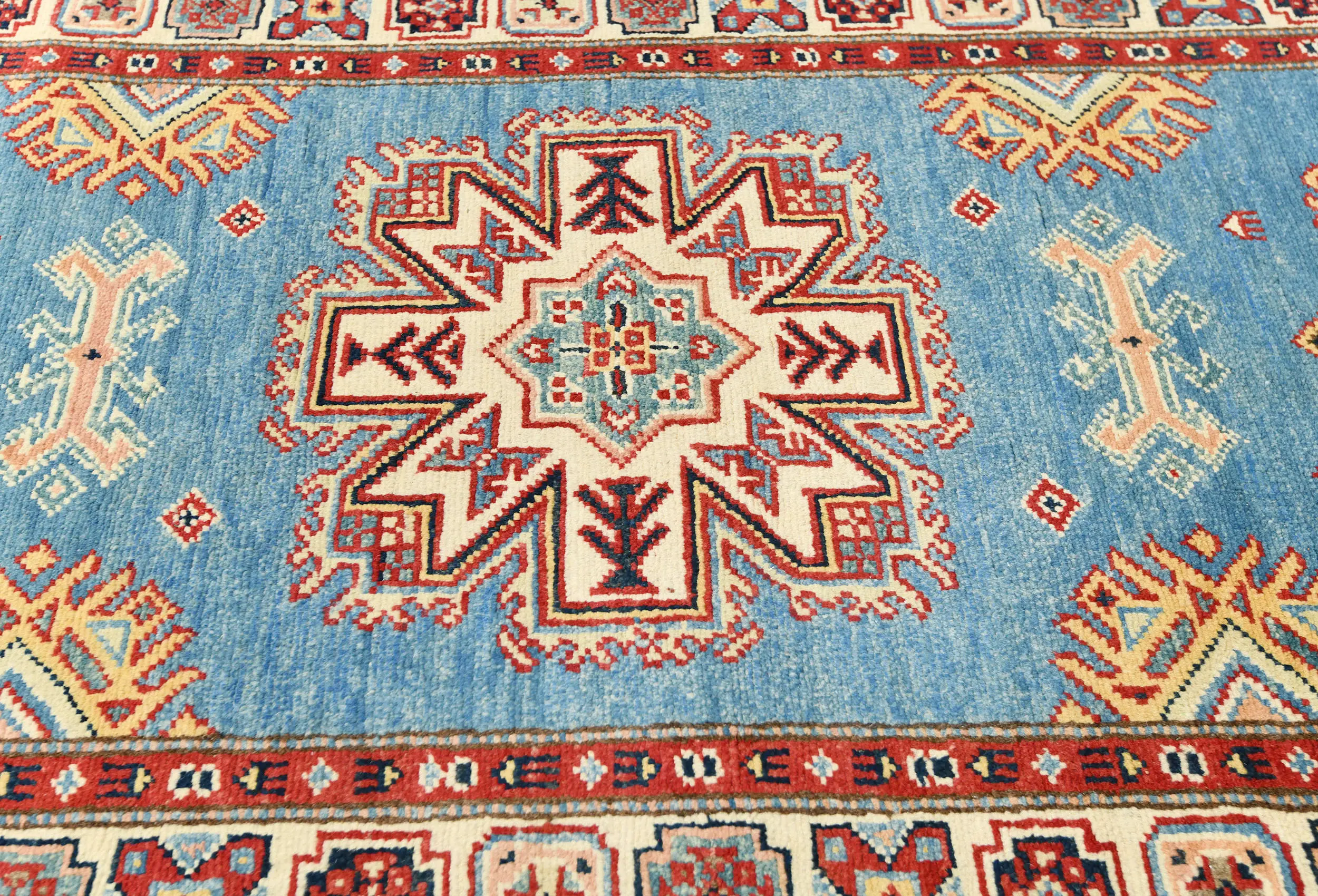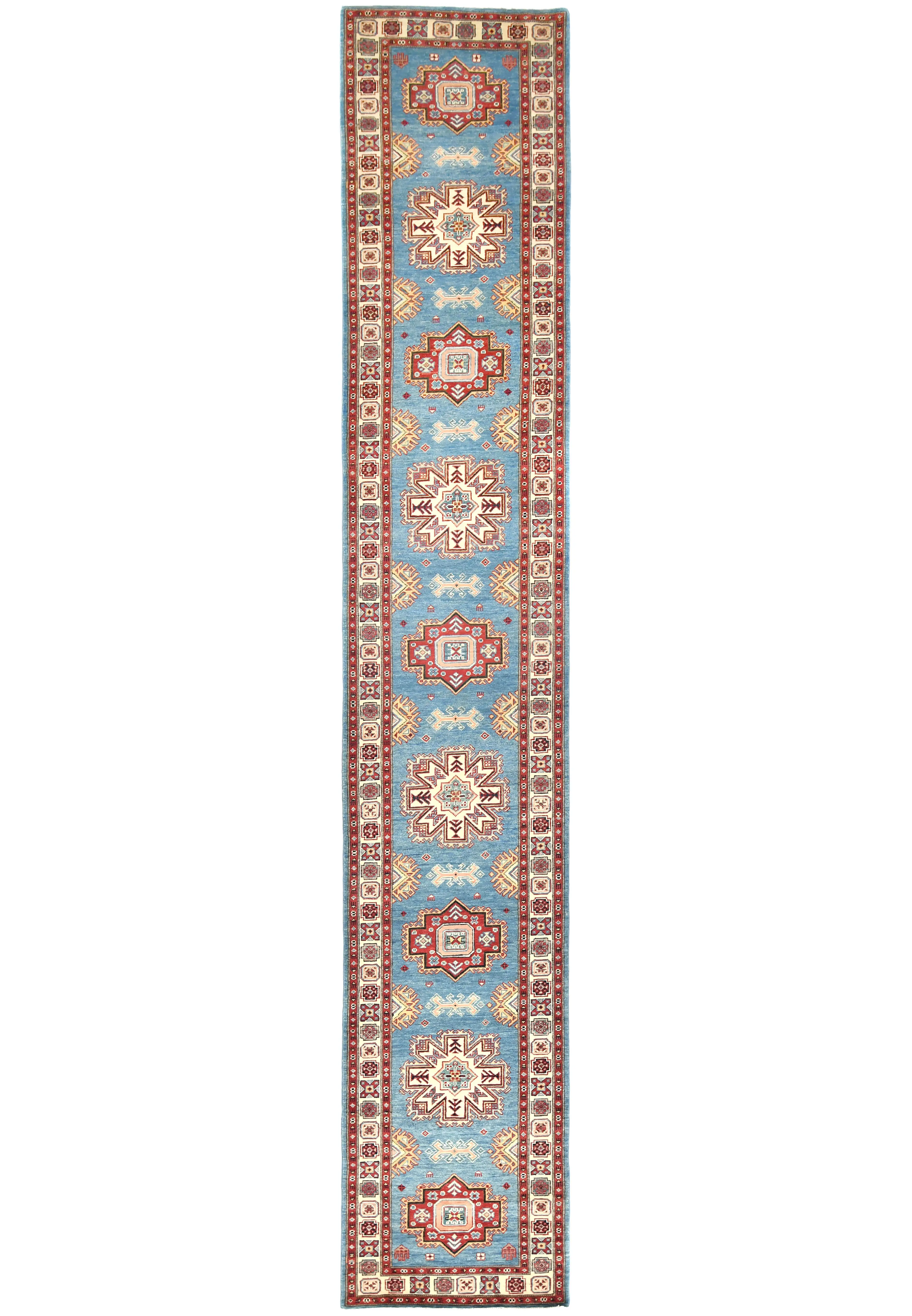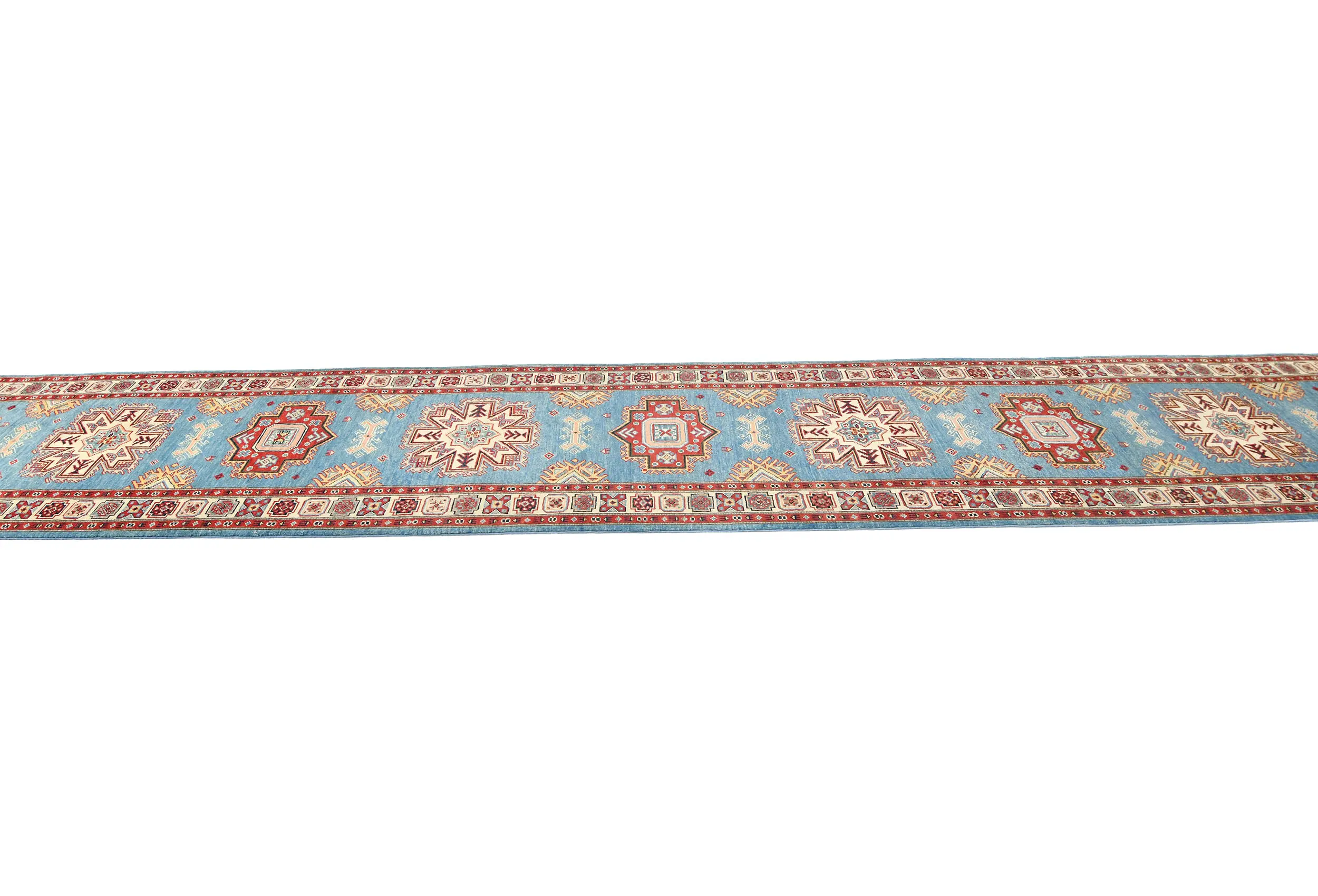 Blue Tribal Geometric 3X16 Kazak Oriental Runner Rug