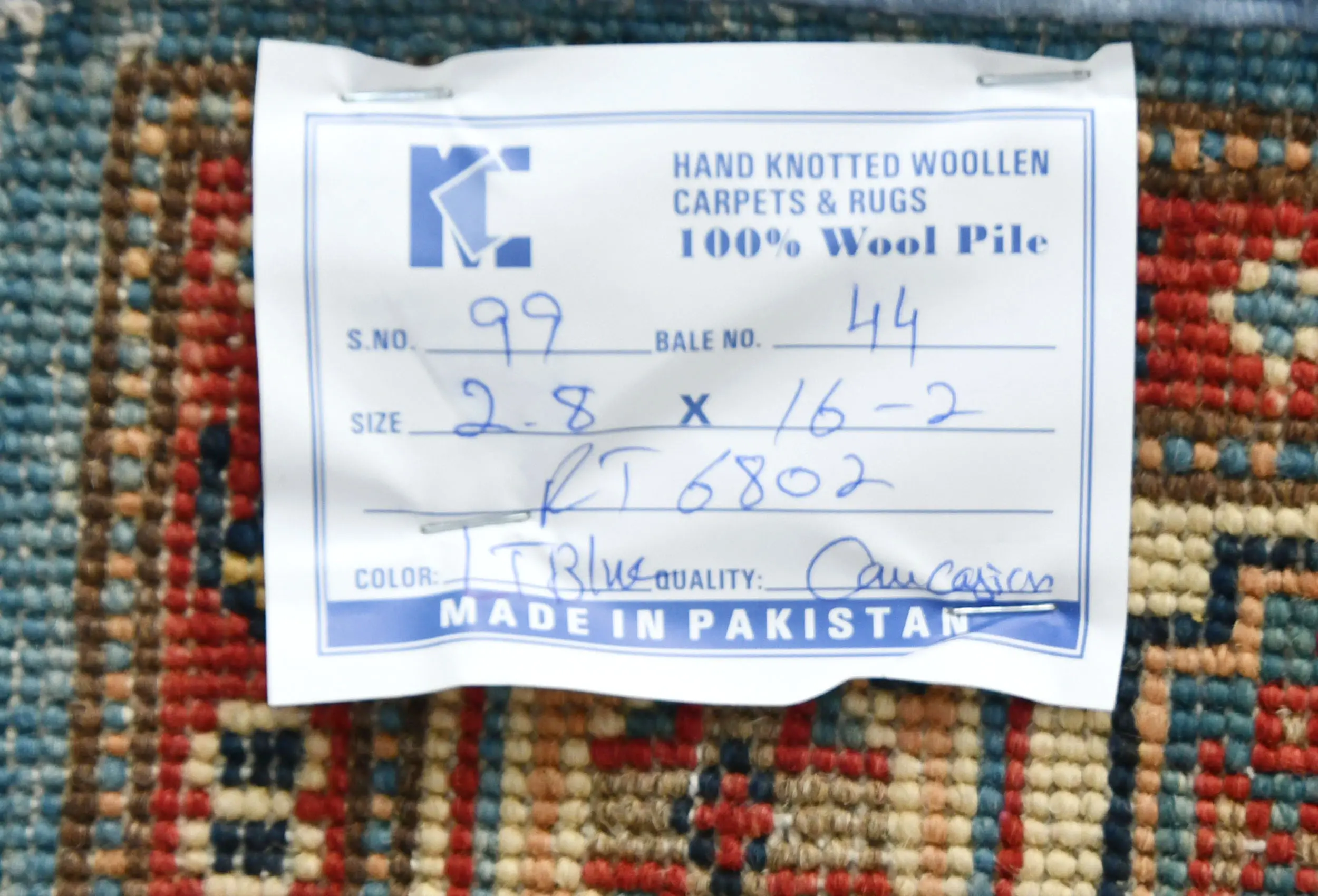 Handmade 3X16 Blue oriental Runner rug made with natural dyes (fine wool pile and cotton foundation), superior knot count, and appealing ancient designs. This Oriental rug never will go out of style and would be among your most valuable treasures.