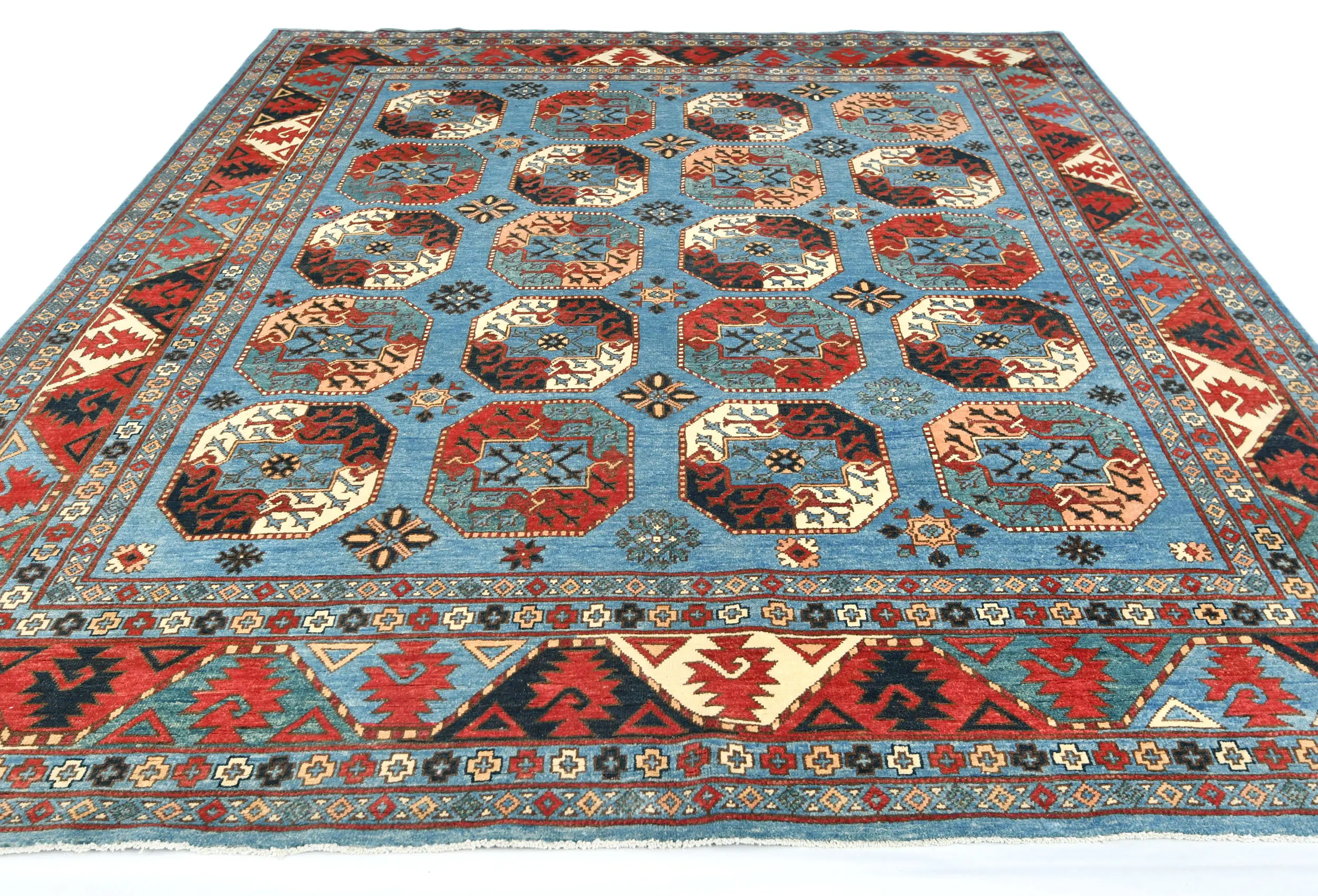Hand Knotted 8X10 Blue Oriental rug made with vegetable dyes (fine wool pile and cotton foundation), exceptional knot count, and appealing ancient designs. This Oriental rug never will go out of style and would be among your most valuable treasures.