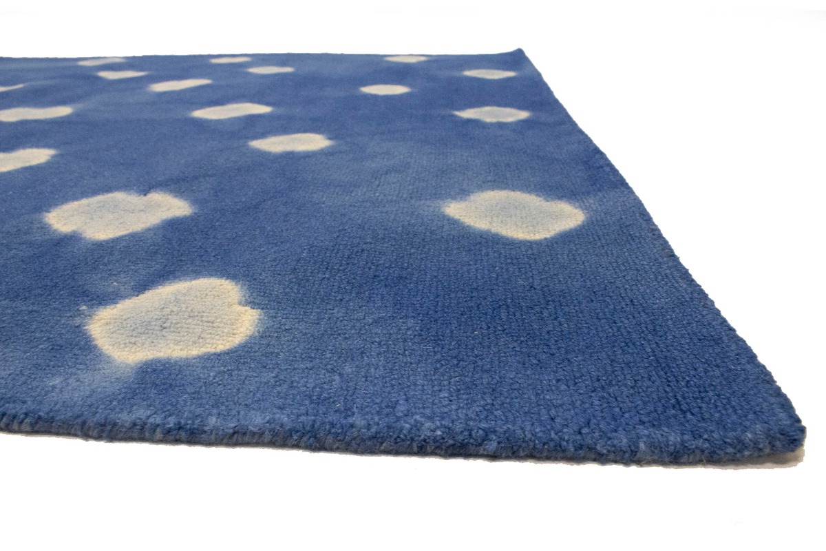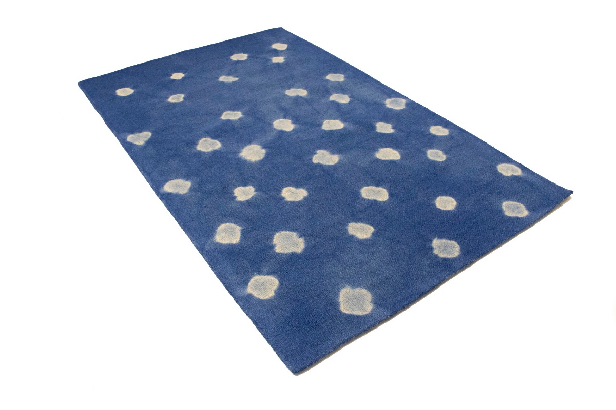 Blue Contemporary Tie-Dye Plush 5X8 Hand-Tufted Modern Rug Boys Bedroom Carpet