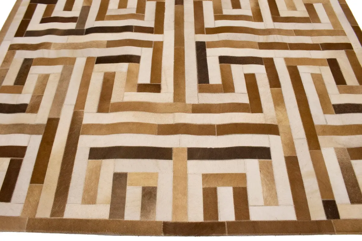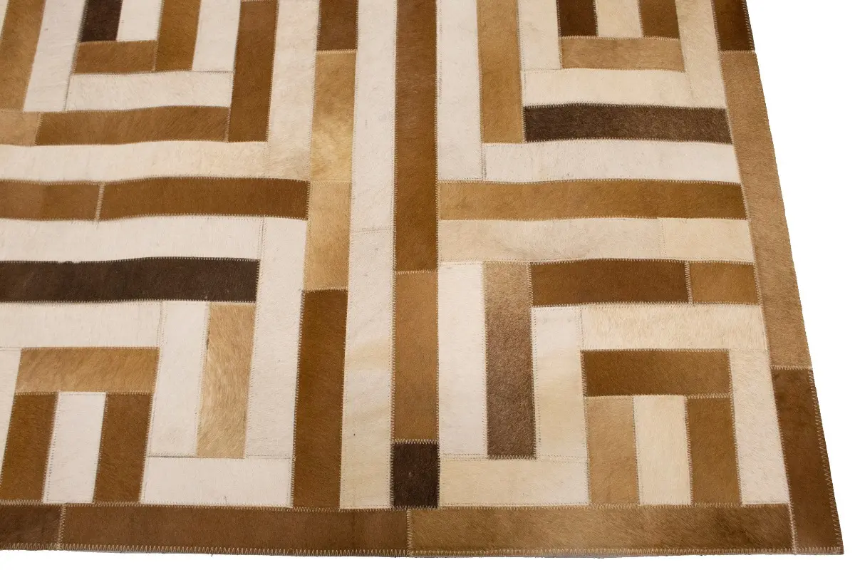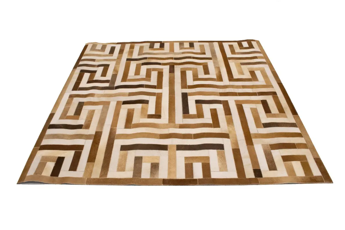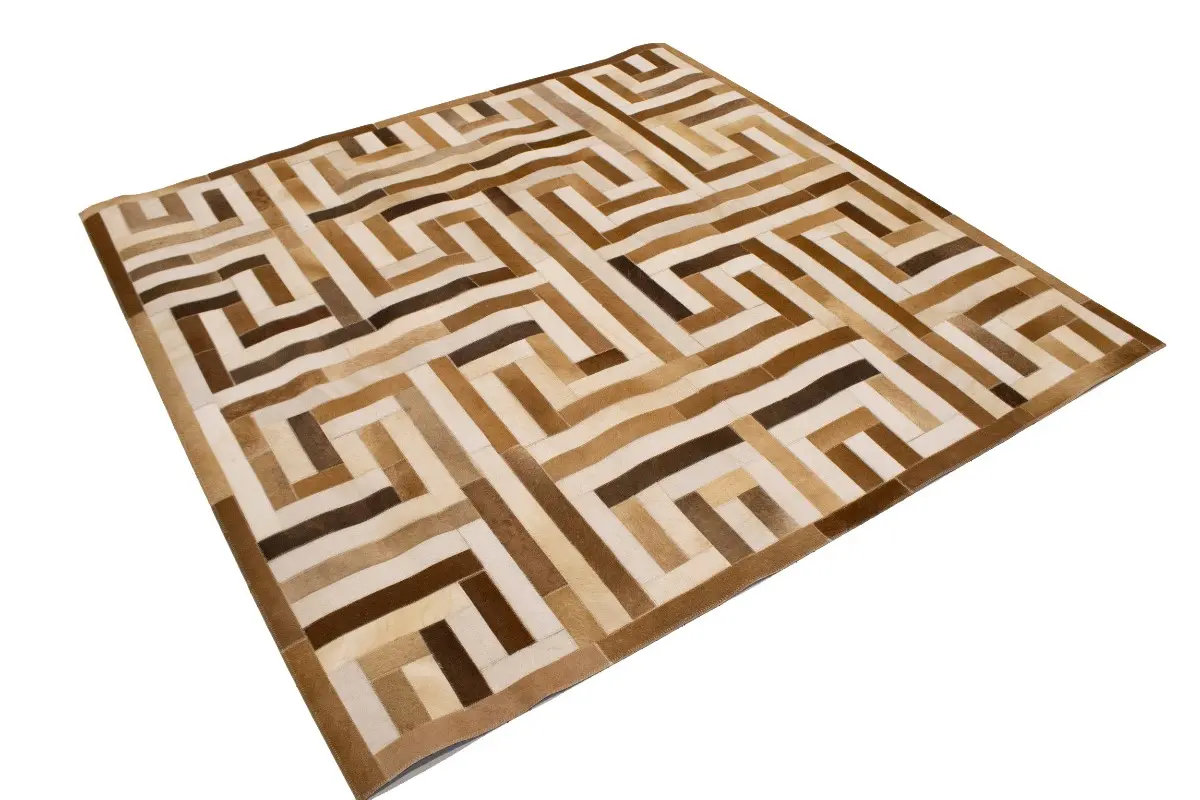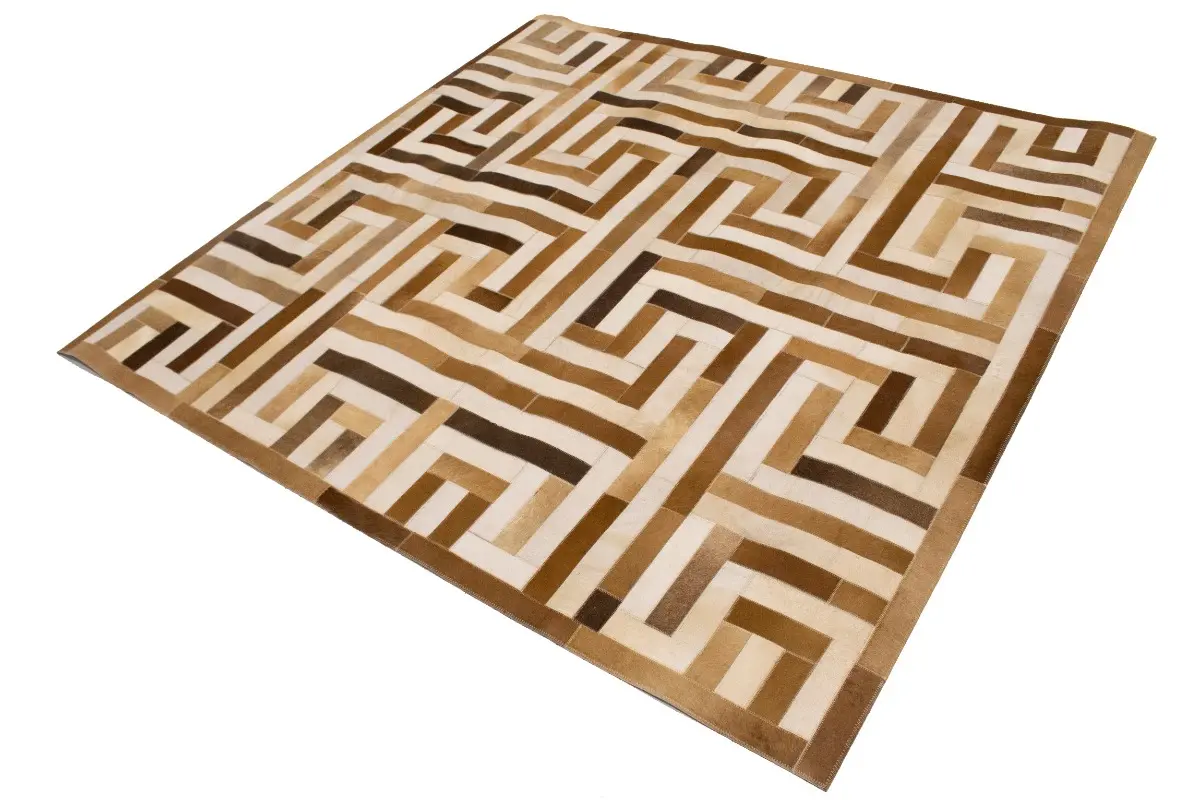 Brown Beige Cowhide 6X6 Modern Leather Square Rug