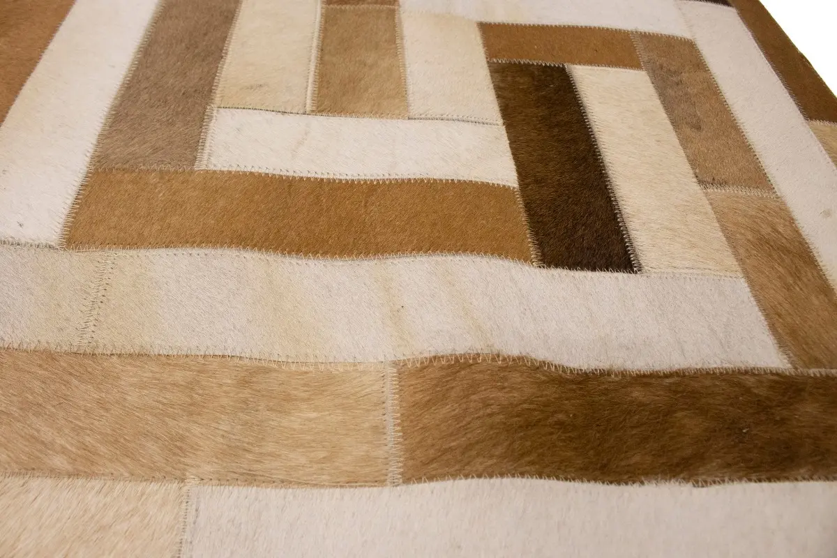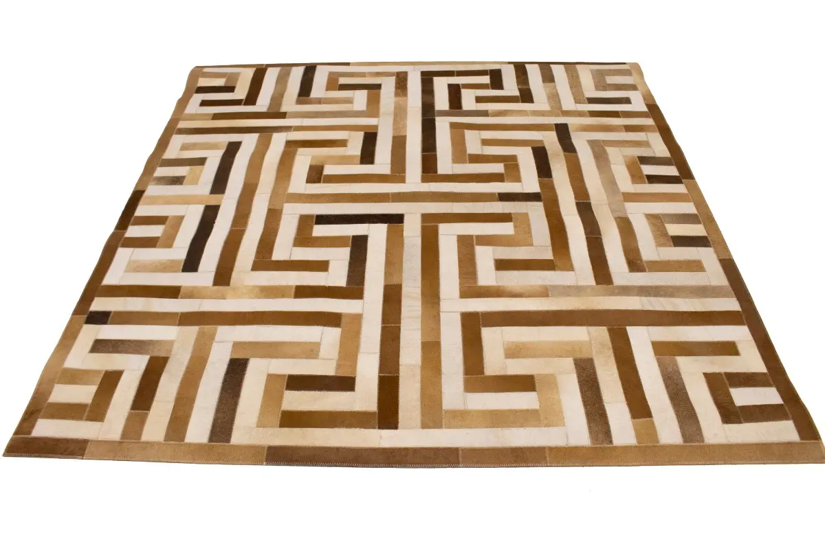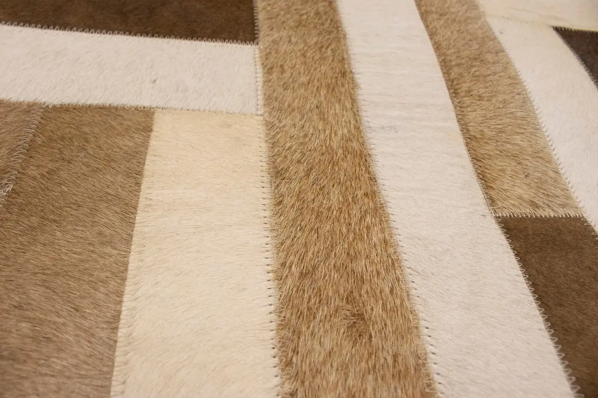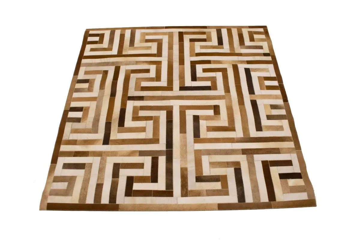 Brown Beige Cowhide 6X6 Modern Leather Square Rug