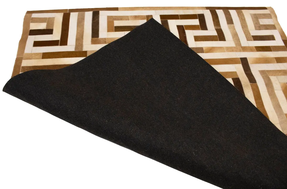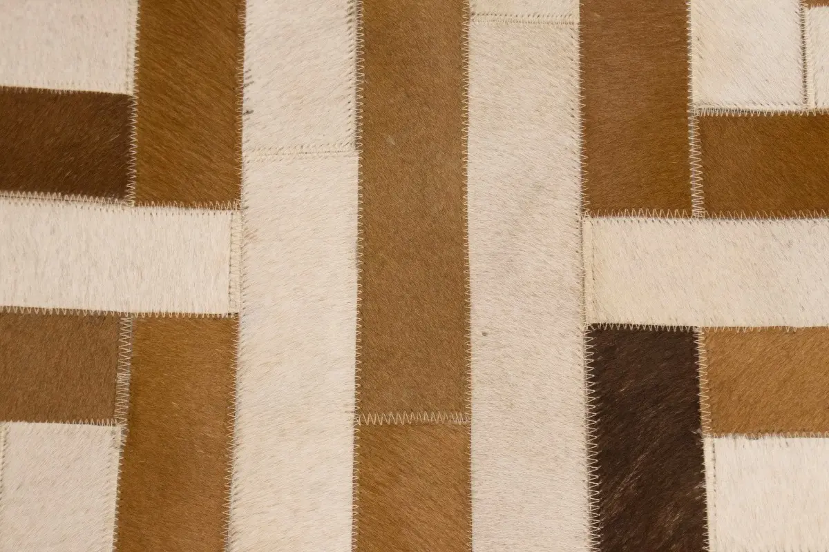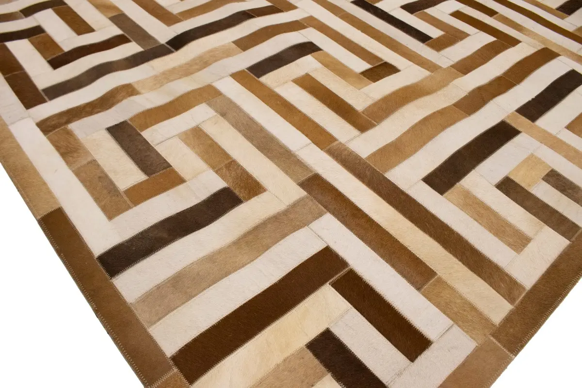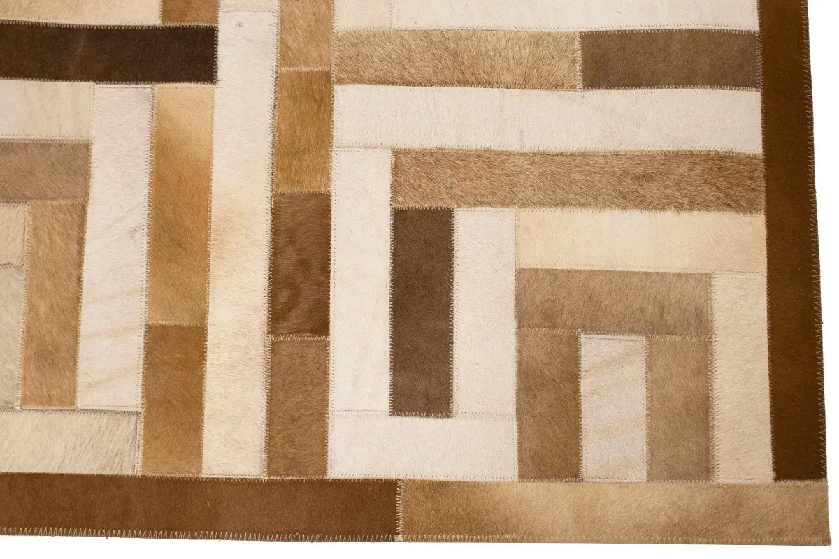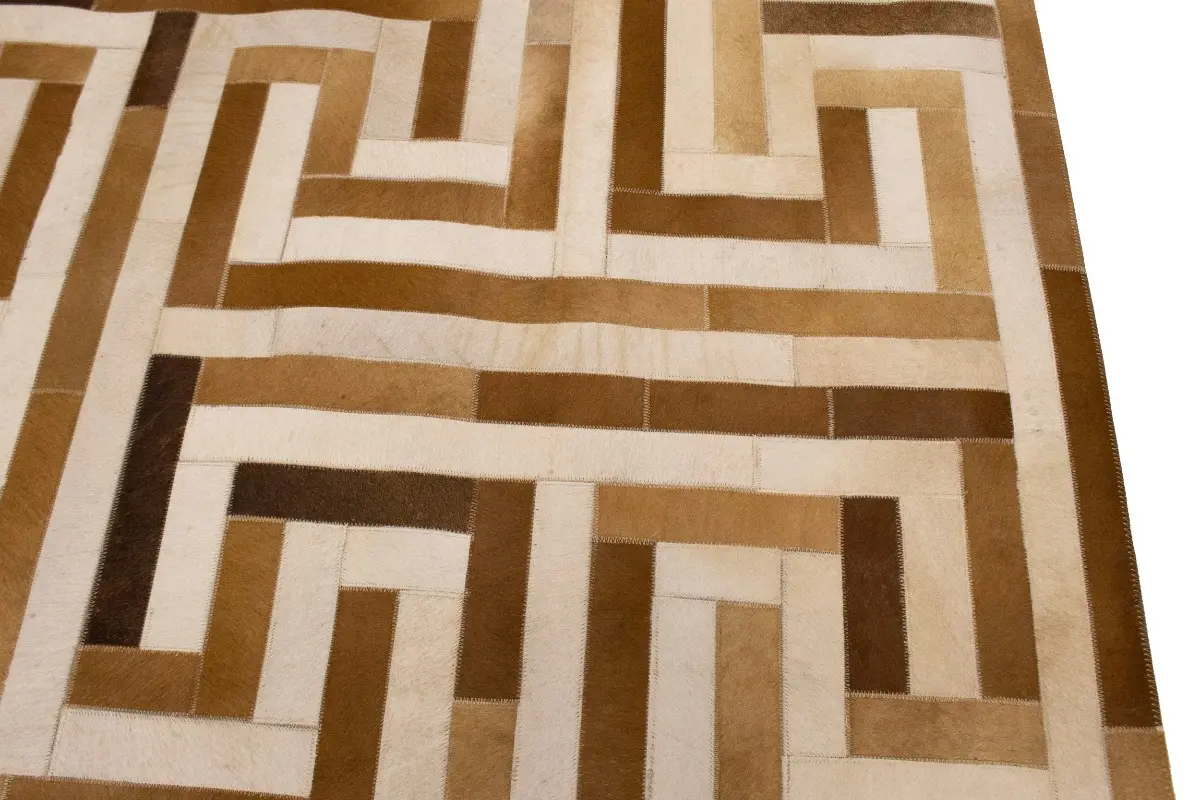 Brown Beige Cowhide 6X6 Modern Leather Square Rug