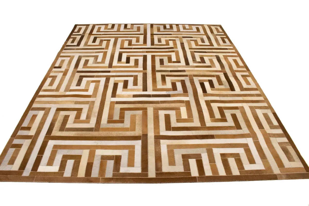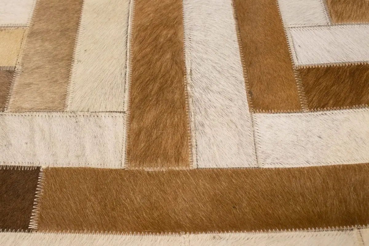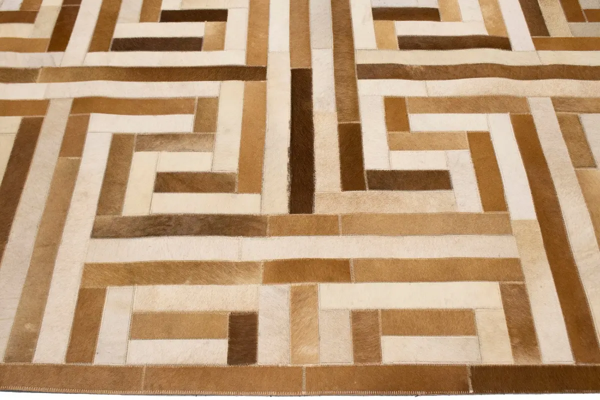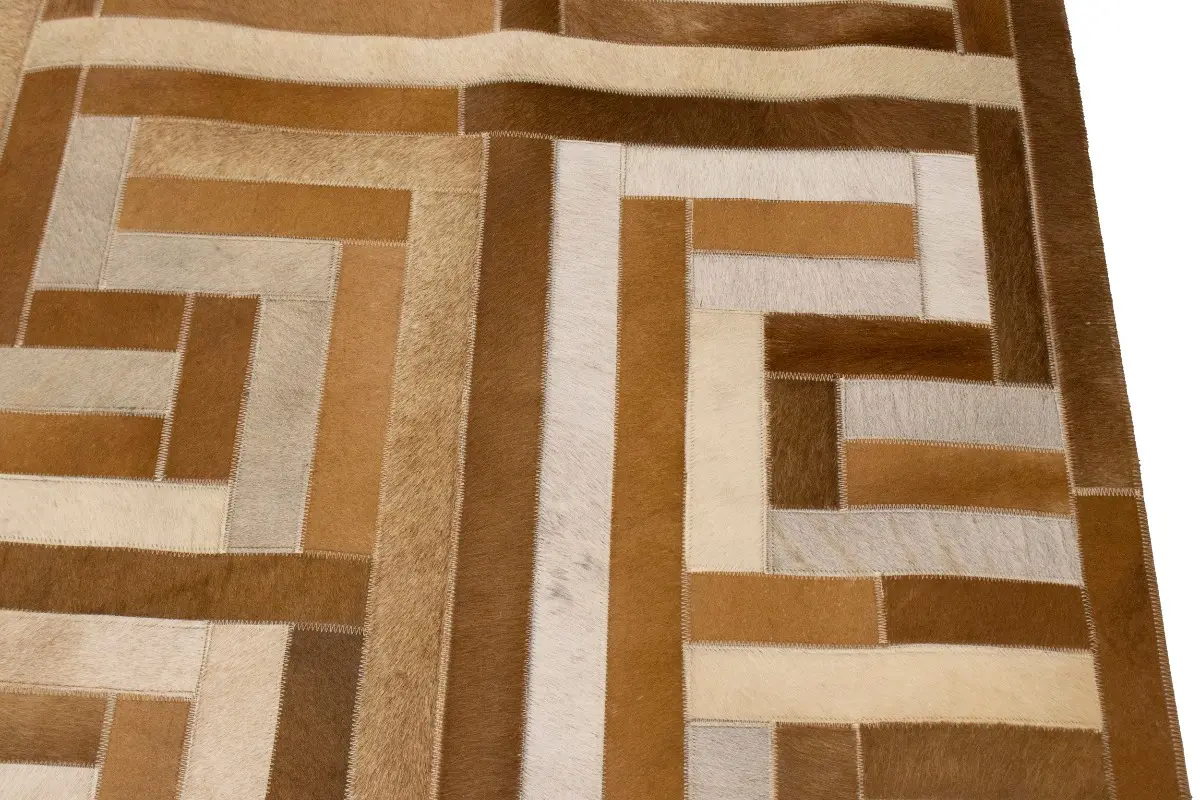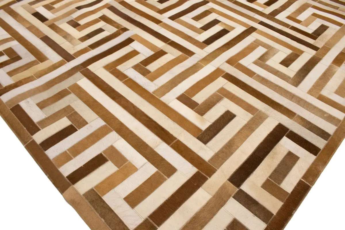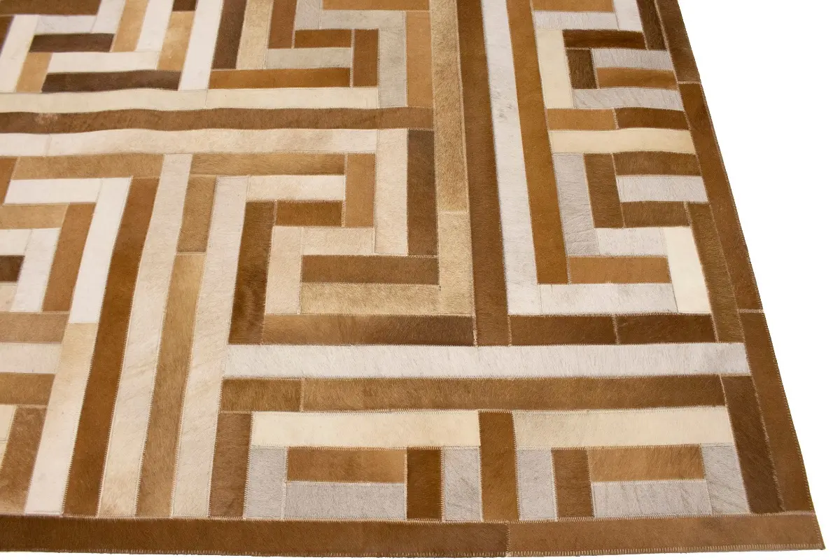 Brown Beige Cowhide 8X10 Modern Leather Rug