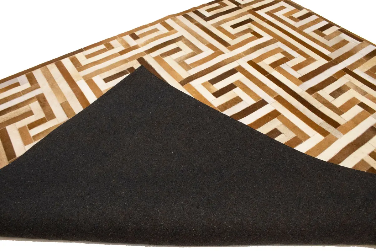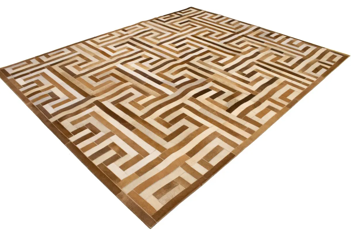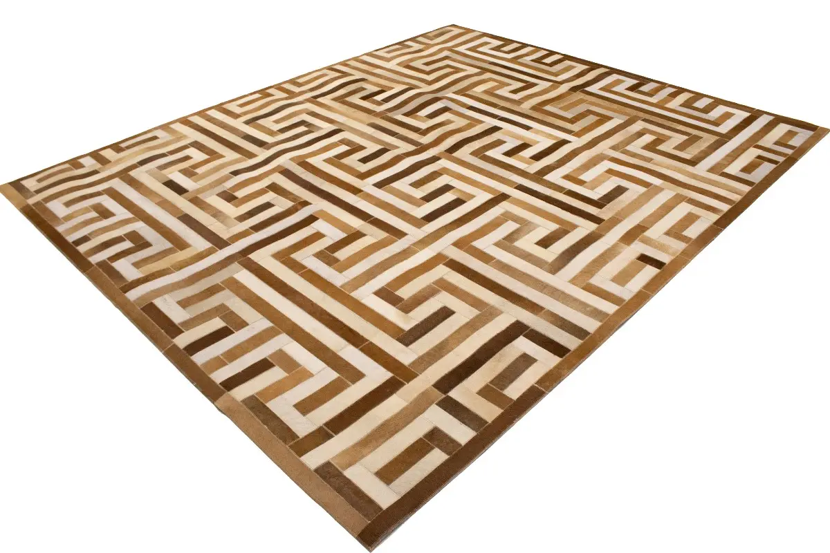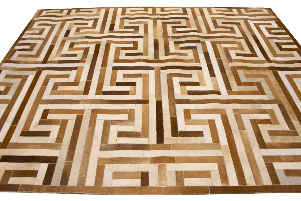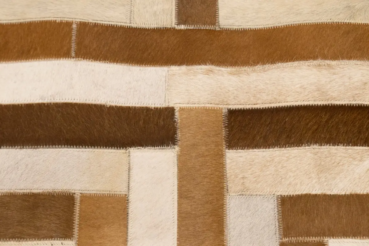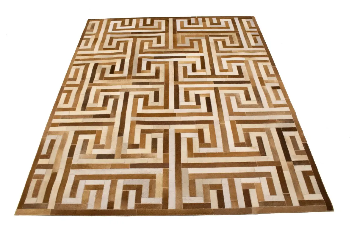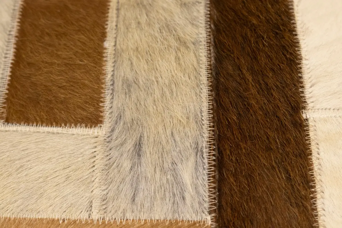 Brown Beige Cowhide 8X10 Modern Leather Rug