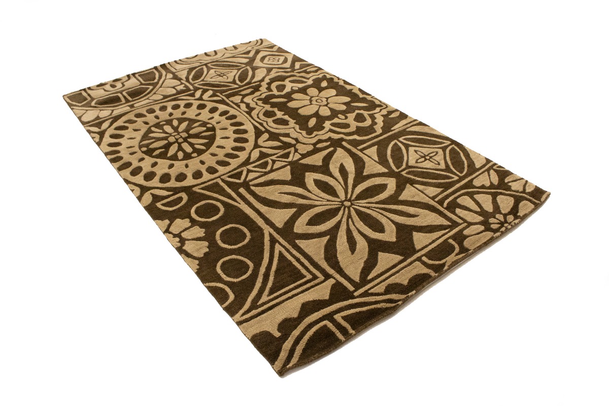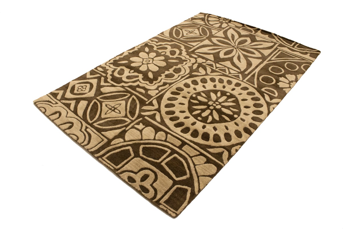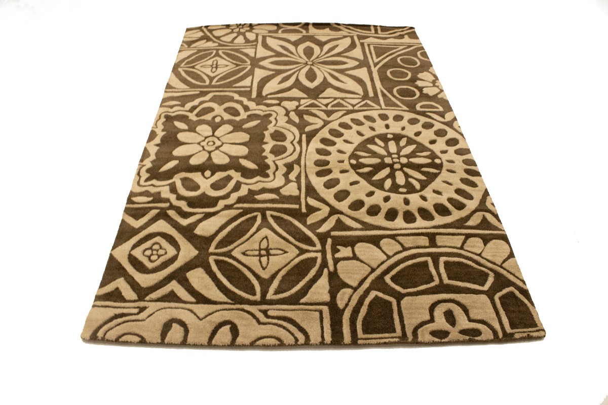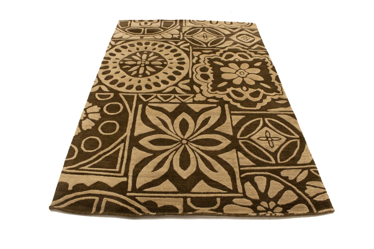Brown & Beige Floral 5X8 Hand-Tufted Modern Rug