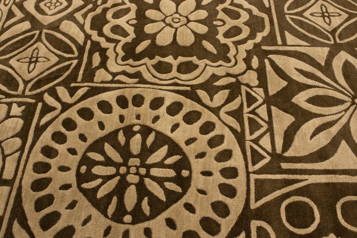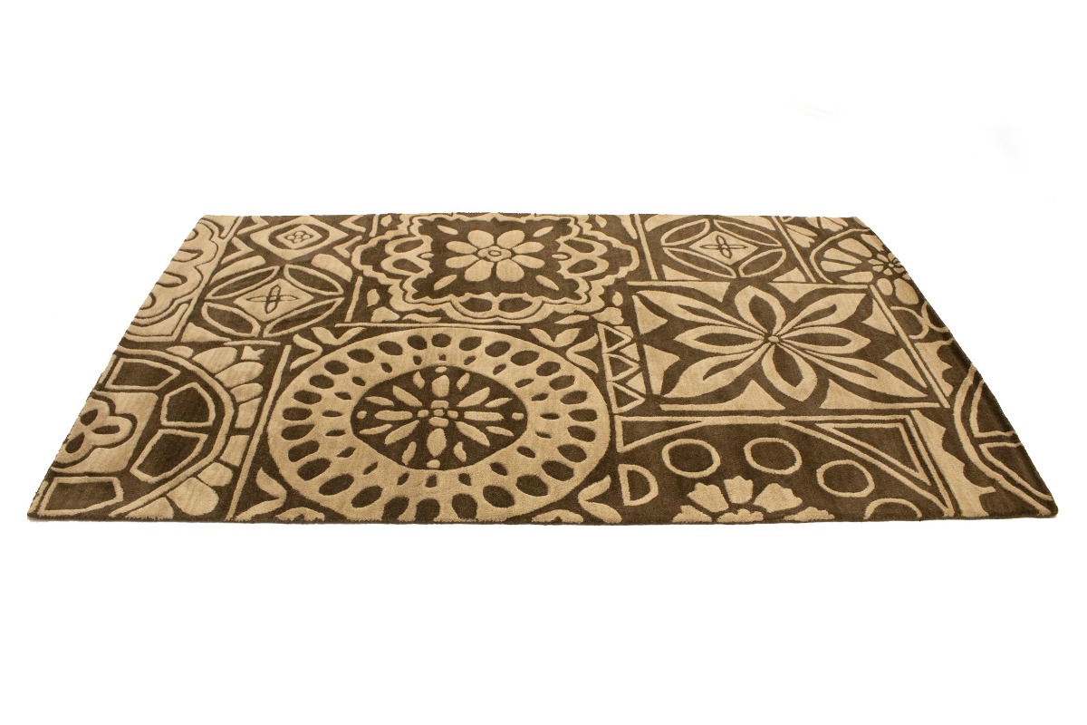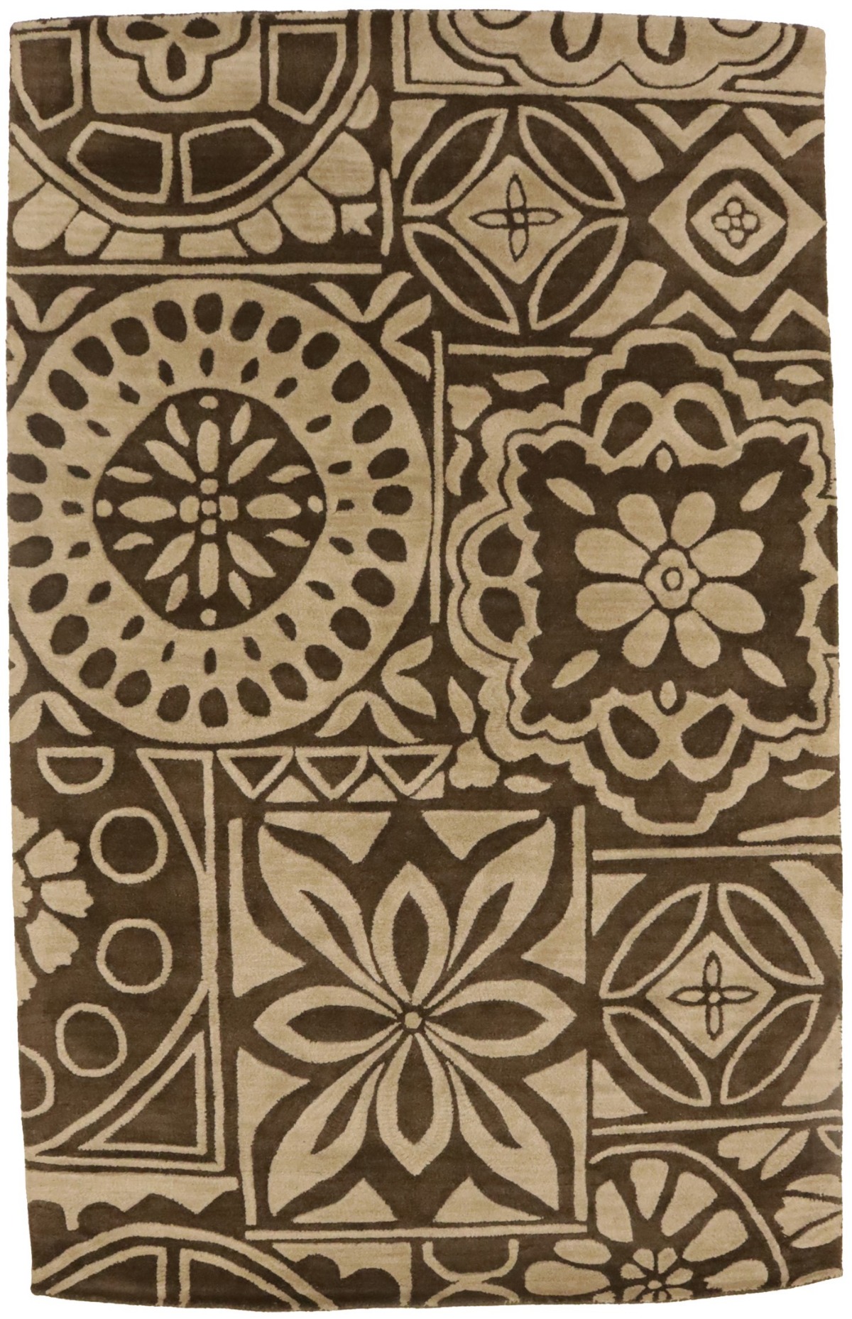 Brown & Beige Floral 5X8 Hand-Tufted Modern Rug