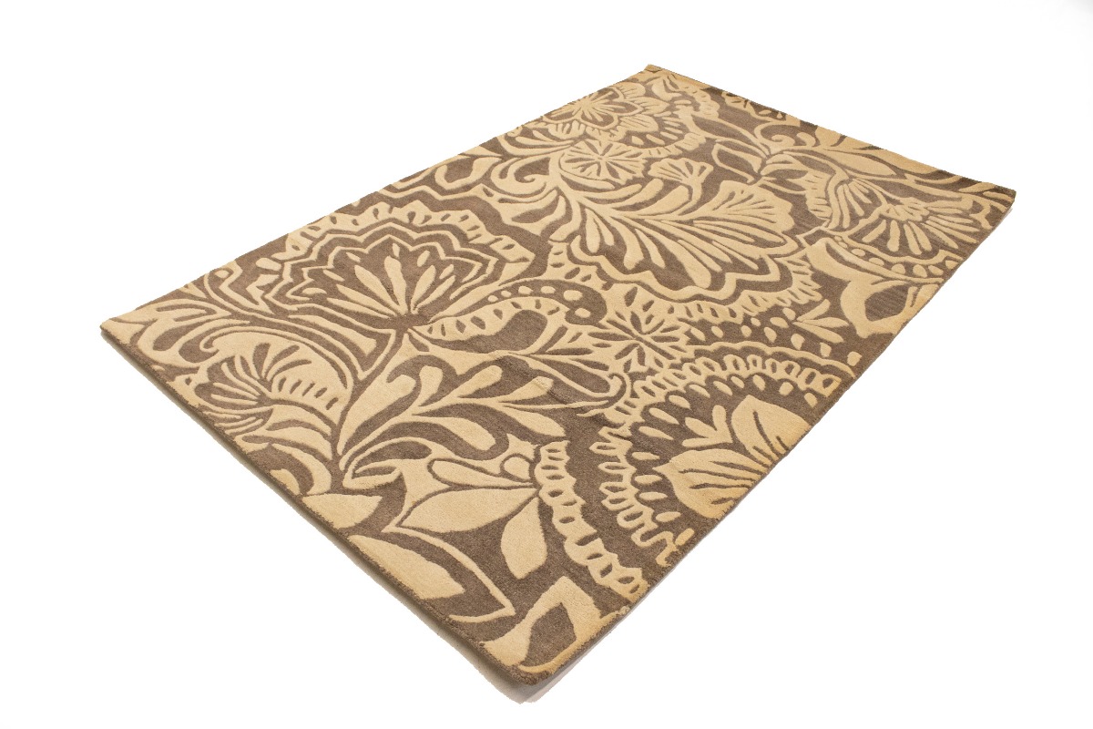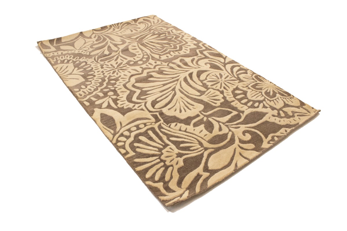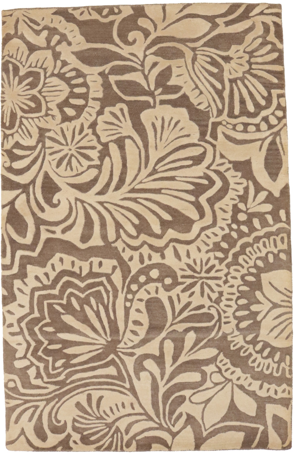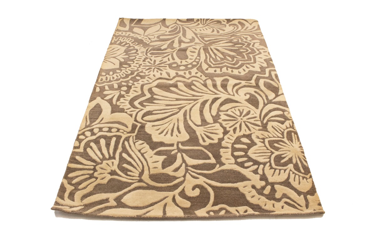 Brown & Cream Floral 5X8 Hand-Tufted Modern Rug