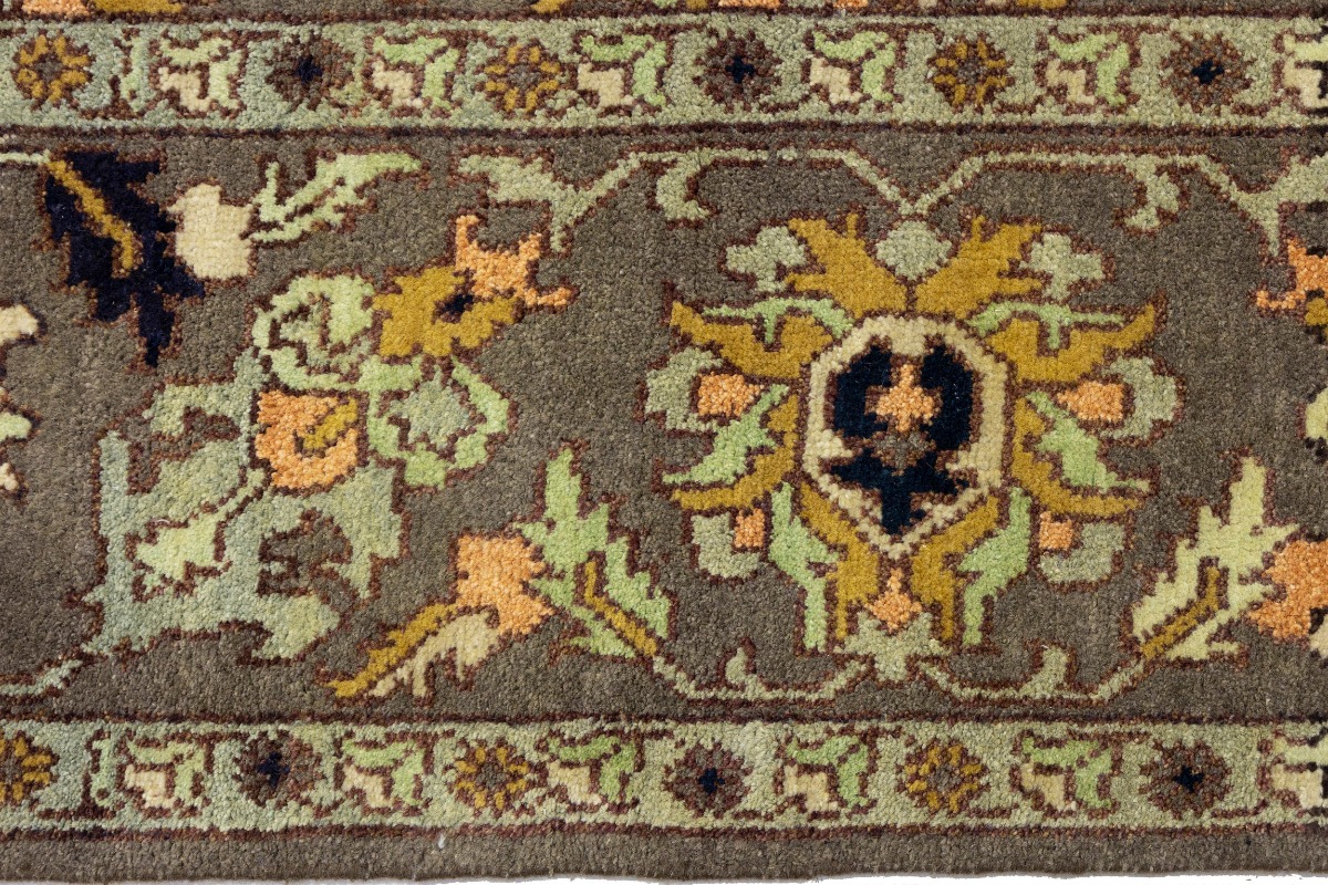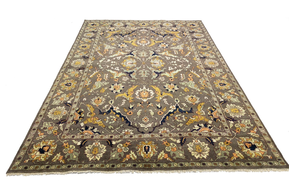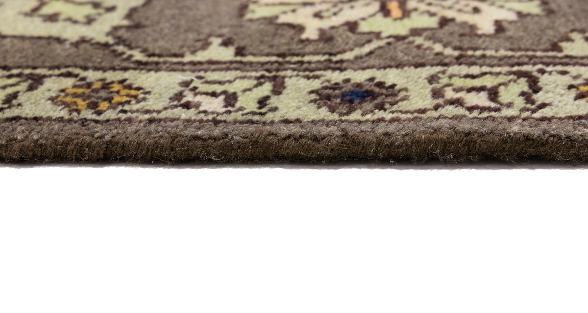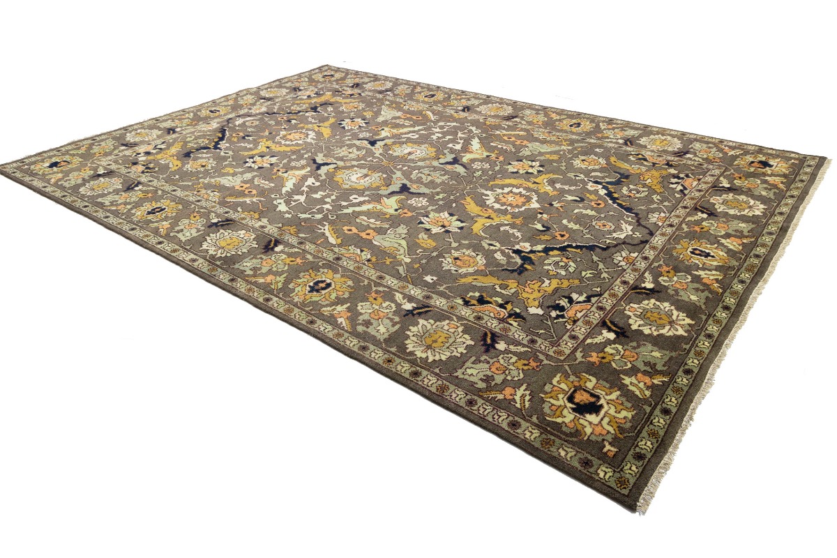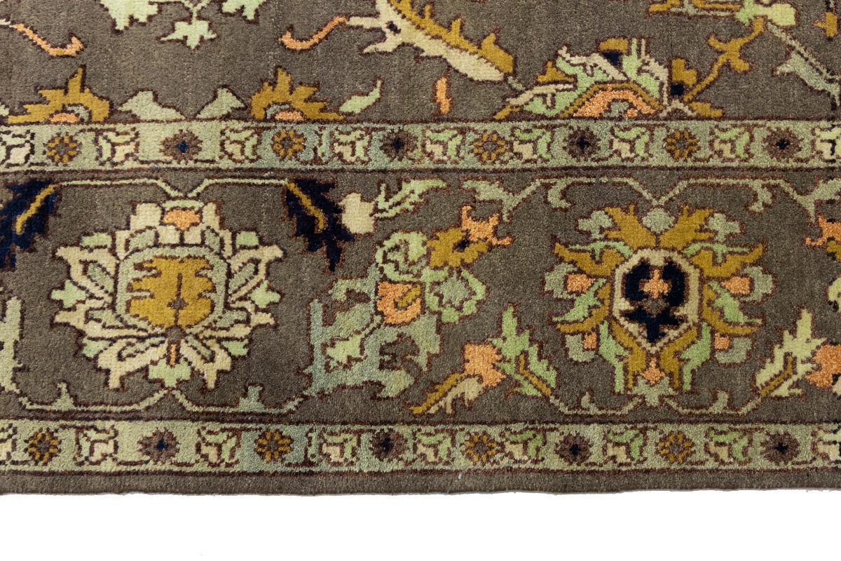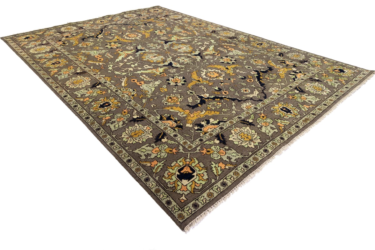 This genuine 10X14 brown new Oriental rug was well-constructed by the hands of master weavers motivated by a variety of stunning artistic designs, to recreate the aged look of the exceptional piece with a richness of color and developed decorative background field. What set this vintage style Oriental area rug from the others are the material and dye used (wool pile and cotton foundation), knot count, ancient designs, fantastic grades, and its regional historical connection: it has deep roots, from the story of the people who produced it to the meaning of the symbols and colors displayed across its canvas that have been praised for centuries. This Indian home décor carpet will be completely cozy and inviting that never will go out of style! Also, this Oriental rug would be among your most valuable treasures, it is a great investment that increase in value over time, and it will last a lifetime because was woven with high-quality, all-natural wool. Eco-friendly, opulent yet affordable; this rug give you an extra pop of character to help define your home environment with elegance and warmth that will capture the eyes and attention of your audience (homeowners, designers, decorators, family and friends). OT-7613