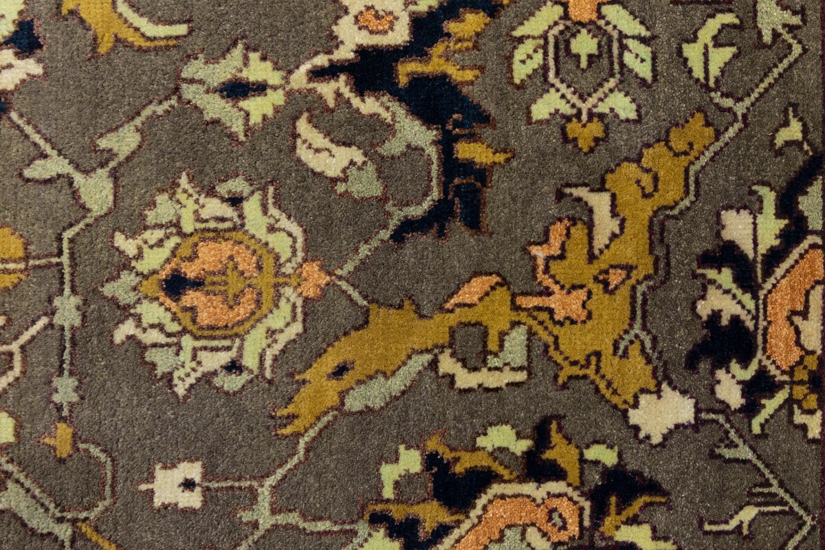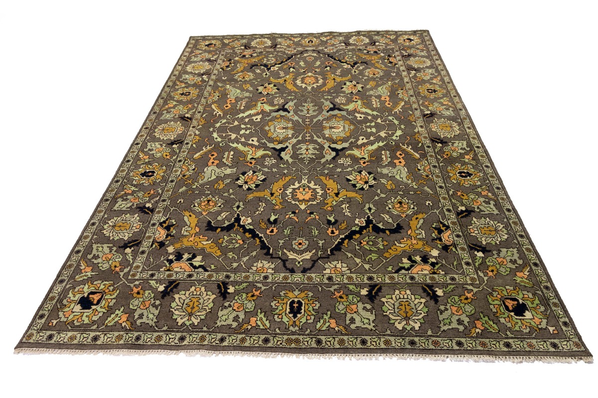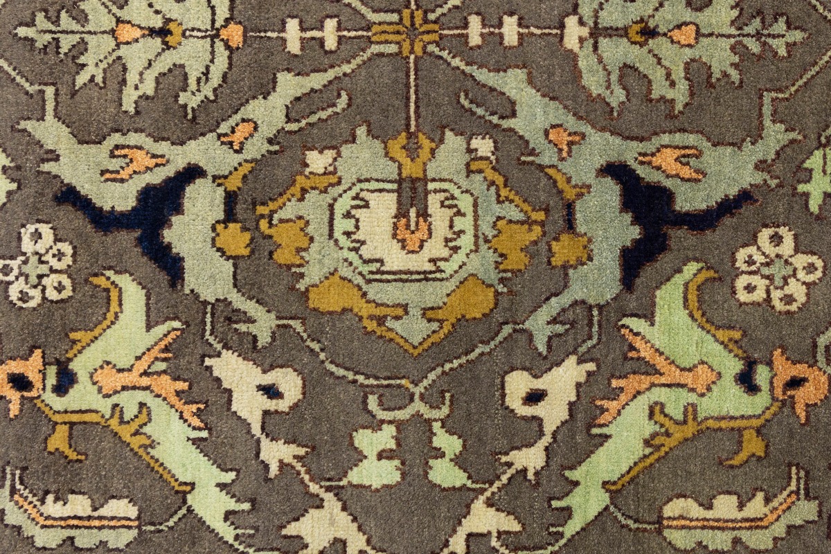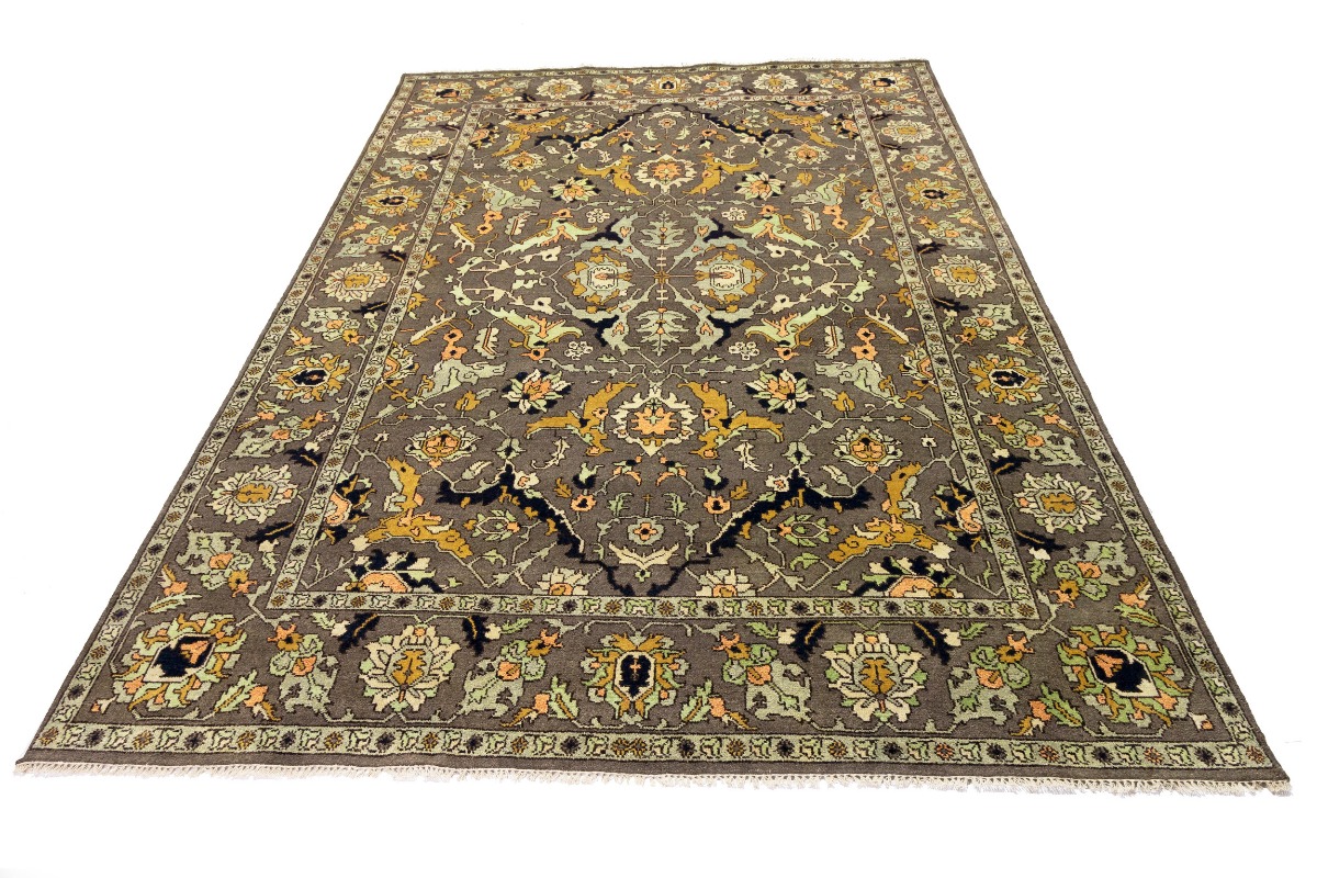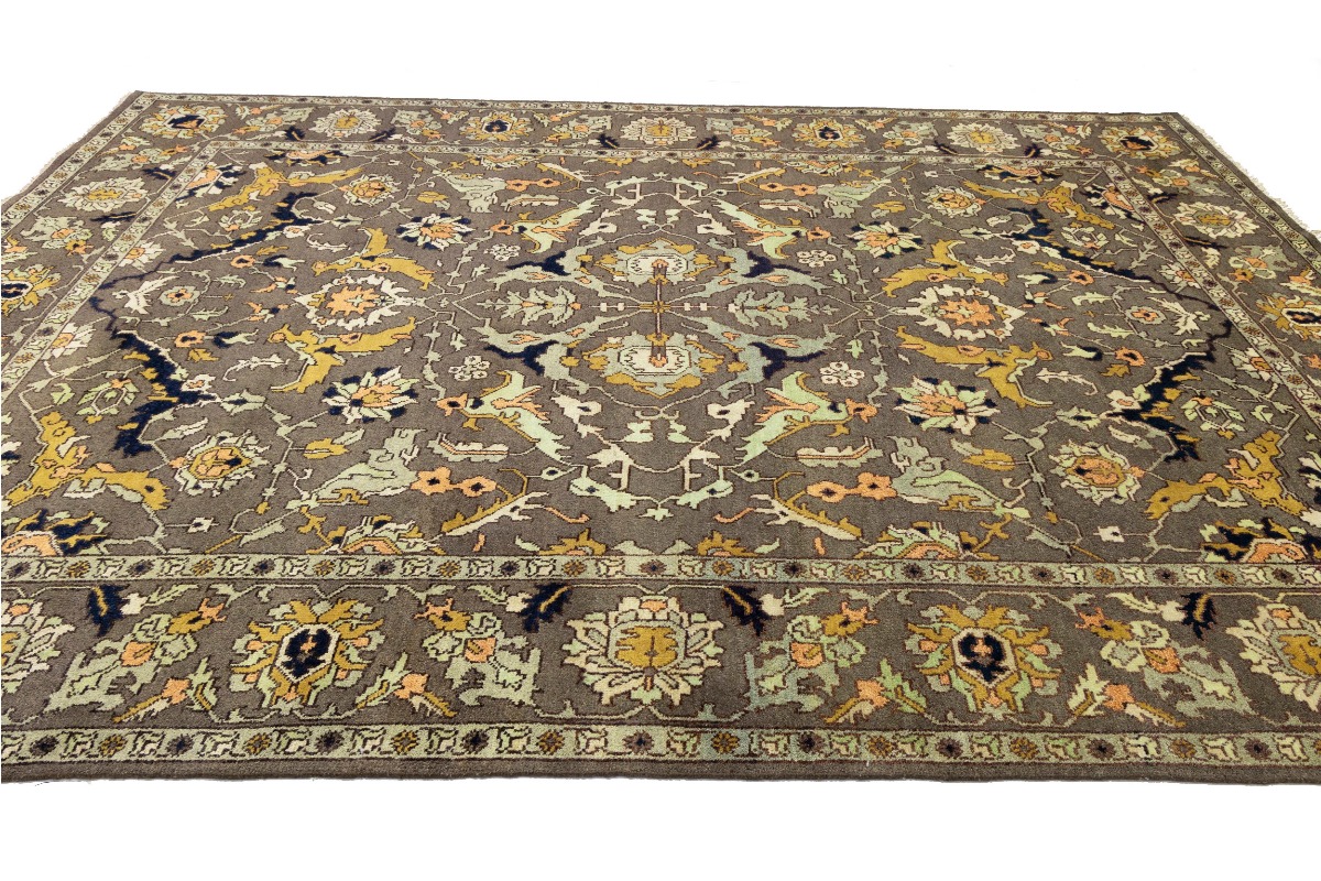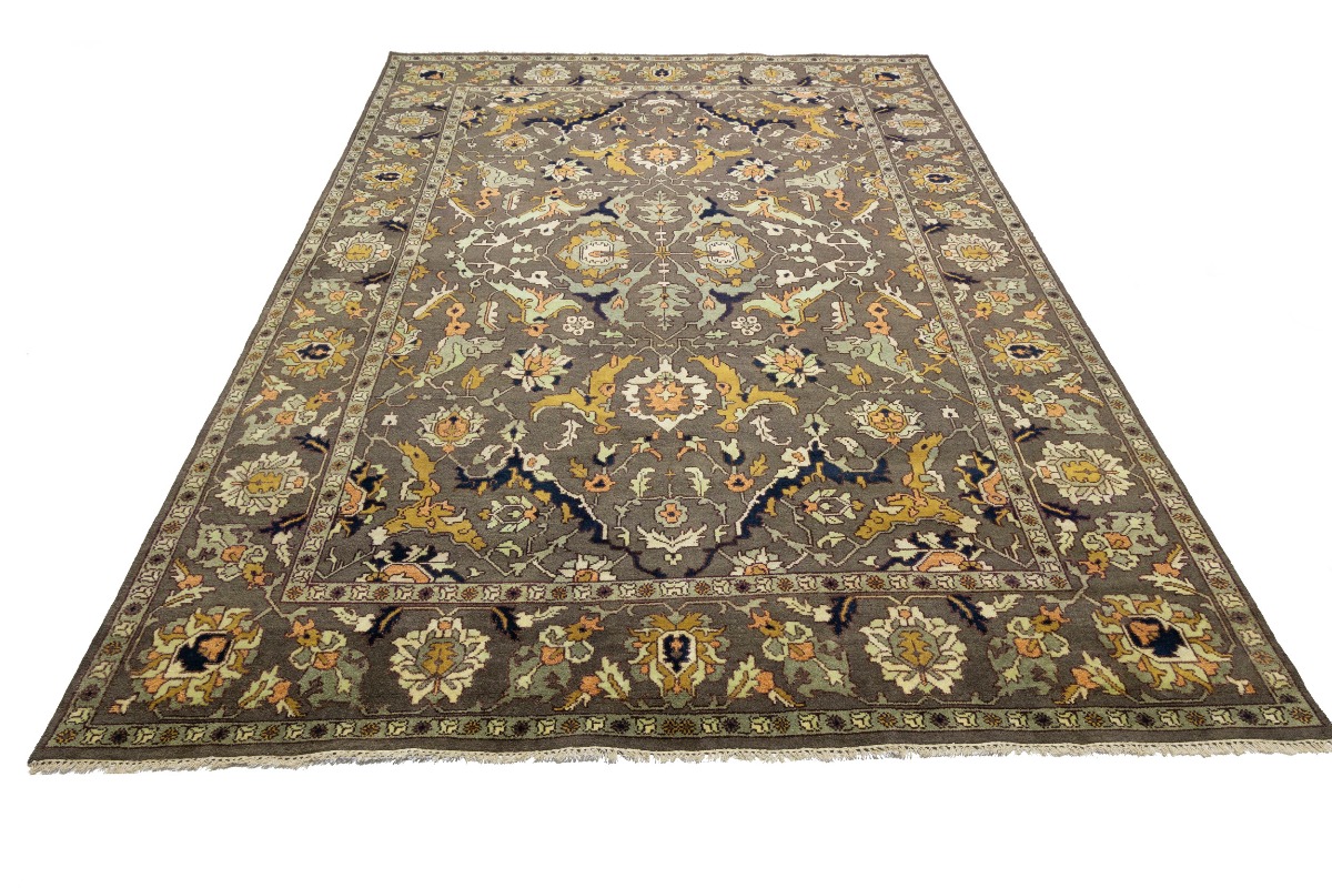 This genuine 10X14 brown new Oriental rug was well-constructed by the hands of master weavers motivated by a variety of stunning artistic designs, to recreate the aged look of the exceptional piece with a richness of color and developed decorative background field. What set this vintage style Oriental area rug from the others are the material and dye used (wool pile and cotton foundation), knot count, ancient designs, fantastic grades, and its regional historical connection: it has deep roots, from the story of the people who produced it to the meaning of the symbols and colors displayed across its canvas that have been praised for centuries. This Indian home décor carpet will be completely cozy and inviting that never will go out of style! Also, this Oriental rug would be among your most valuable treasures, it is a great investment that increase in value over time, and it will last a lifetime because was woven with high-quality, all-natural wool. Eco-friendly, opulent yet affordable; this rug give you an extra pop of character to help define your home environment with elegance and warmth that will capture the eyes and attention of your audience (homeowners, designers, decorators, family and friends). OT-7613