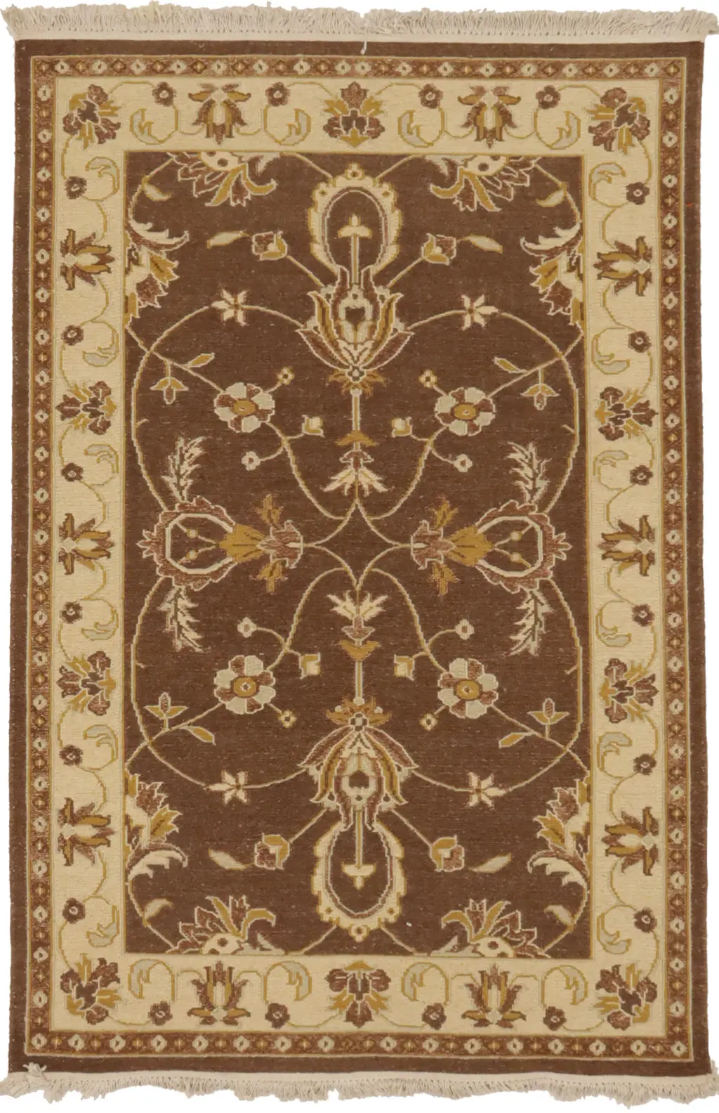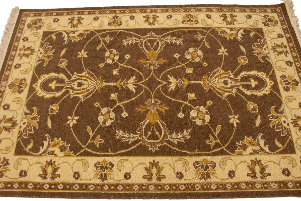 Handmade 4X6 brown Oriental rug made with natural dyes (fine wool pile and cotton foundation), superior knot count, and appealing ancient designs. This Oriental rug never will go out of style and would be among your most valuable treasures.