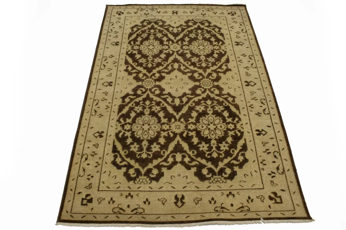 Hand Knotted 5'5X8'7 brown oriental rug made with natural dyes (fine wool pile and cotton foundation), superior knot count, and appealing ancient designs. This Oriental rug never will go out of style and would be among your most valuable treasures.