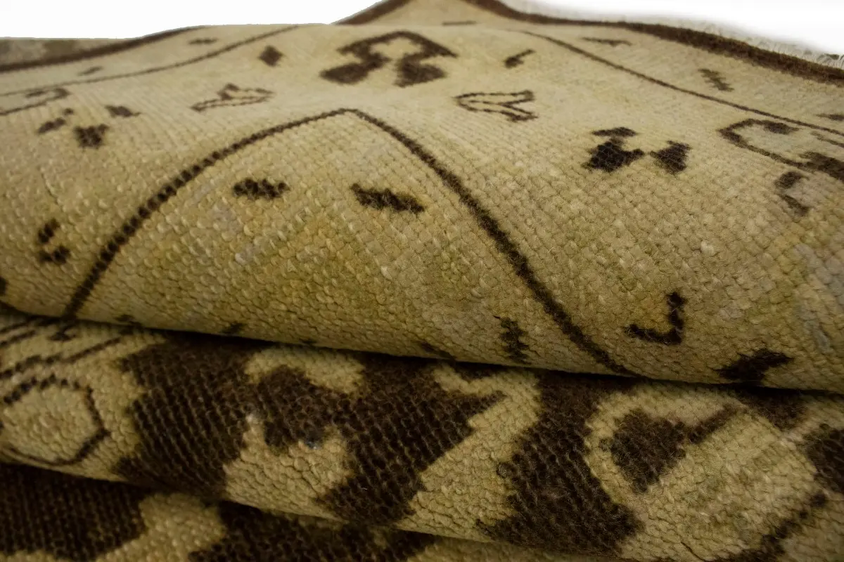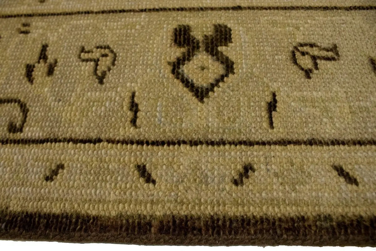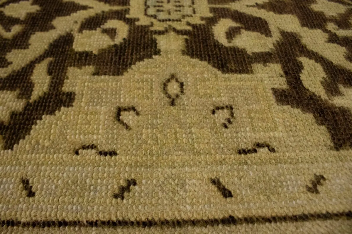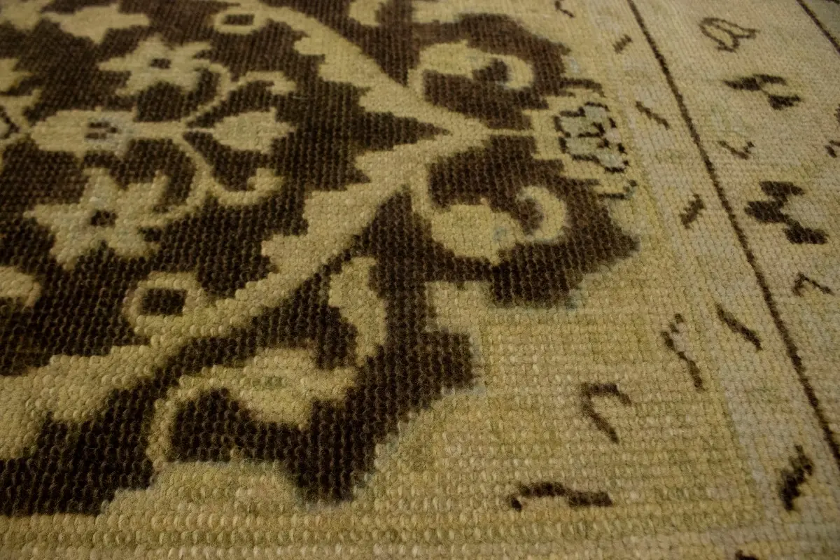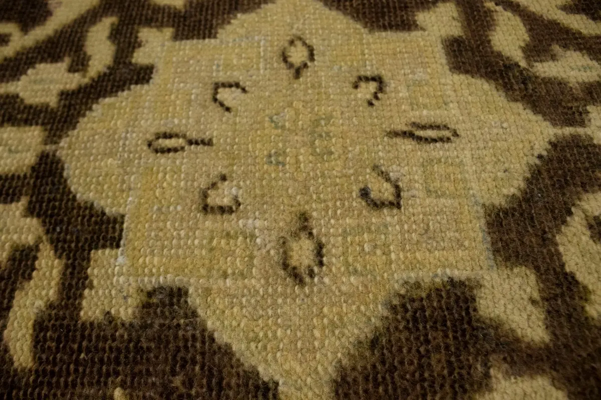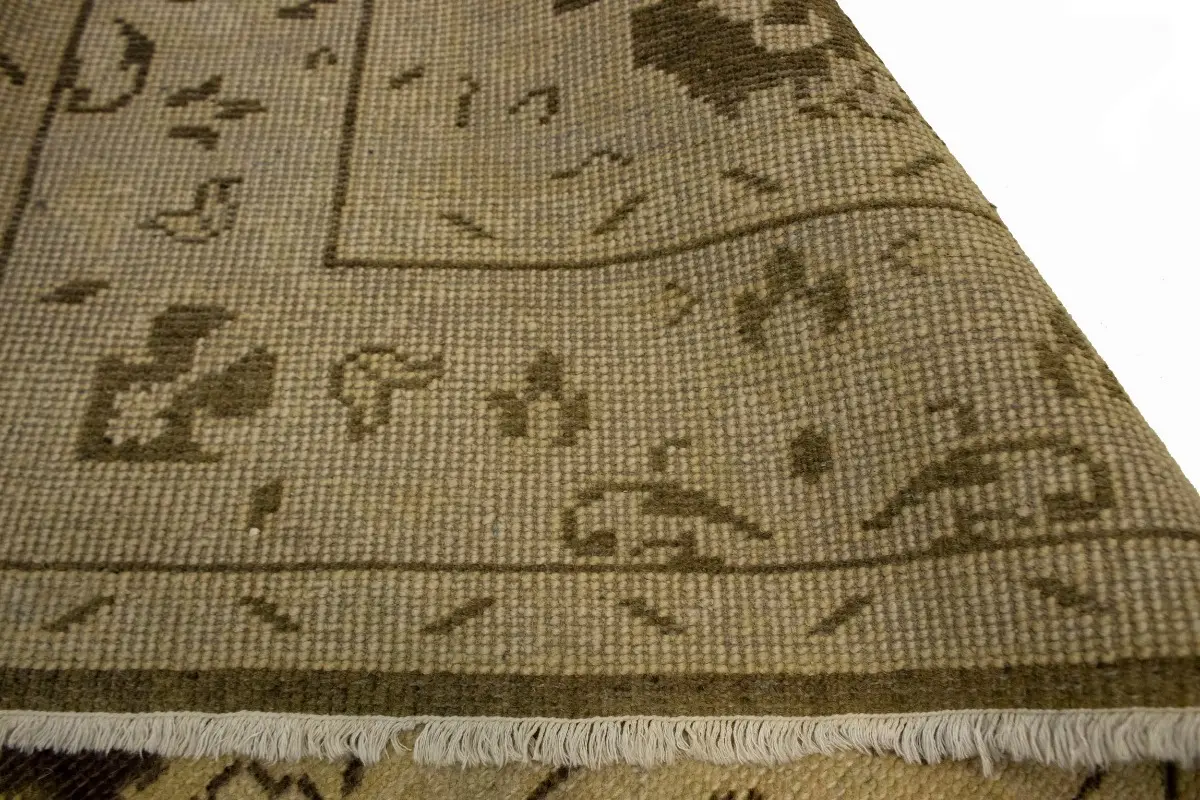 This authentic 5'5X8'7 brown new Oriental rug was masterly knotted by the hands of weavers inspired by a variety of wonderful artistic designs, to recreate the aged look of the original piece with a richness of color and intricate patterned background field. What set this vintage style Oriental area rug from the others are the material and dye used (wool pile and cotton foundation), knot count, antique designs, fantastic grades, and its regional historical connection: it has deep roots, from the story of the people who produced it to the meaning of the symbols and colors displayed across its canvas that have been praised for centuries. This Indian home décor carpet will be completely cozy and inviting that never will go out of style! Also, this Oriental rug would be among your most valuable treasures, it is a great investment that accrues value over time, and it will last for generations because was woven with high-quality, all-natural wool. Environmentally friendly, opulent yet affordable; this rug/runner will give you a thorough amount of character to help define your living space with luxury and warmth that will capture the eyes and attention of your audience (homeowners, designers, decorators, family and friends). OT-3443