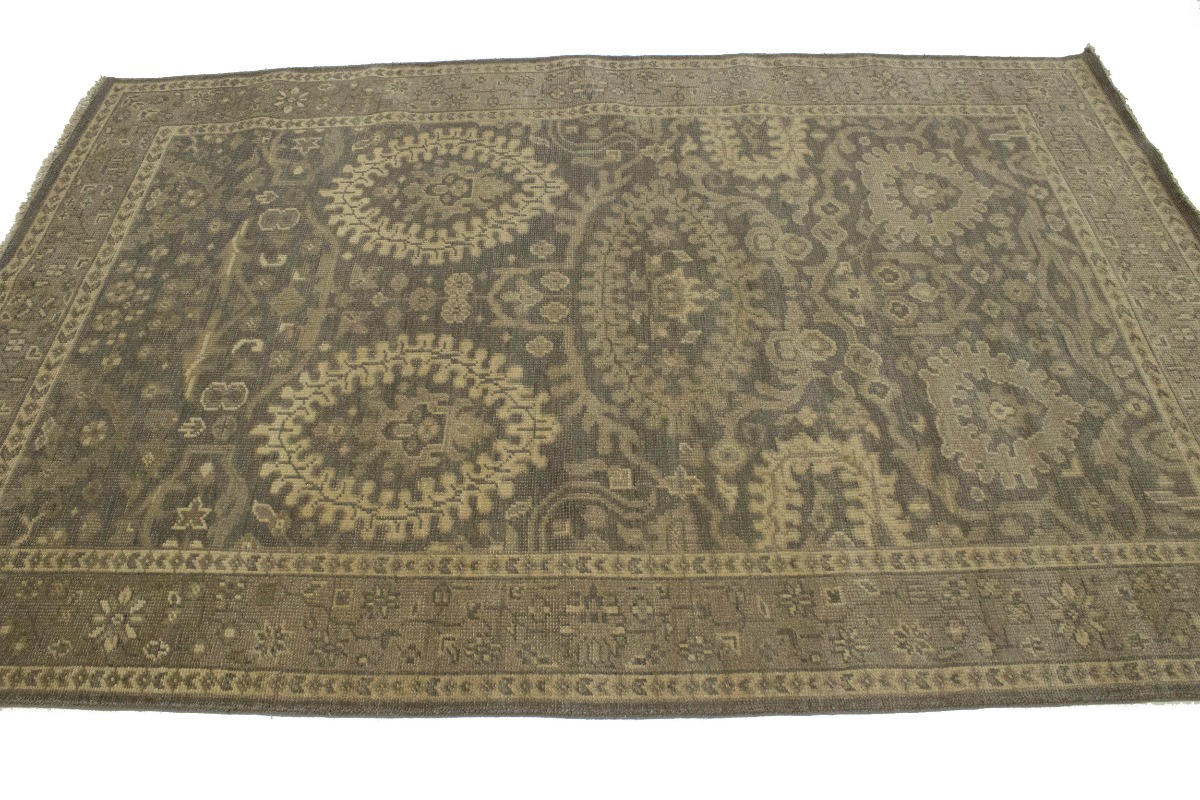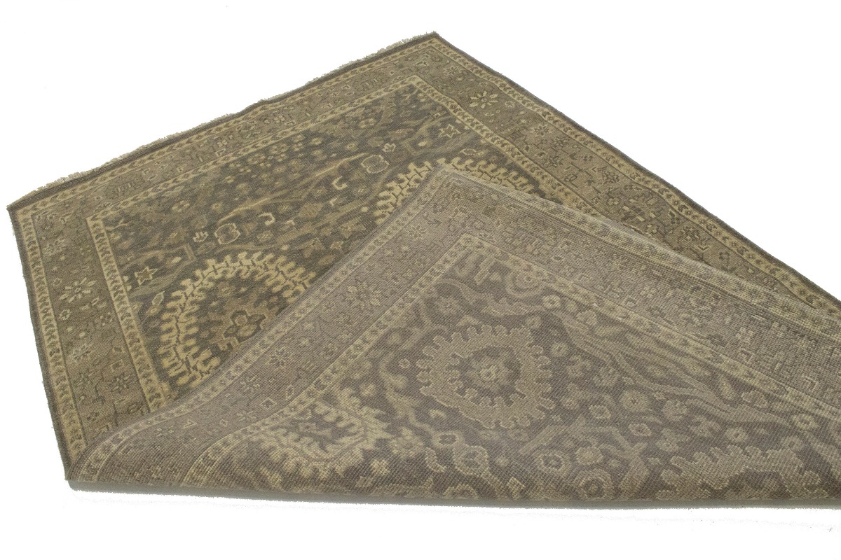 This original 5'7X8'5 brown new Oriental rug was finely knotted by the hands of weavers influenced by a variety of amazing artistic designs, to recreate the aged look of the exceptional piece with a richness of color and embellished background field. What set this vintage style Oriental area rug from the others are the material and dye used (wool pile and cotton foundation), knot count, antique designs, fantastic grades, and its regional historical connection: it has deep roots, from the story of the people who produced it to the meaning of the symbols and colors displayed across its canvas that have been praised for centuries. This Indian home décor carpet will be completely cozy and inviting that never will go out of style! Also, this Oriental rug would be among your most valuable treasures, it is a great investment that increase in value over time, and it will last a lifetime because was woven with high-quality, all-natural wool. Eco-friendly, opulent yet affordable; this rug will give you an extra pop of character to help define your home environment with luxury and warmth that will capture the eyes and attention of your audience (homeowners, designers, decorators, family and friends). OT-6936