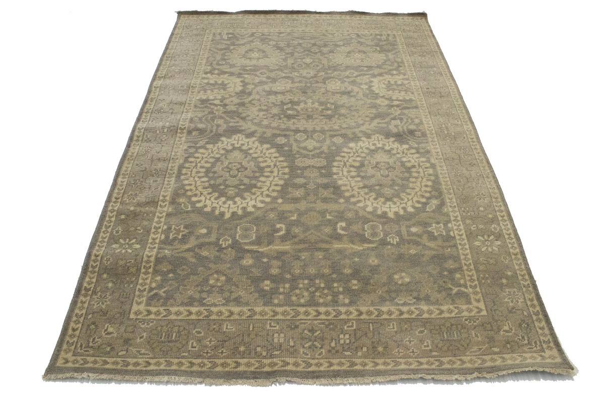 Hand Knotted 5'7X8'5 brown Oriental rug made with vegetable dyes (fine wool pile and cotton foundation), superior knot count, and alluring ancient designs. This Oriental rug never will go out of style and would be among your most valuable treasures.