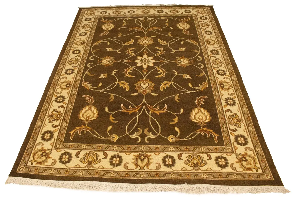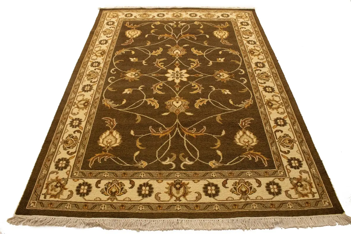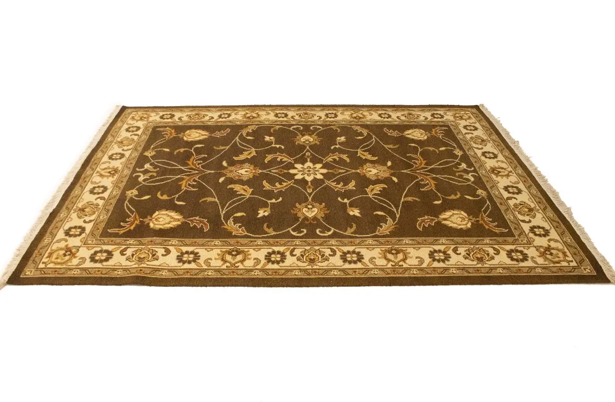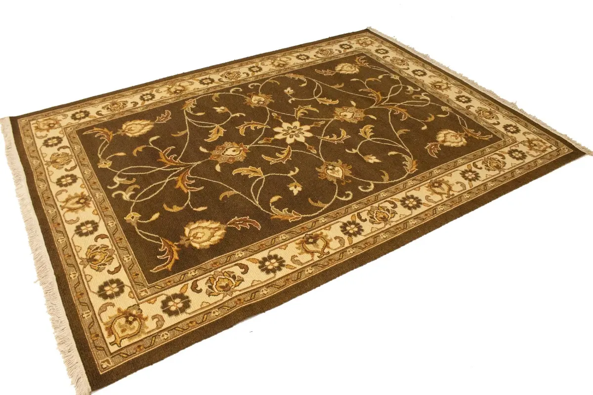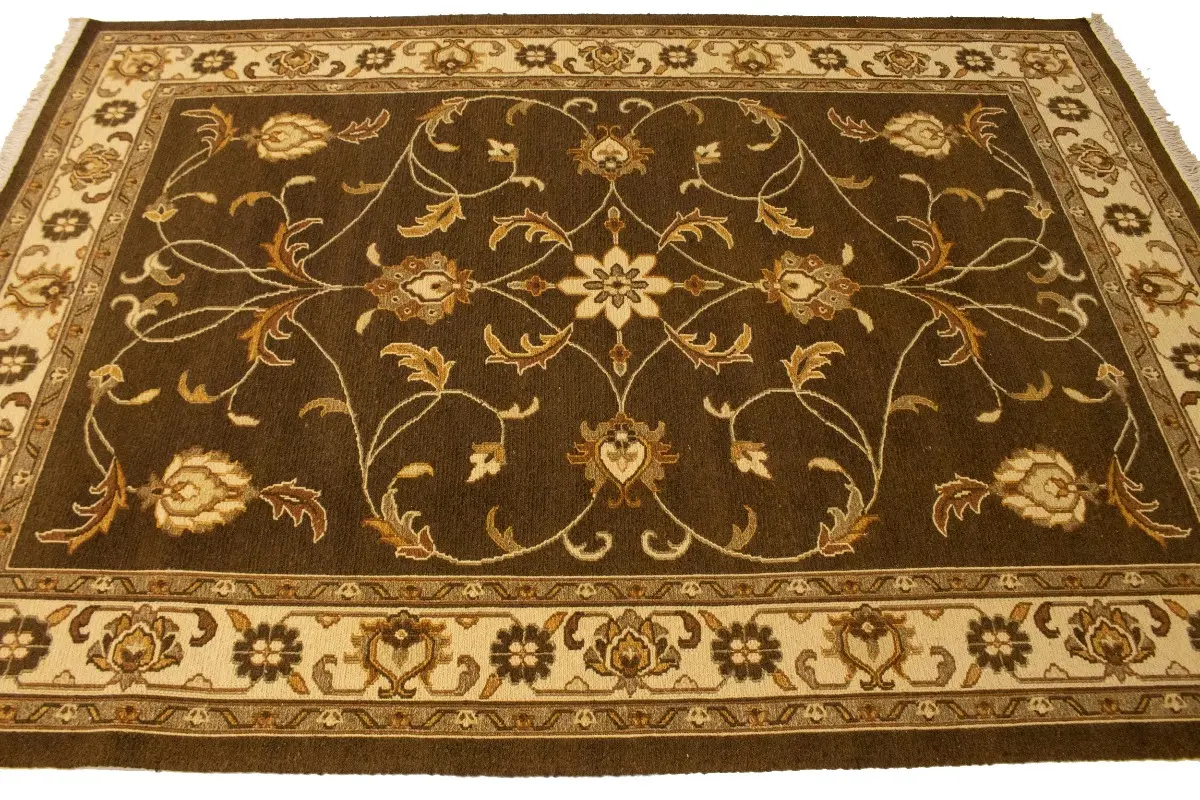 Hand Knotted 6X8 brown Oriental rug made with vegetable dyes (fine wool pile and cotton foundation), superior knot count, and appealing ancient designs. This Oriental rug never will go out of style and would be among your most valuable treasures.