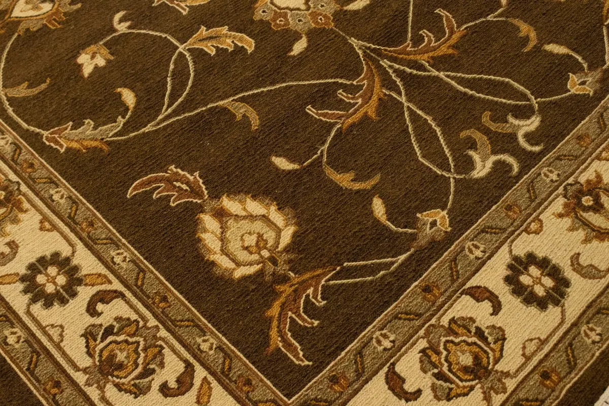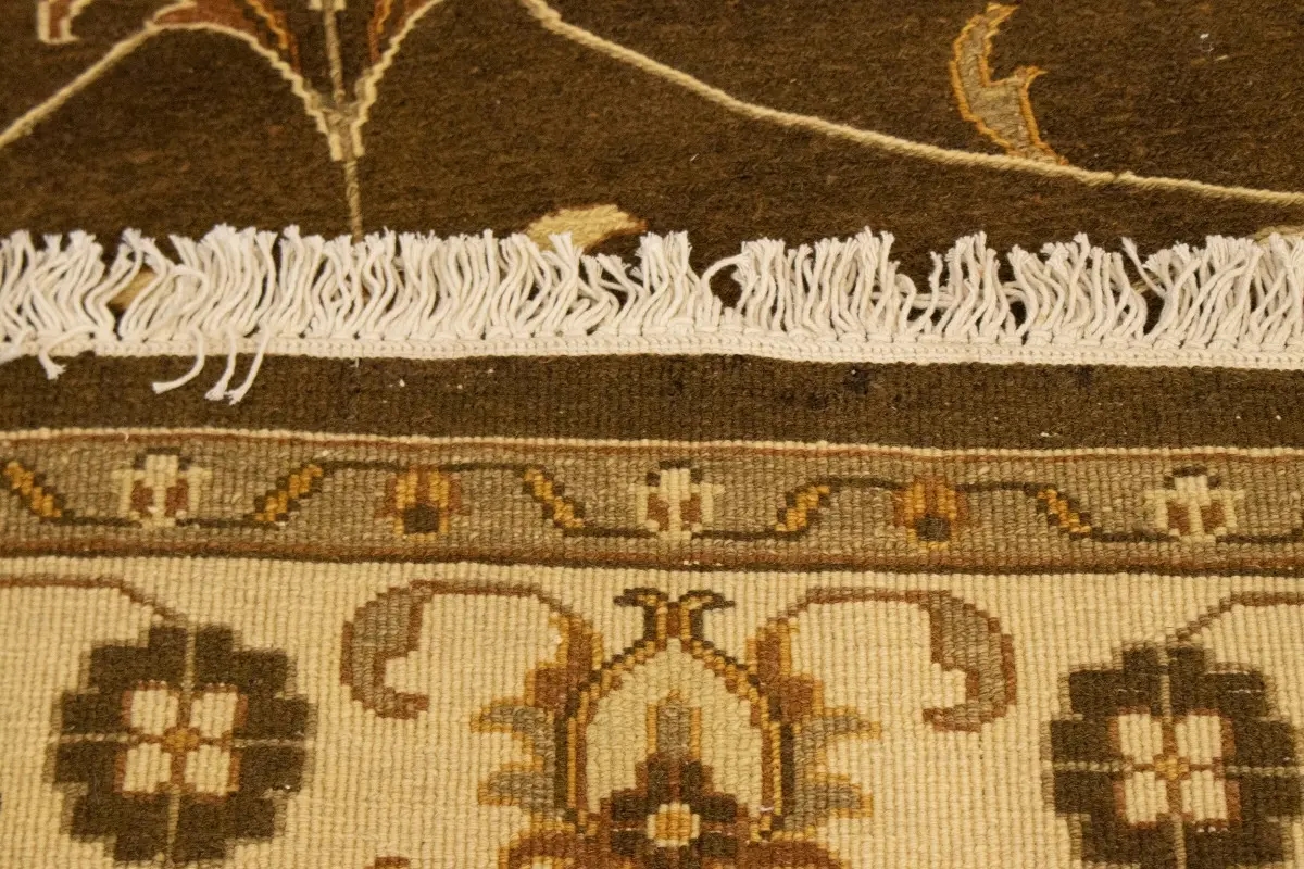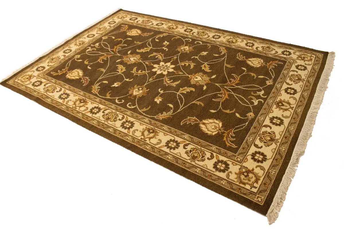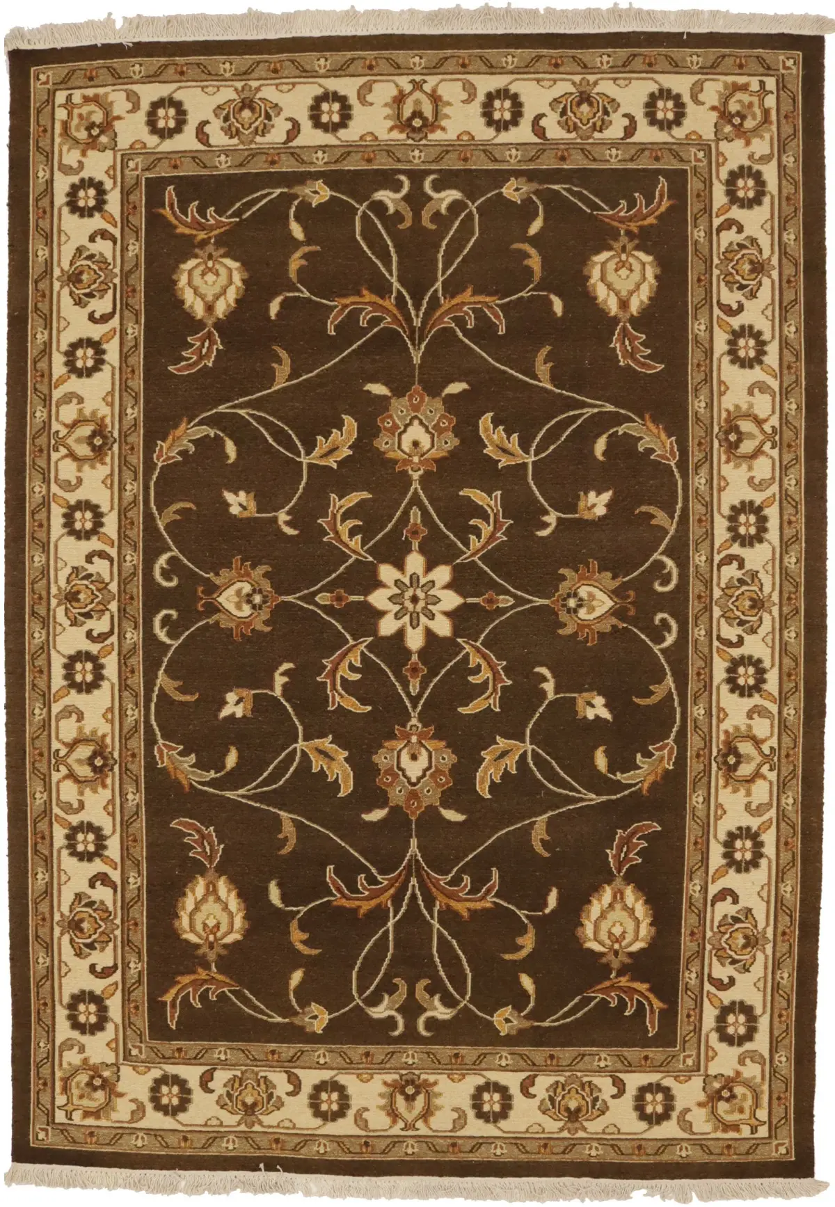 Hand Knotted 6X8 brown Oriental rug made with vegetable dyes (fine wool pile and cotton foundation), superior knot count, and appealing ancient designs. This Oriental rug never will go out of style and would be among your most valuable treasures.