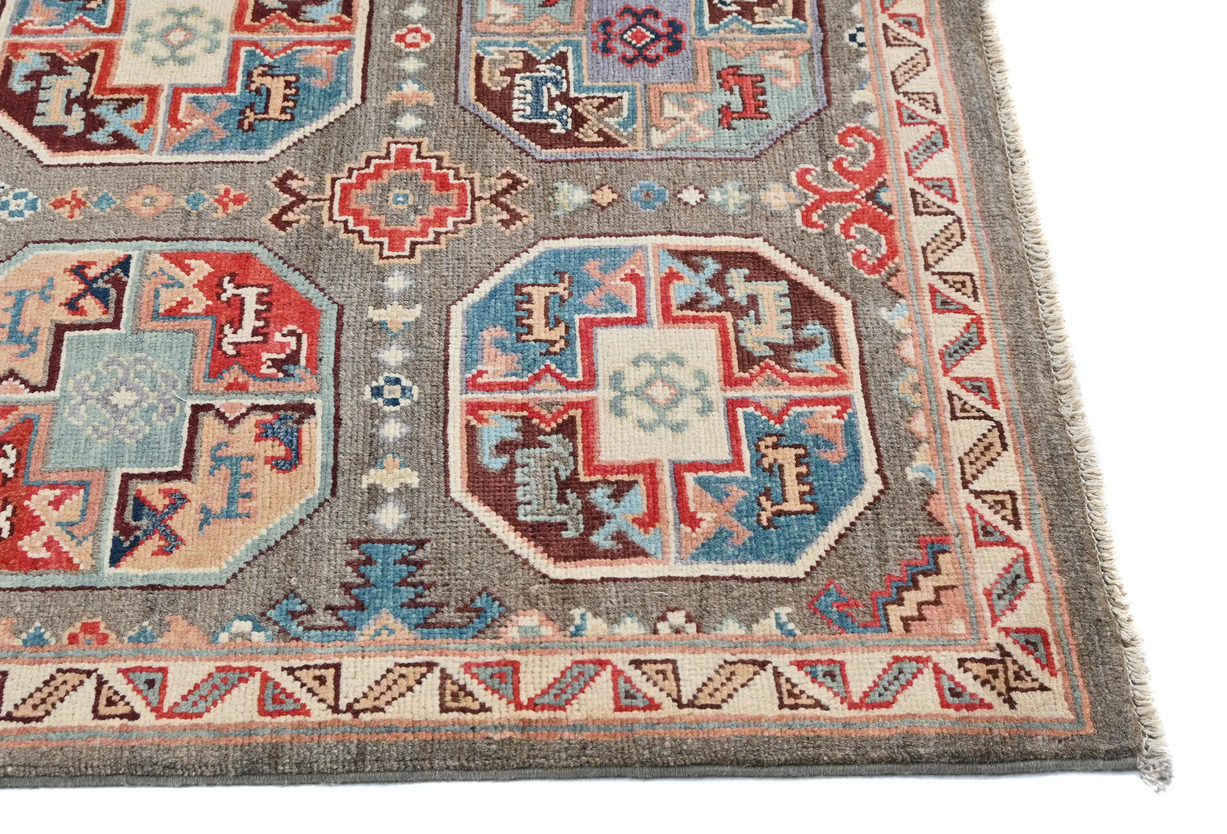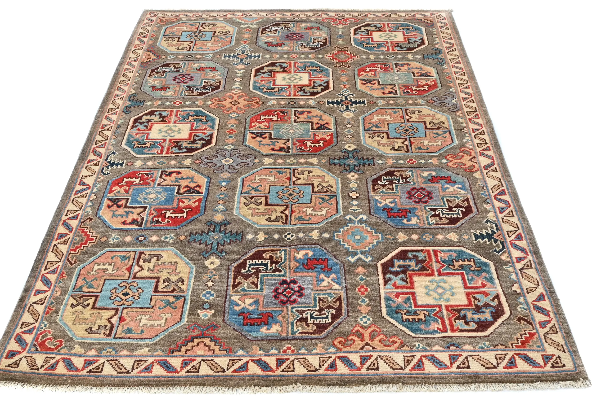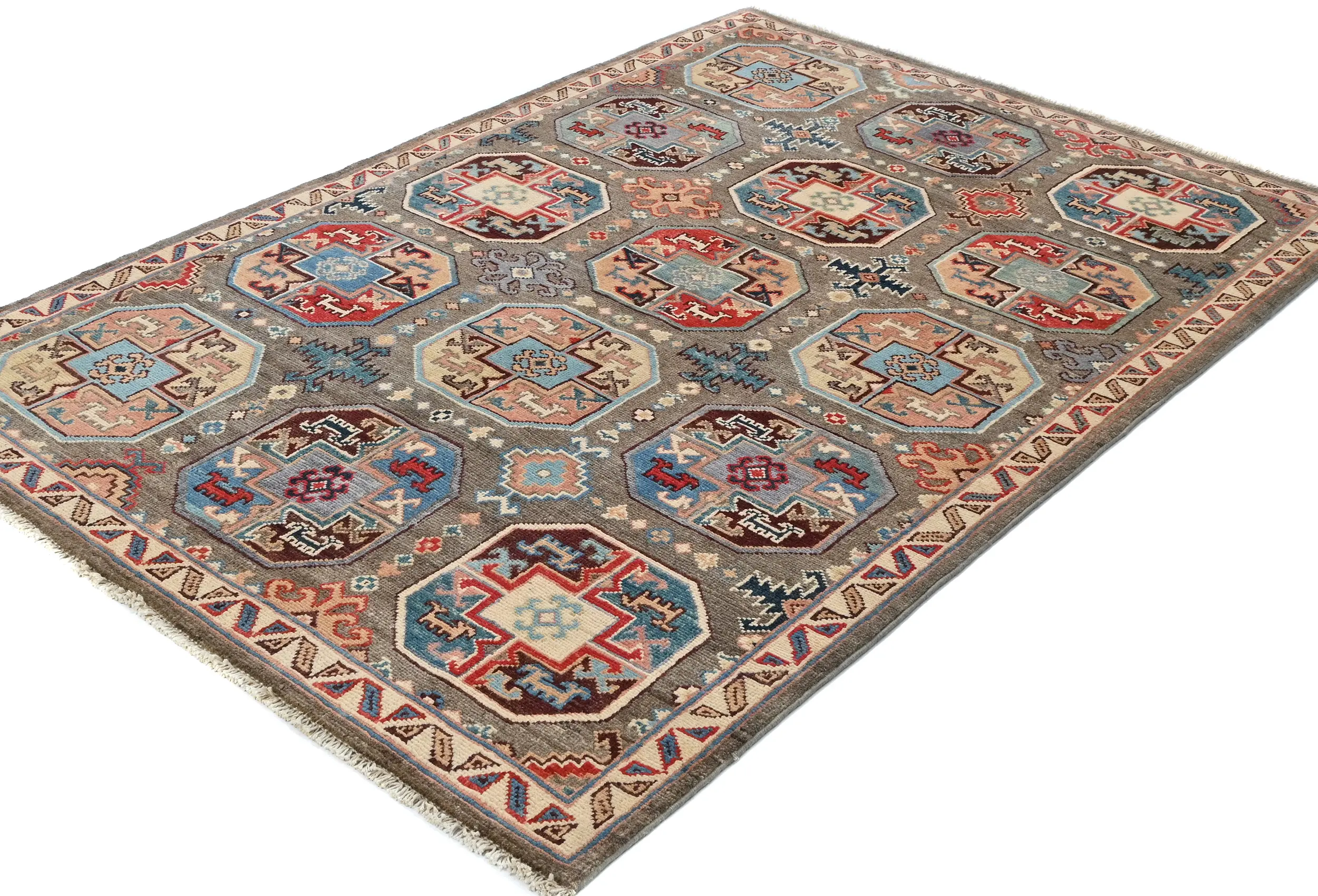Brown Geometric Modern 4X6 Kazak Oushak Pakistan Rug