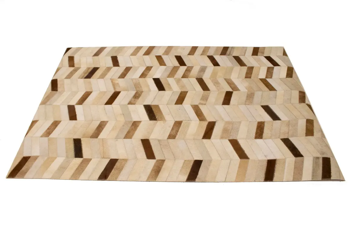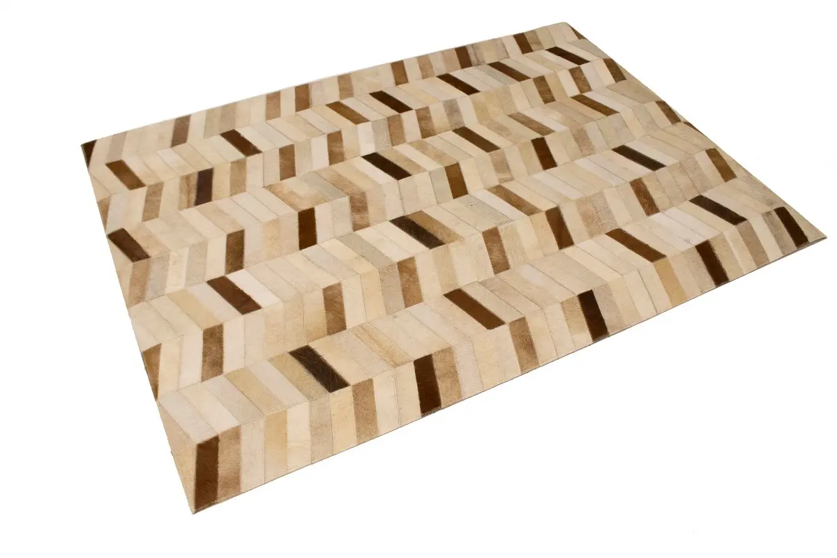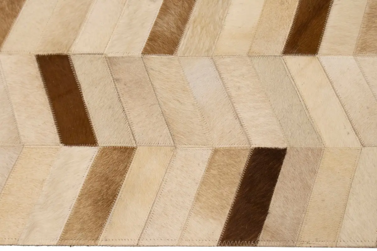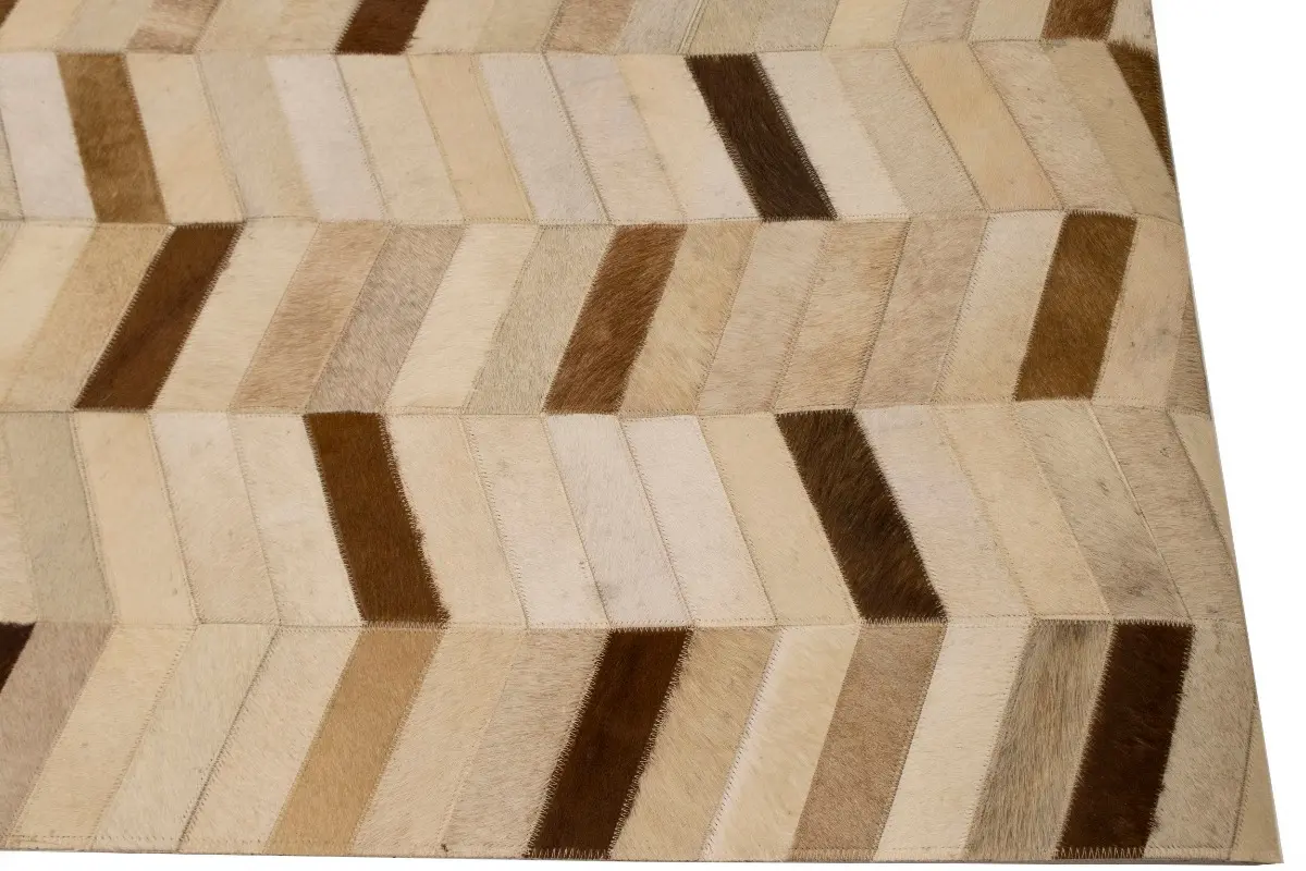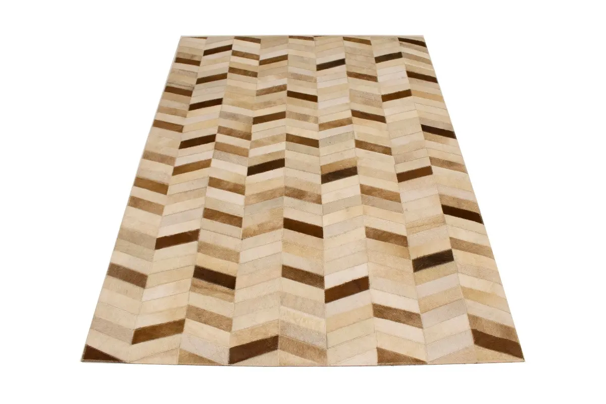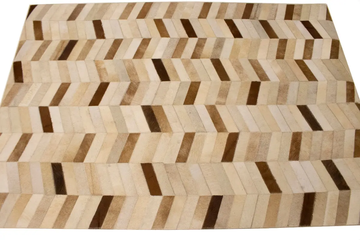 Brown Ivory Contemporary Cowhide 4X6 Geometric Design Modern Leather Rug Carpet