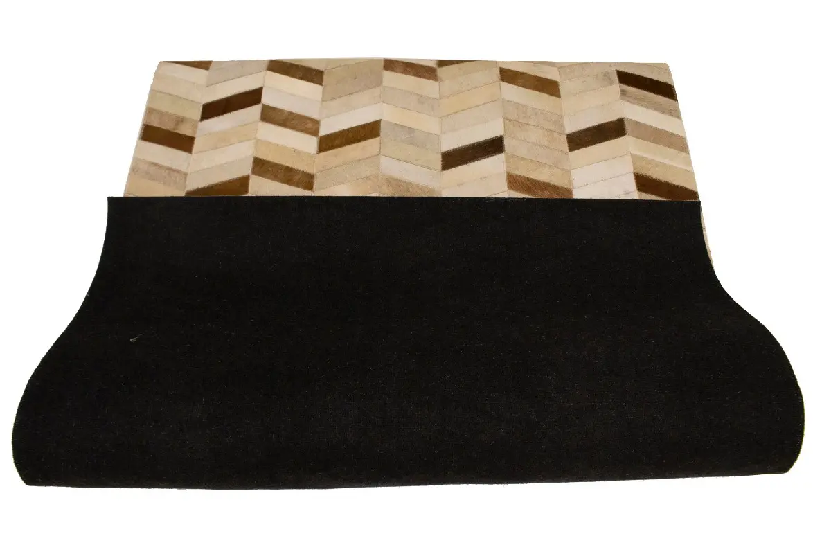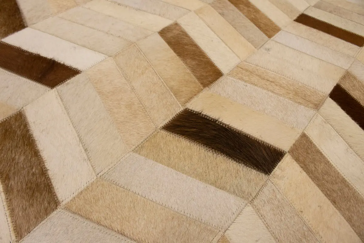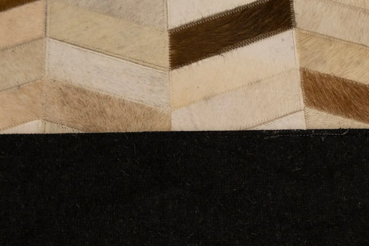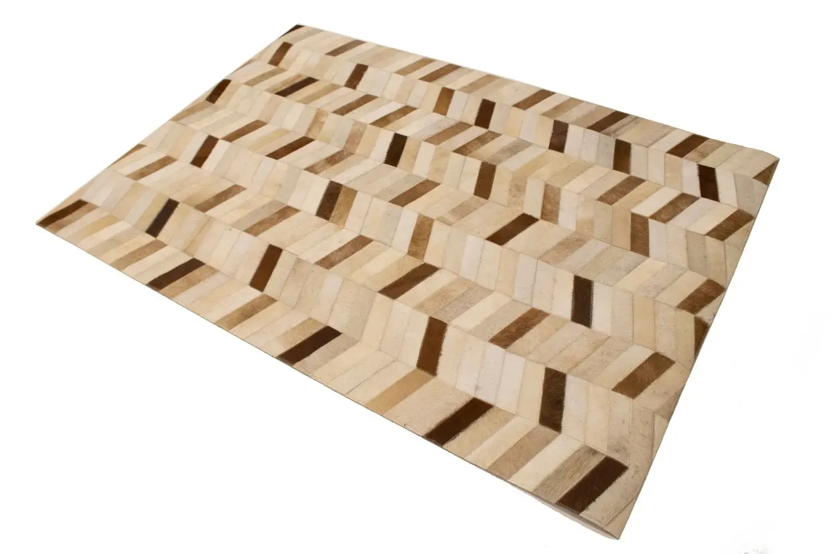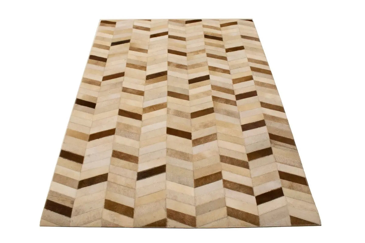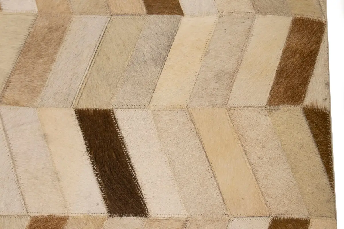 Brown Ivory Contemporary Cowhide 4X6 Geometric Design Modern Leather Rug Carpet