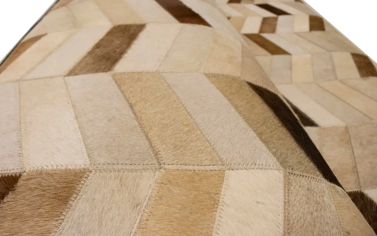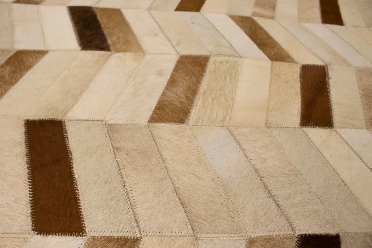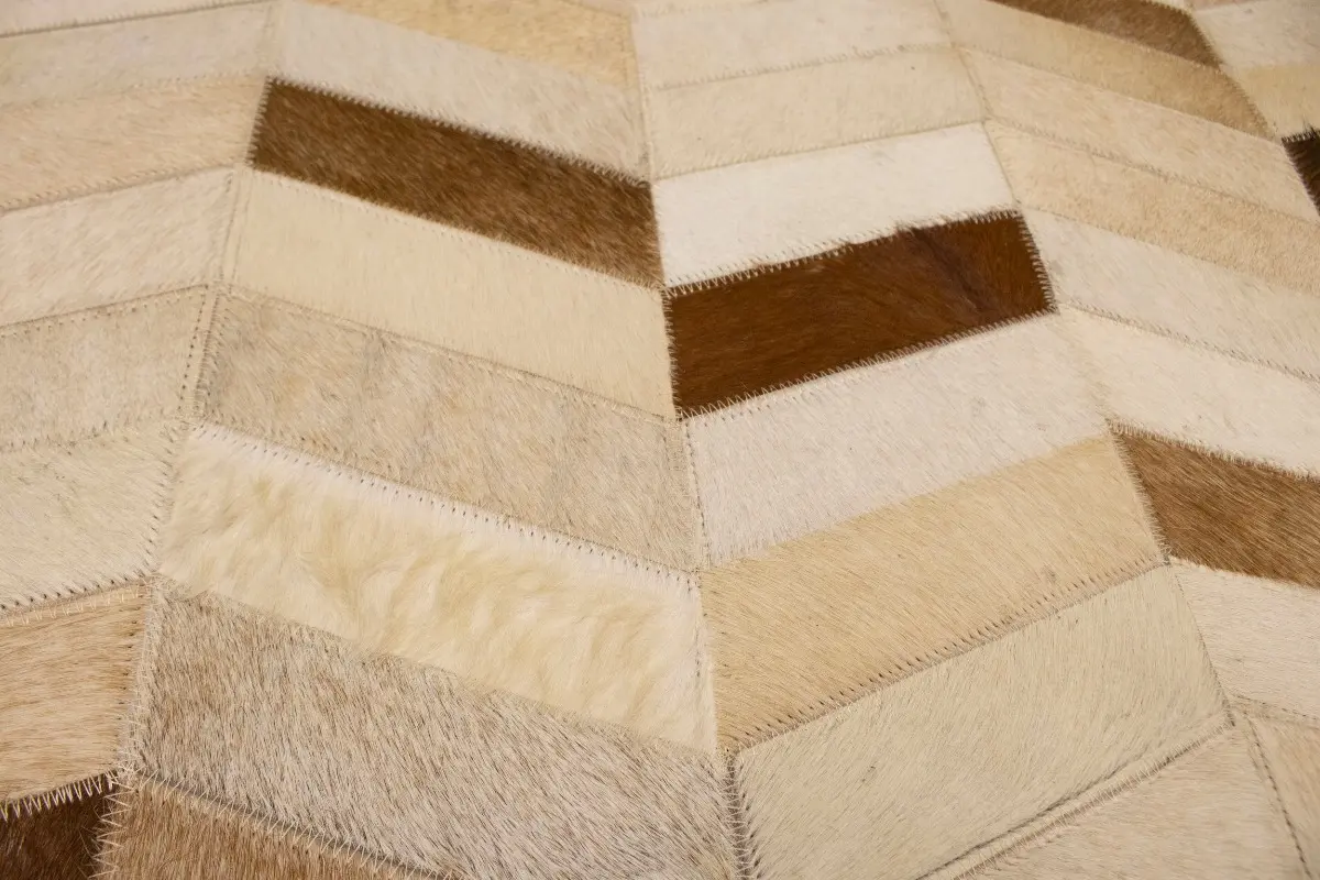 Brown Ivory Cowhide 4X6 Modern Leather Rug