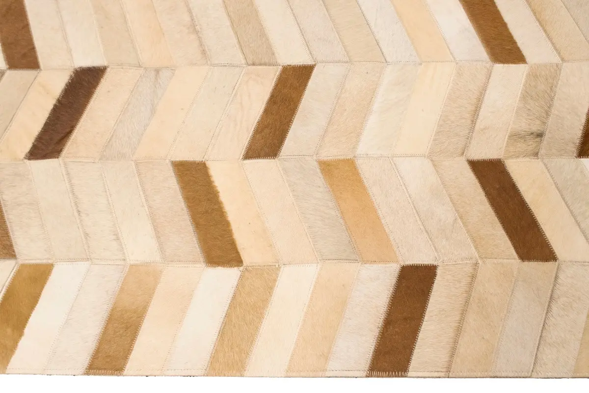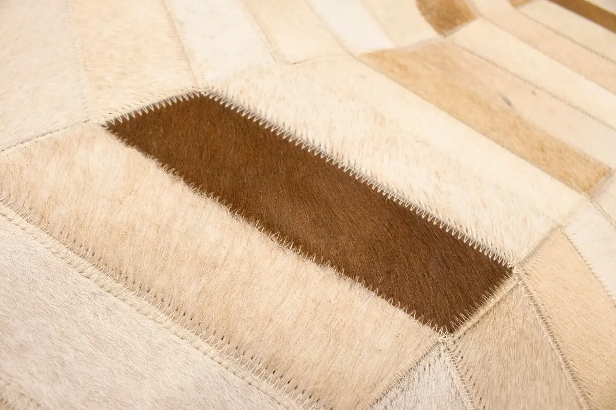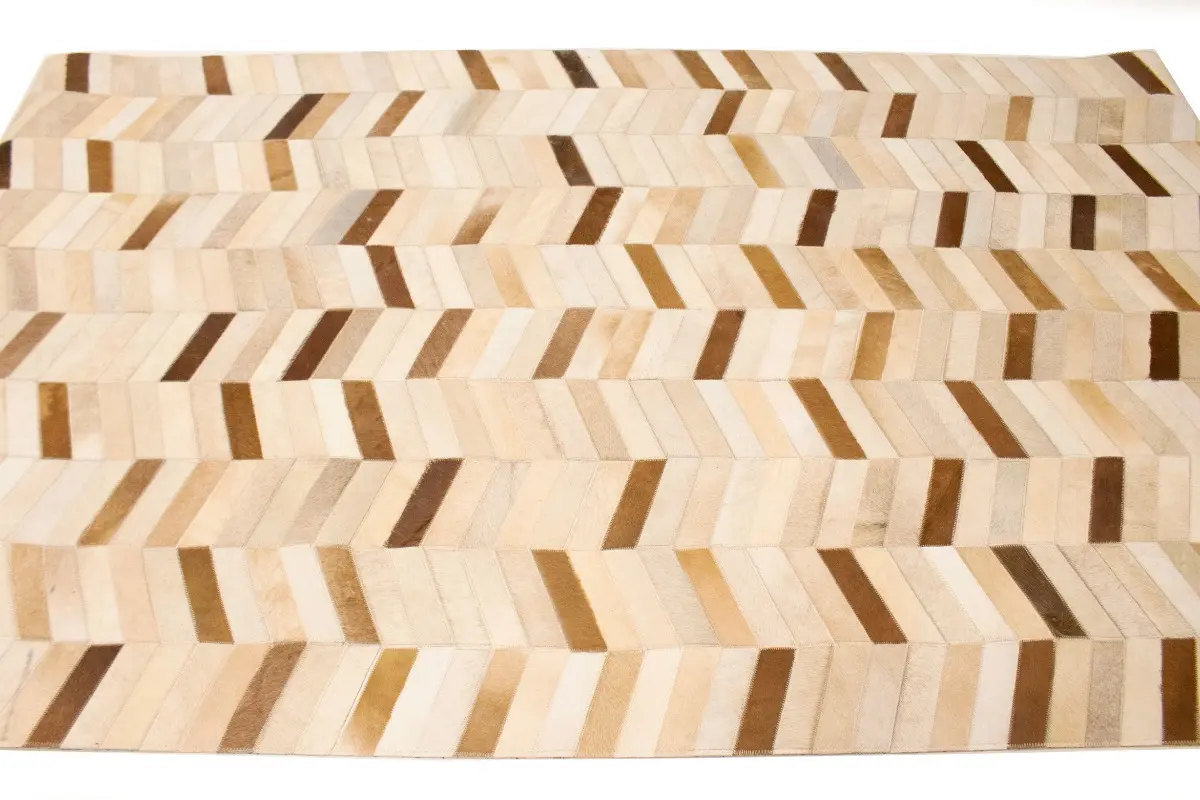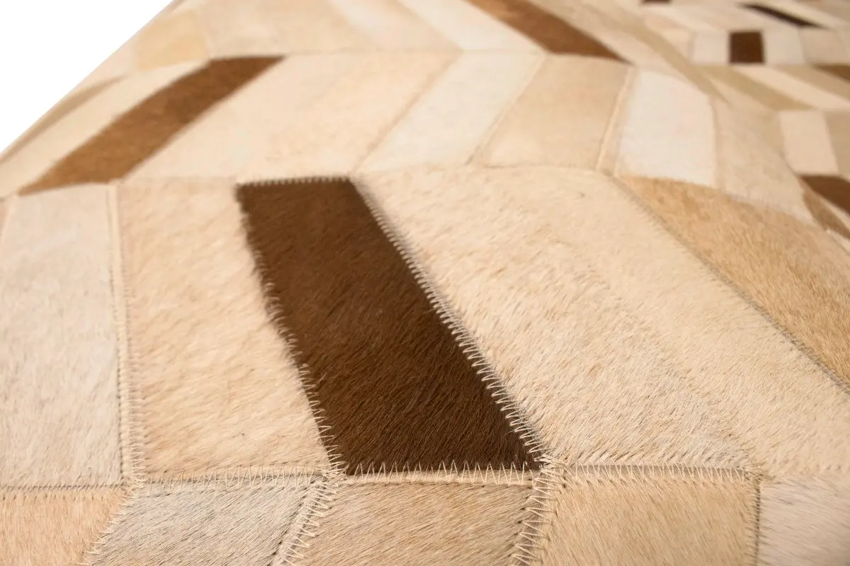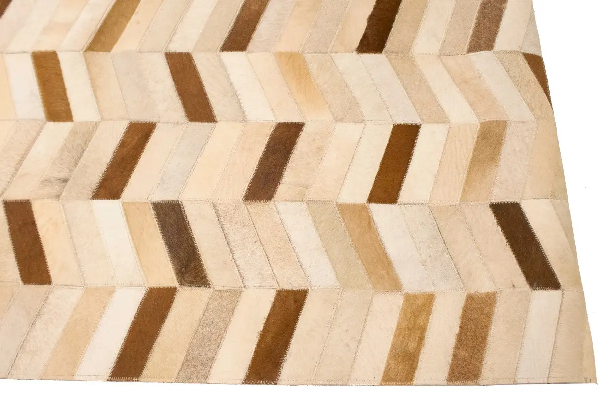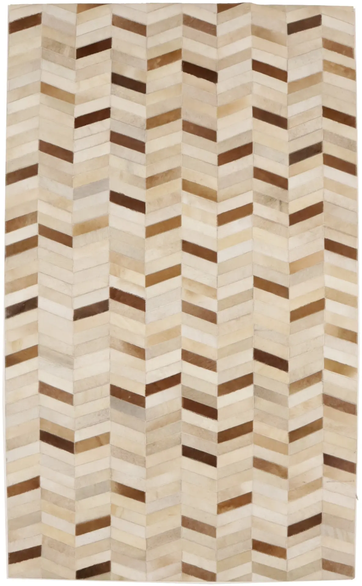 Brown Ivory Cowhide 5X8 Modern Leather Rug