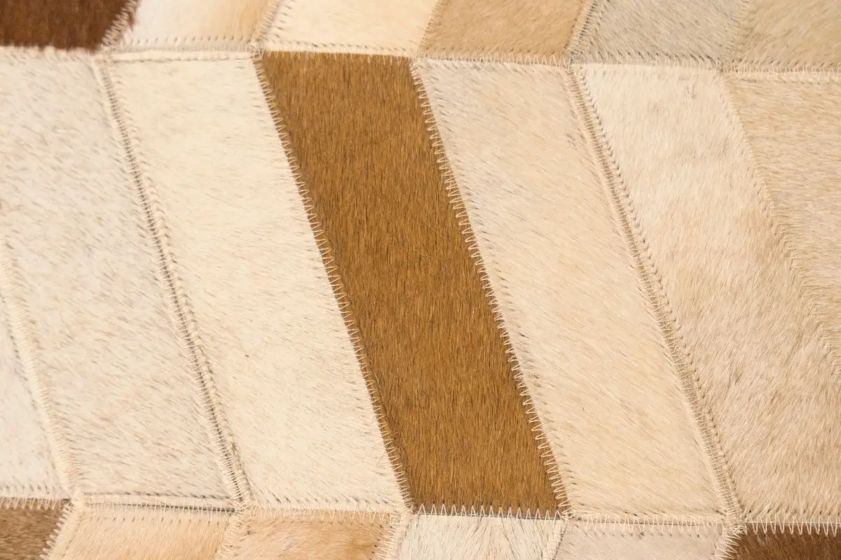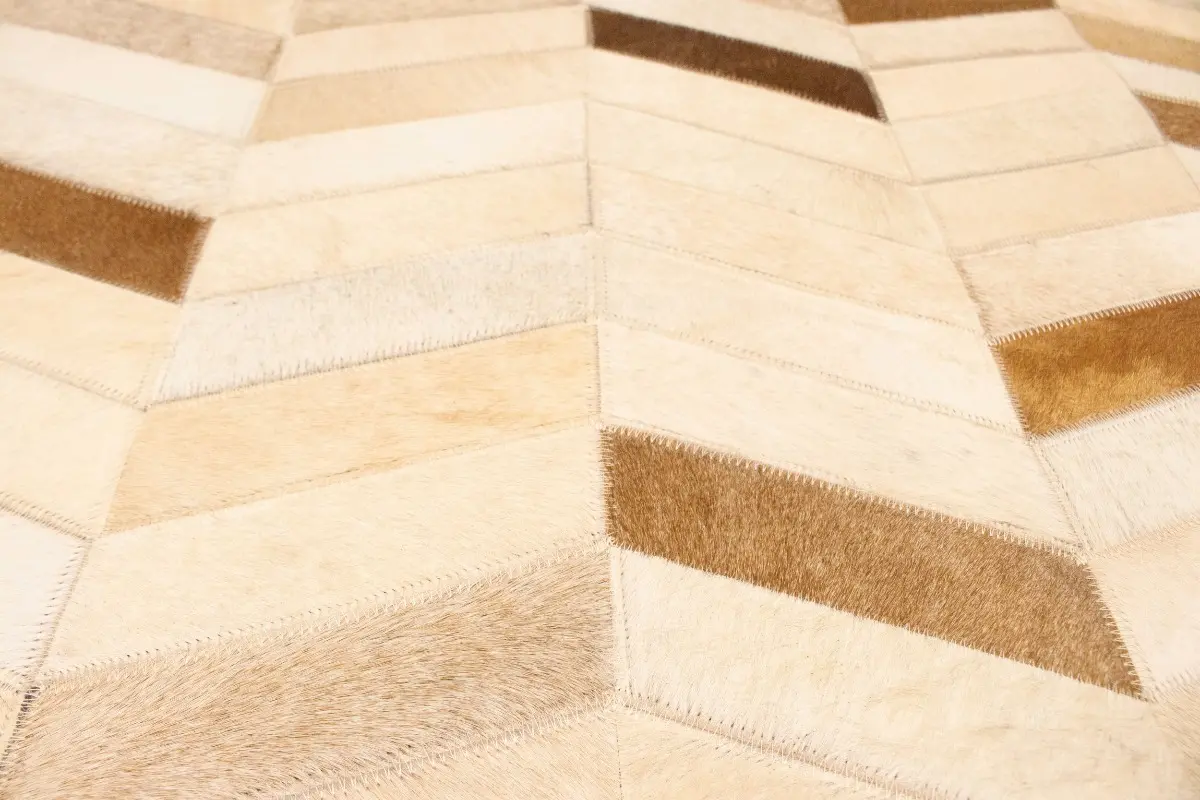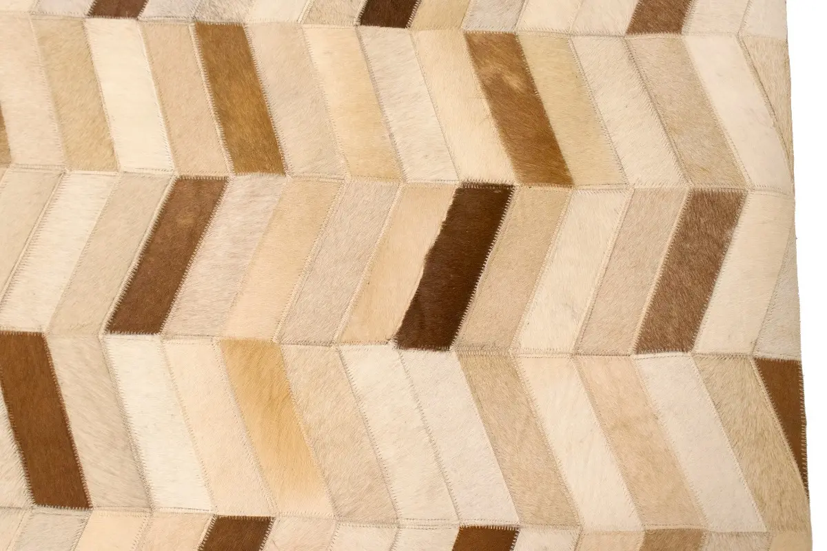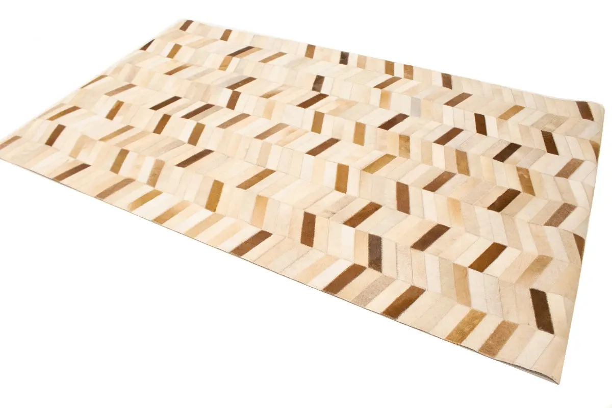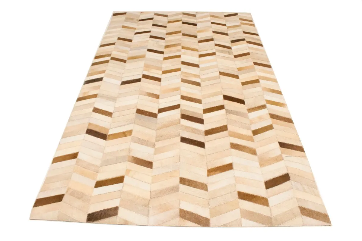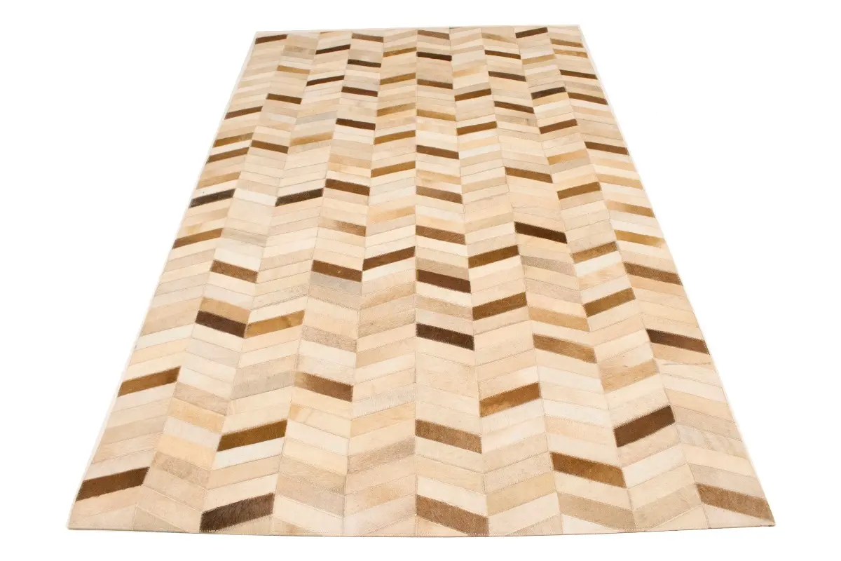 Brown Ivory Cowhide 5X8 Modern Leather Rug
