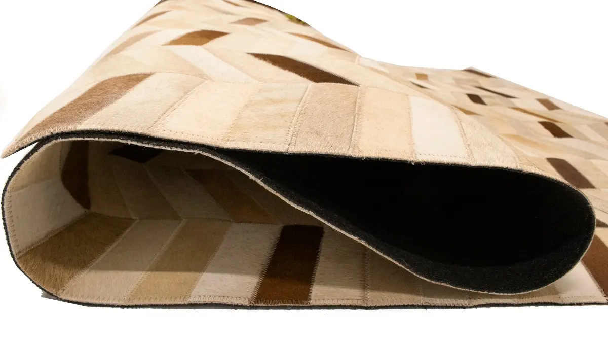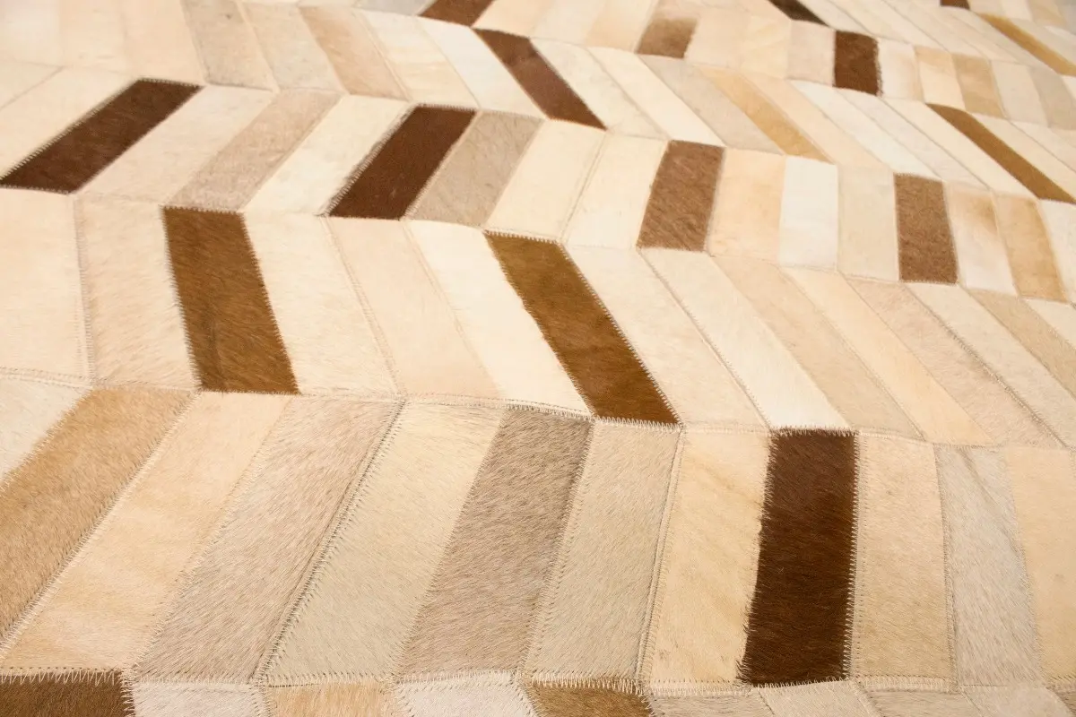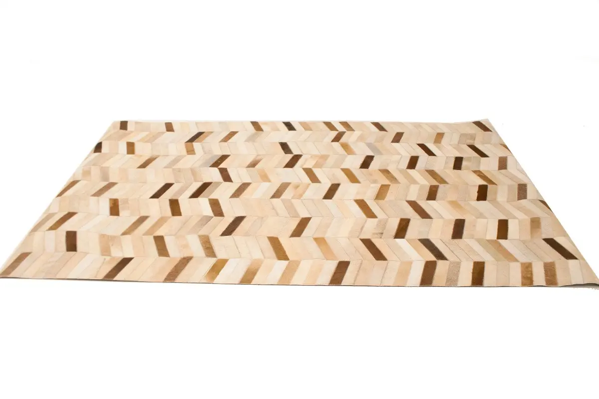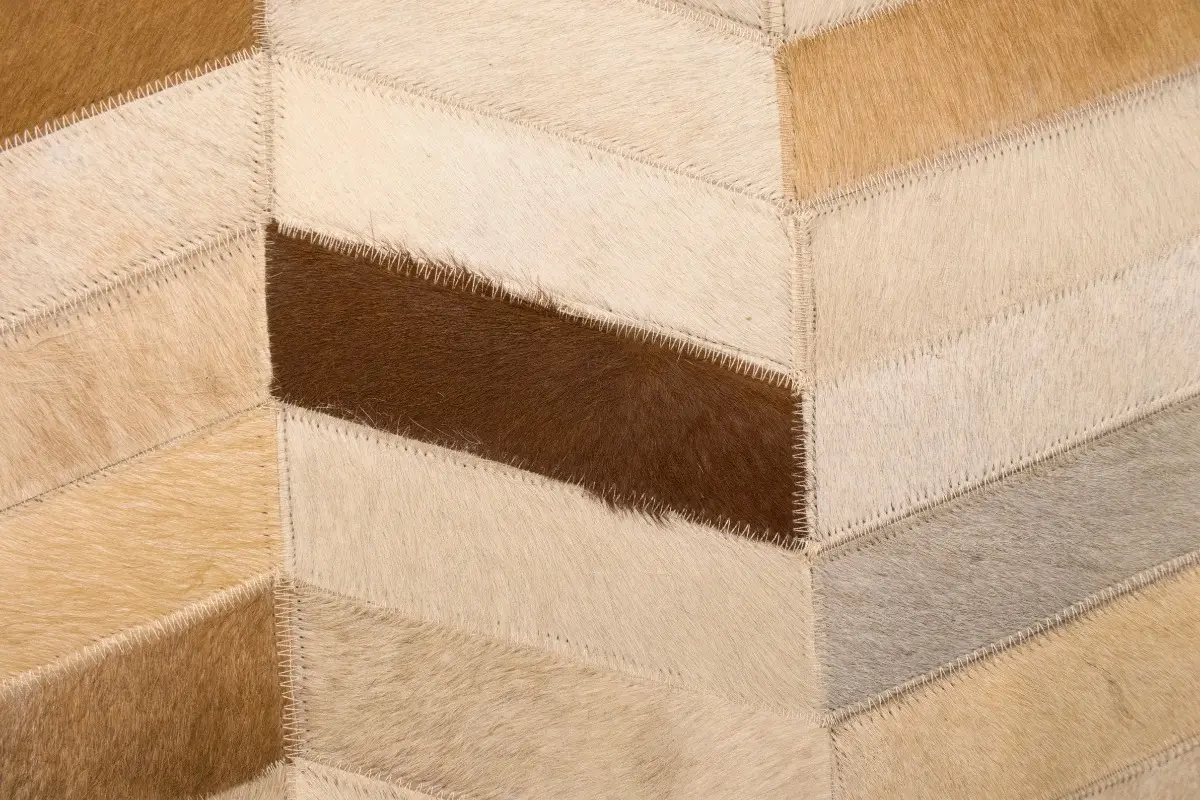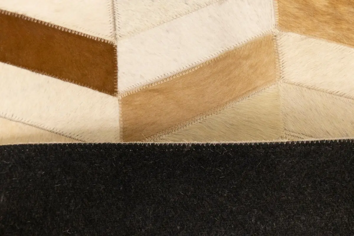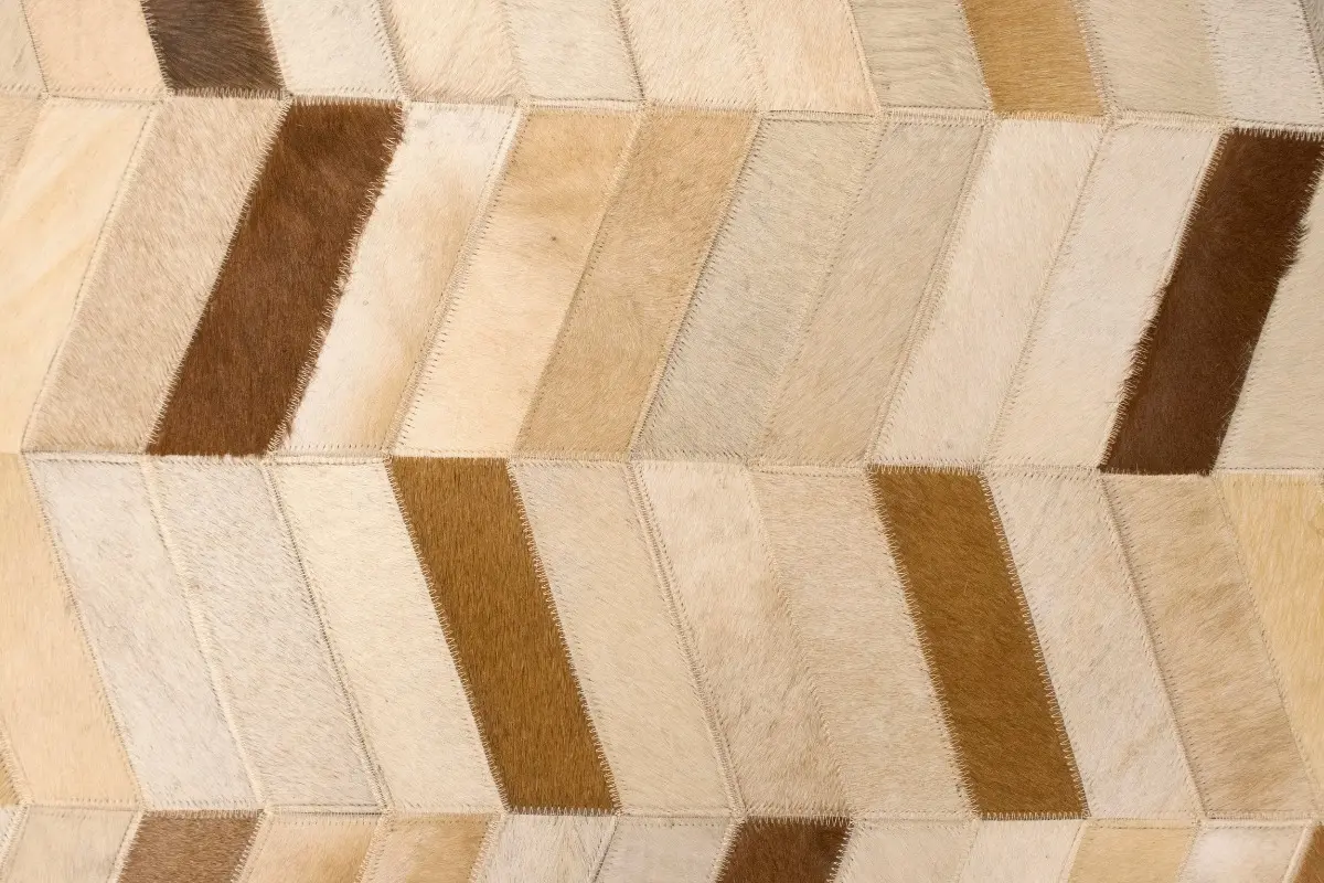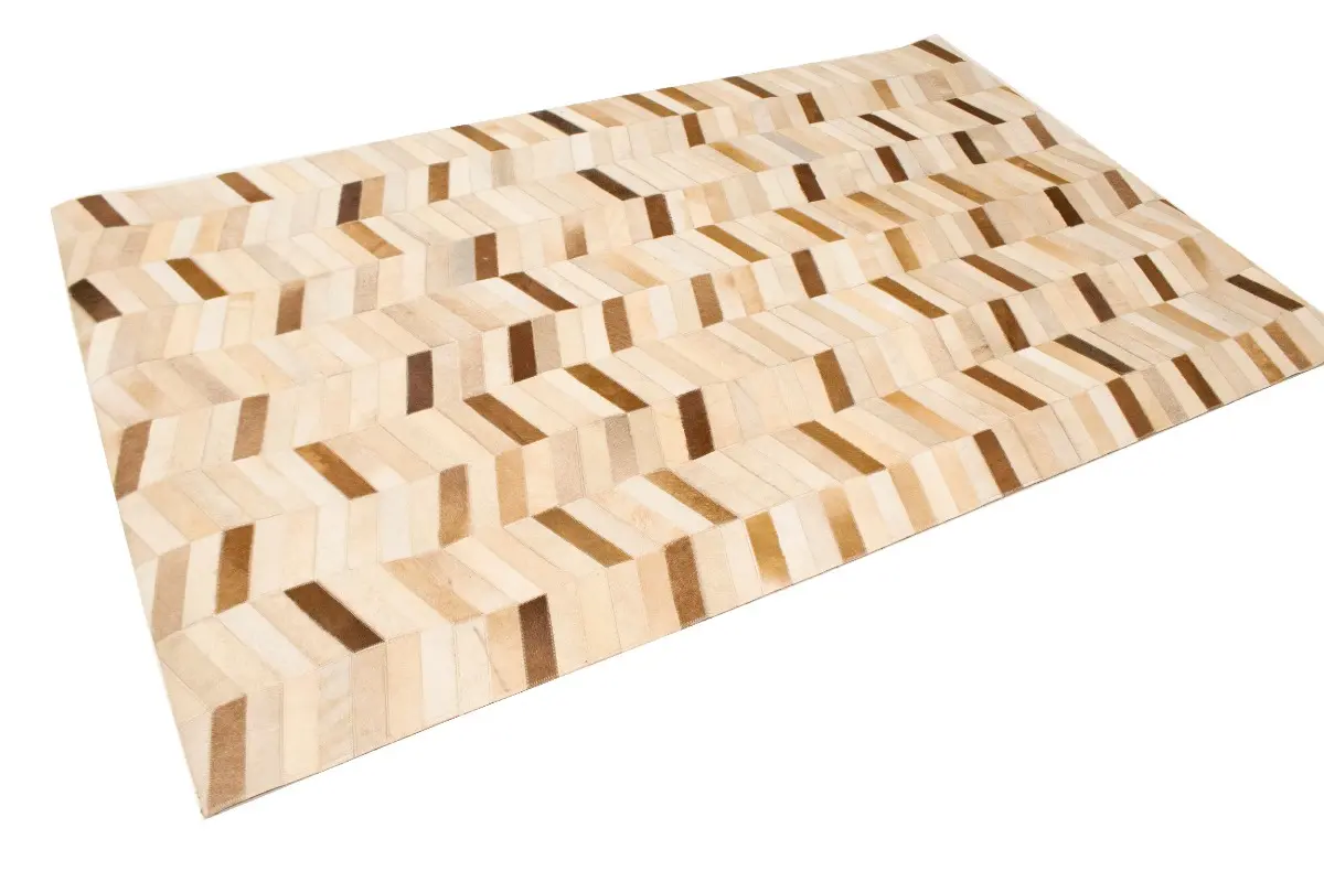 Brown Ivory Cowhide 5X8 Modern Leather Rug
