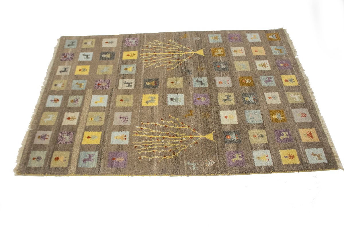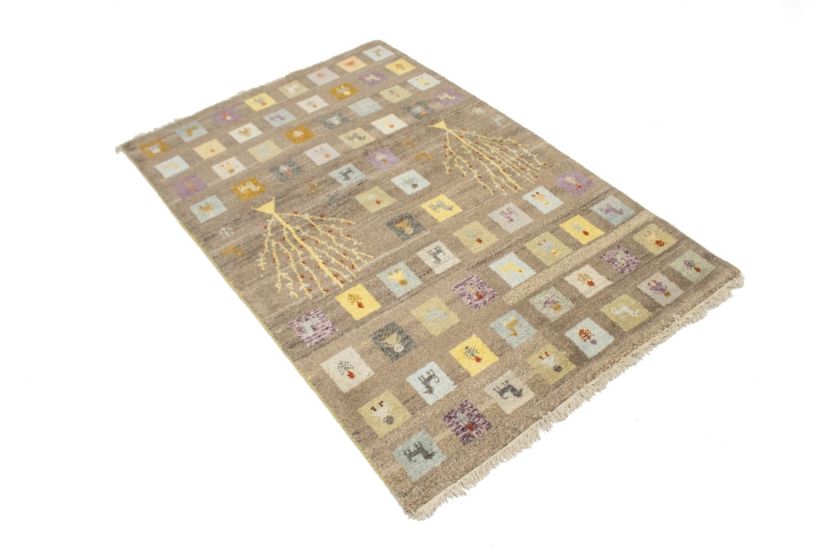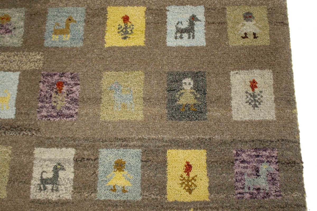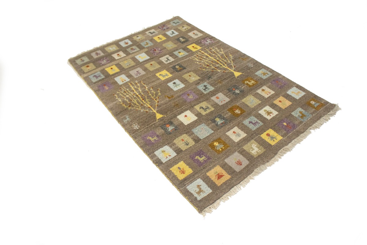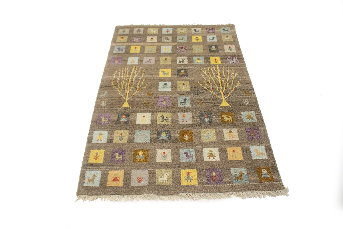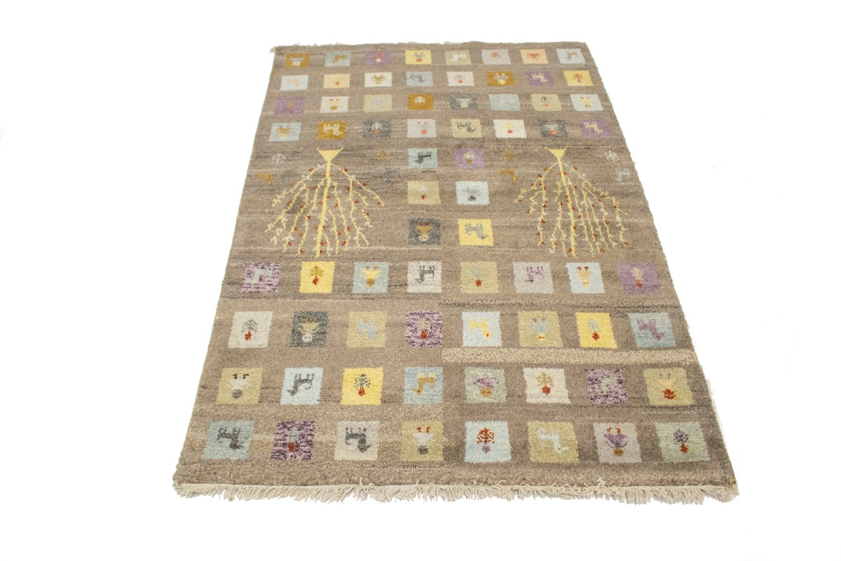 Brown Tribal Checkered 4X6 Indo-Gabbeh Oriental Rug