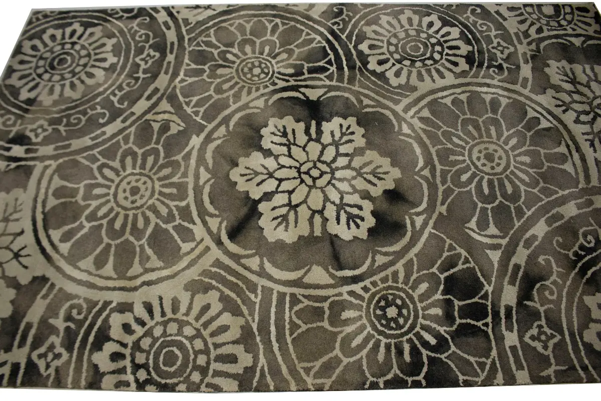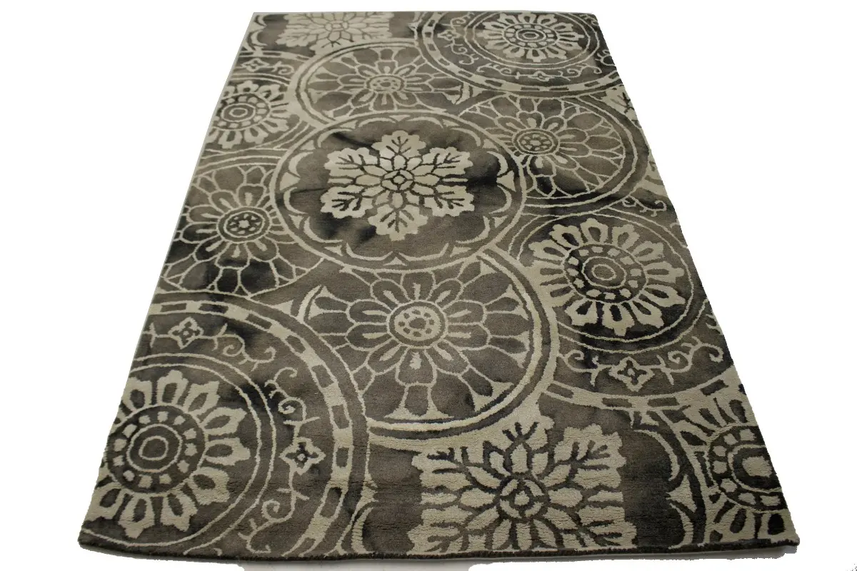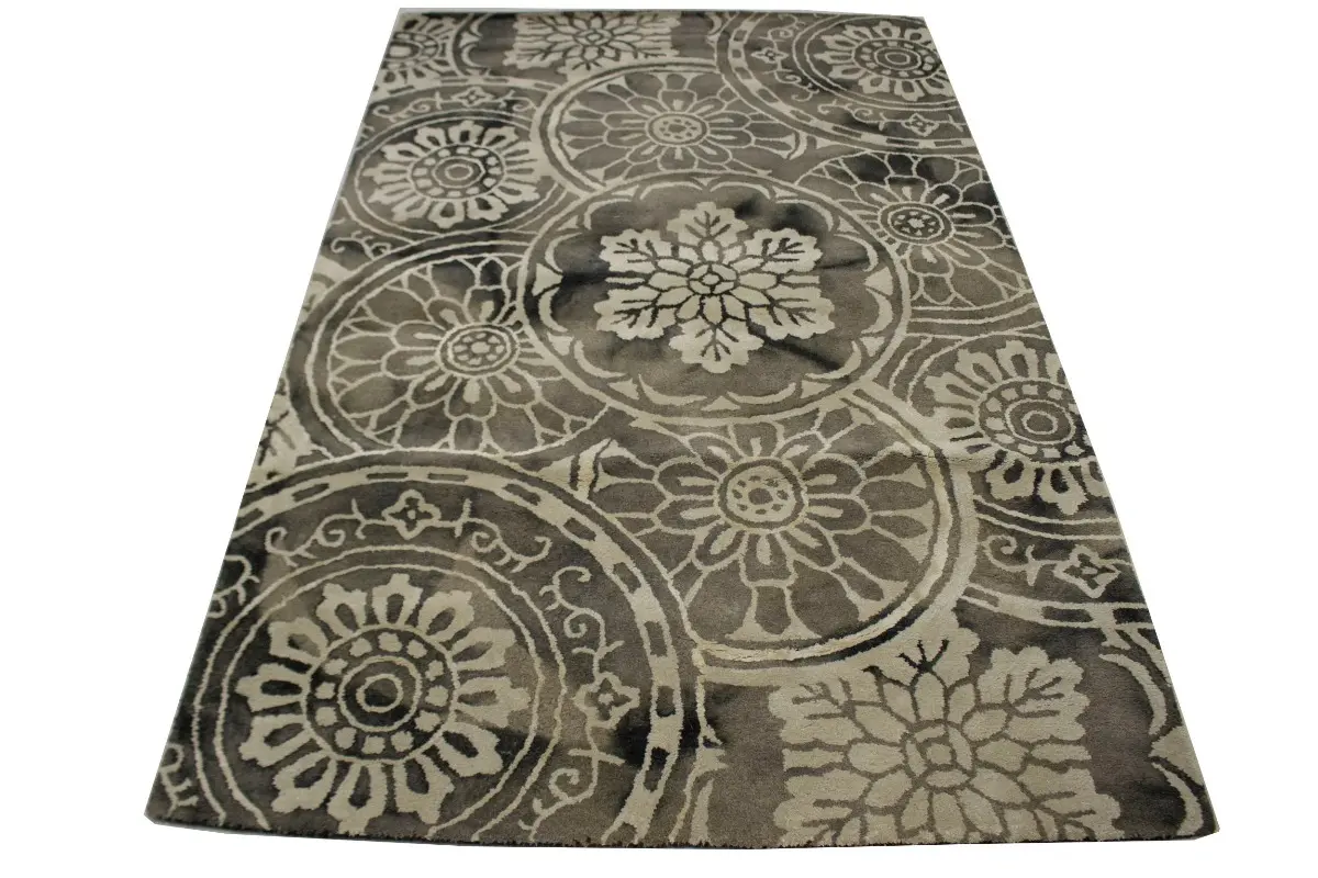 Brownish Gray Floral 5X8 Hand-Tufted Modern Rug