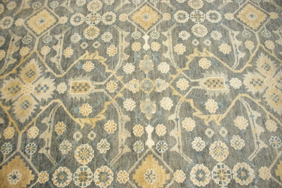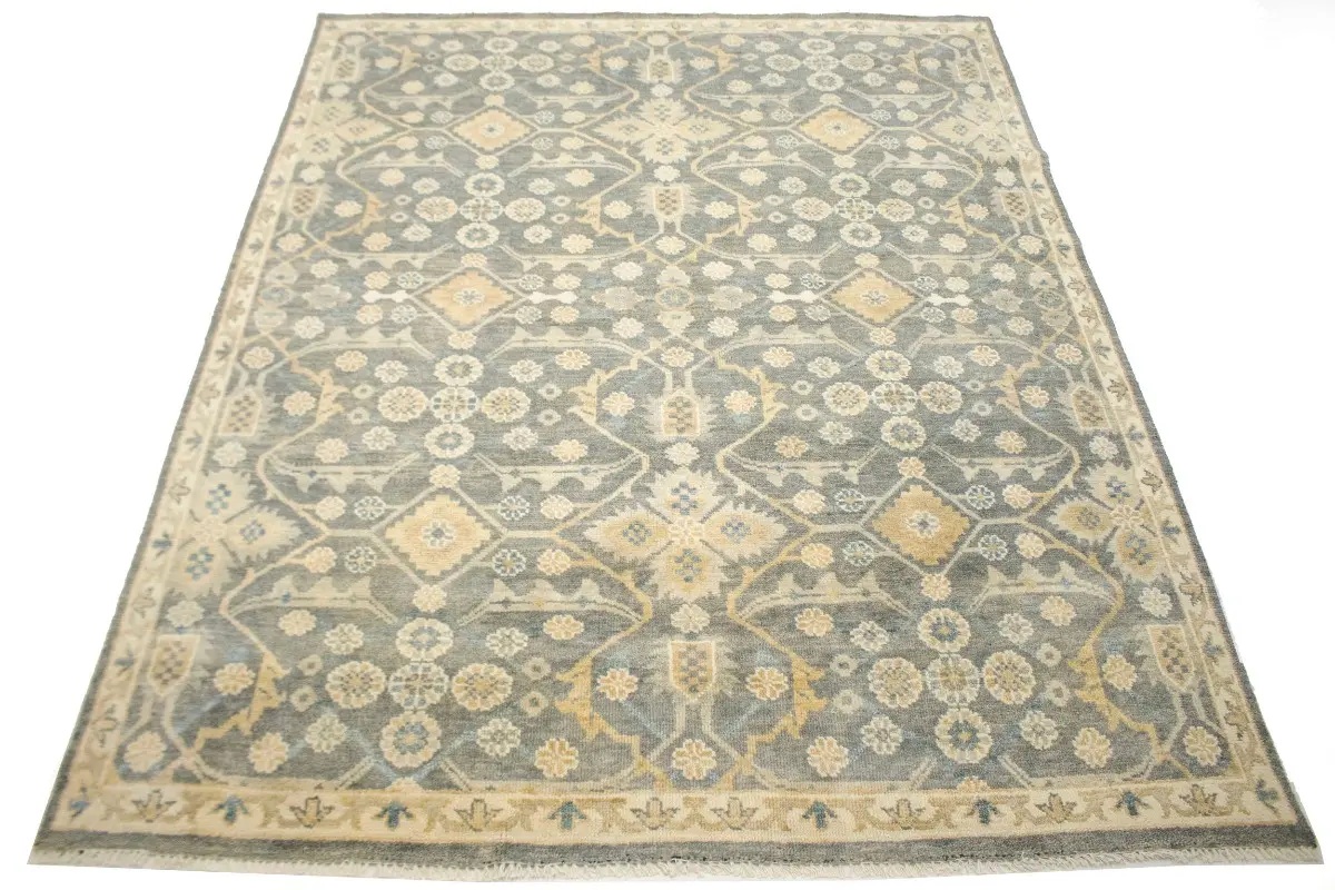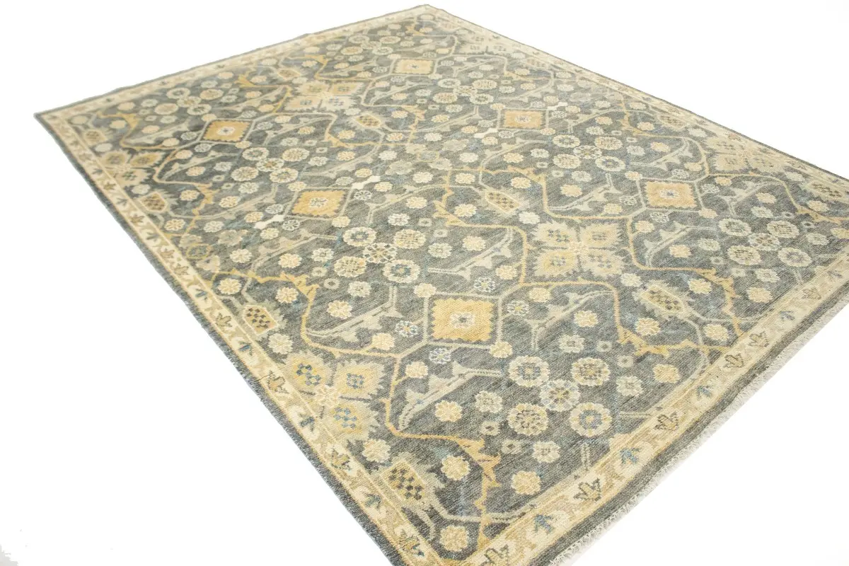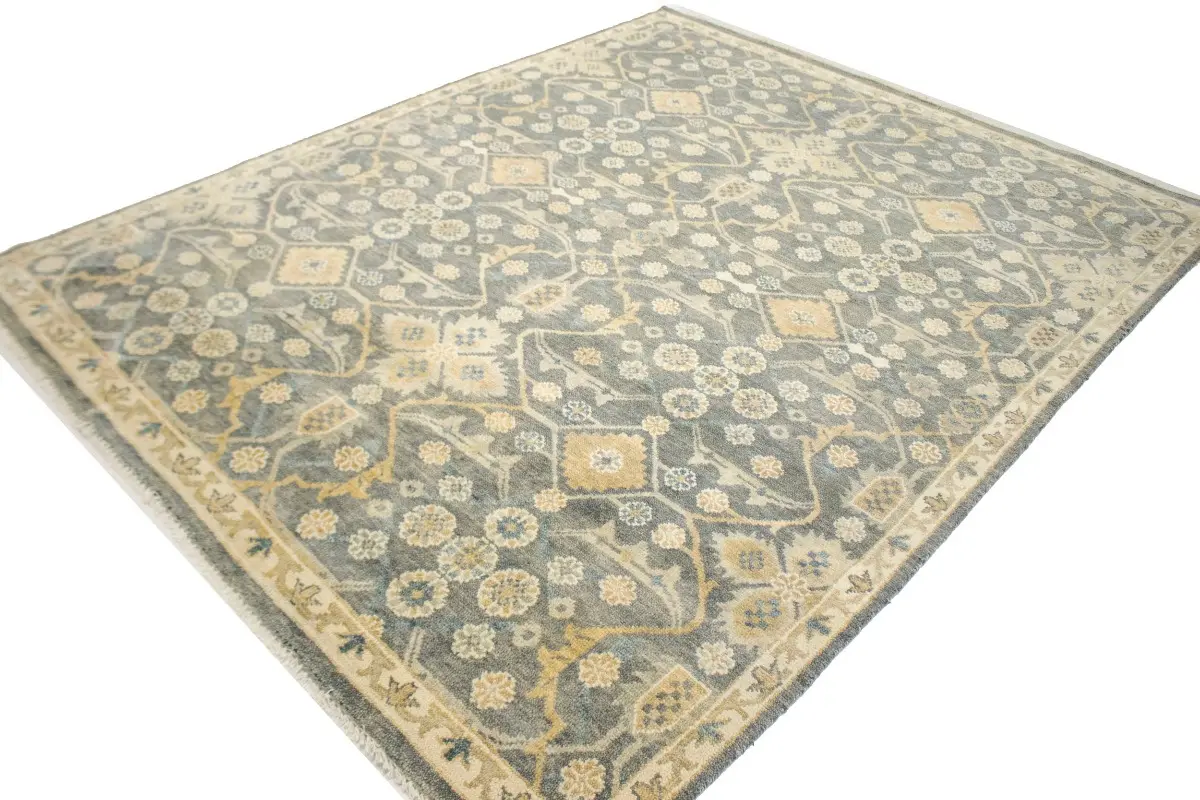 Handmade 8X10 gray oriental rug made with vegetable dyes (fine wool pile and cotton foundation), superior knot count, and alluring ancient designs. This Oriental rug never will go out of style and would be among your most valuable treasures.