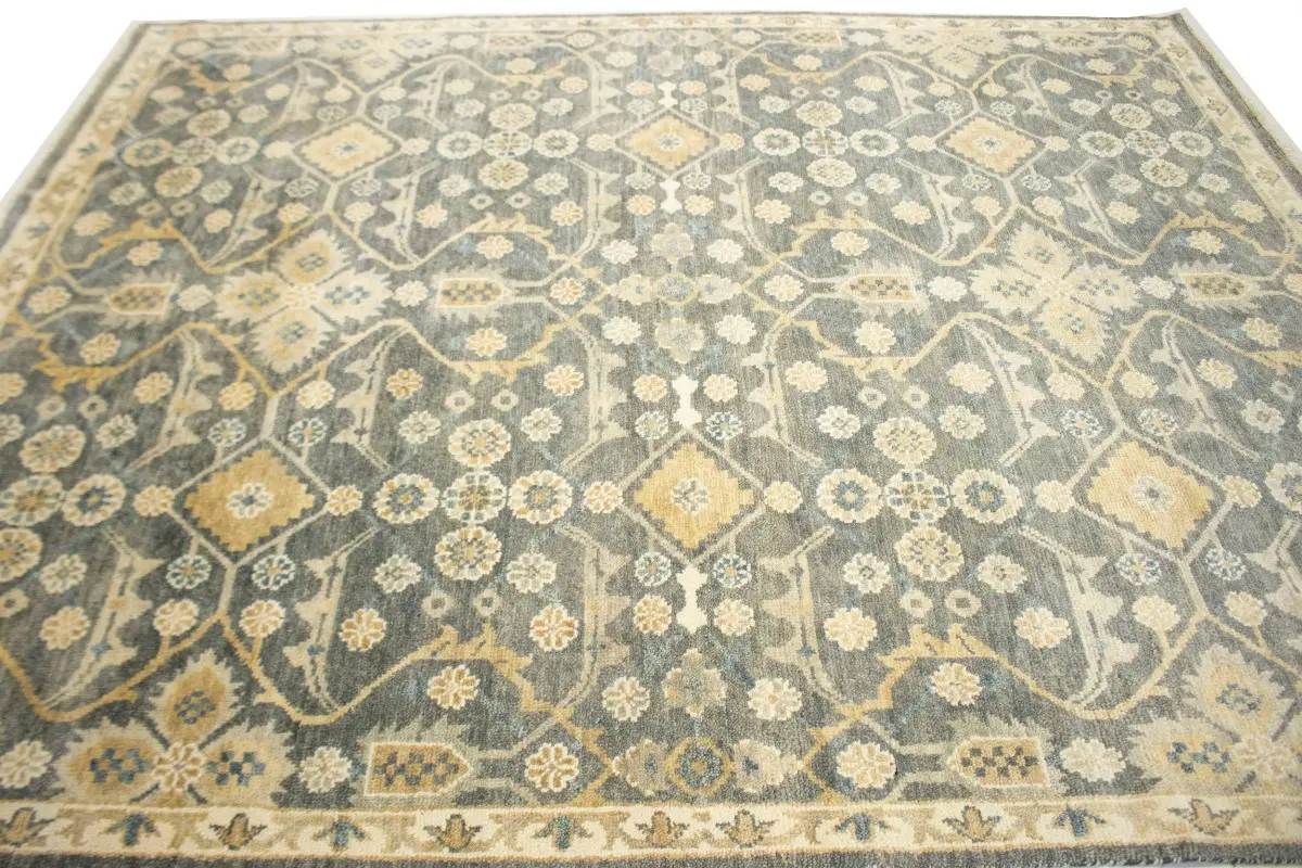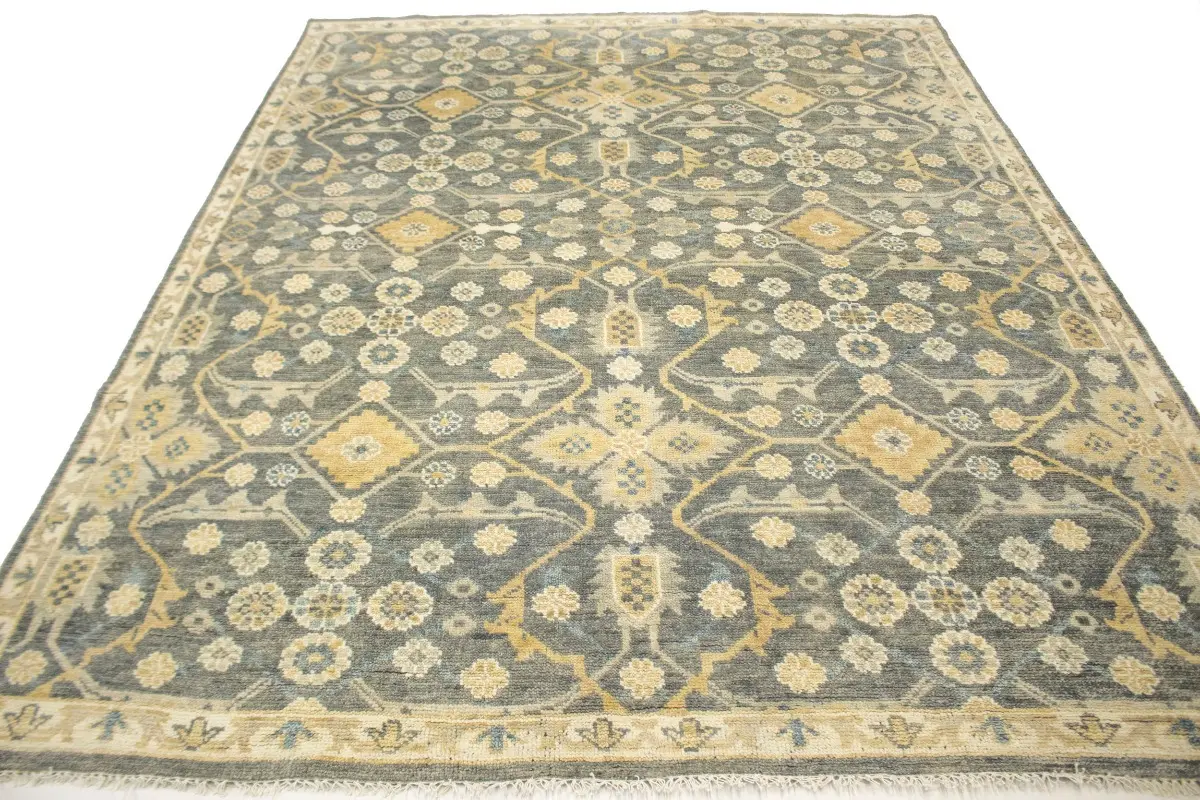 This genuine 8X10 gray new Oriental rug was well-constructed by the hands of master weavers motivated by a variety of stunning artistic designs, to recreate the aged look of the exceptional piece with a richness of color and developed decorative background field. What set this vintage style Oriental area rug from the others are the material and dye used (wool pile and cotton foundation), knot count, ancient designs, fantastic grades, and its regional historical connection: it has deep roots, from the story of the people who produced it to the meaning of the symbols and colors displayed across its canvas that have been praised for centuries. This Indian home décor carpet will be completely cozy and inviting that never will go out of style! Also, this Oriental rug would be among your most valuable treasures, it is a great investment that increase in value over time, and it will last a lifetime because was woven with high-quality, all-natural wool. Eco-friendly, opulent yet affordable; this rug give you an extra pop of character to help define your home environment with elegance and warmth that will capture the eyes and attention of your audience (homeowners, designers, decorators, family and friends). OT-5595