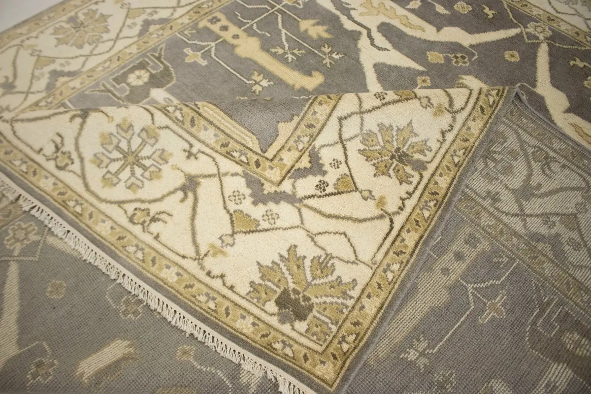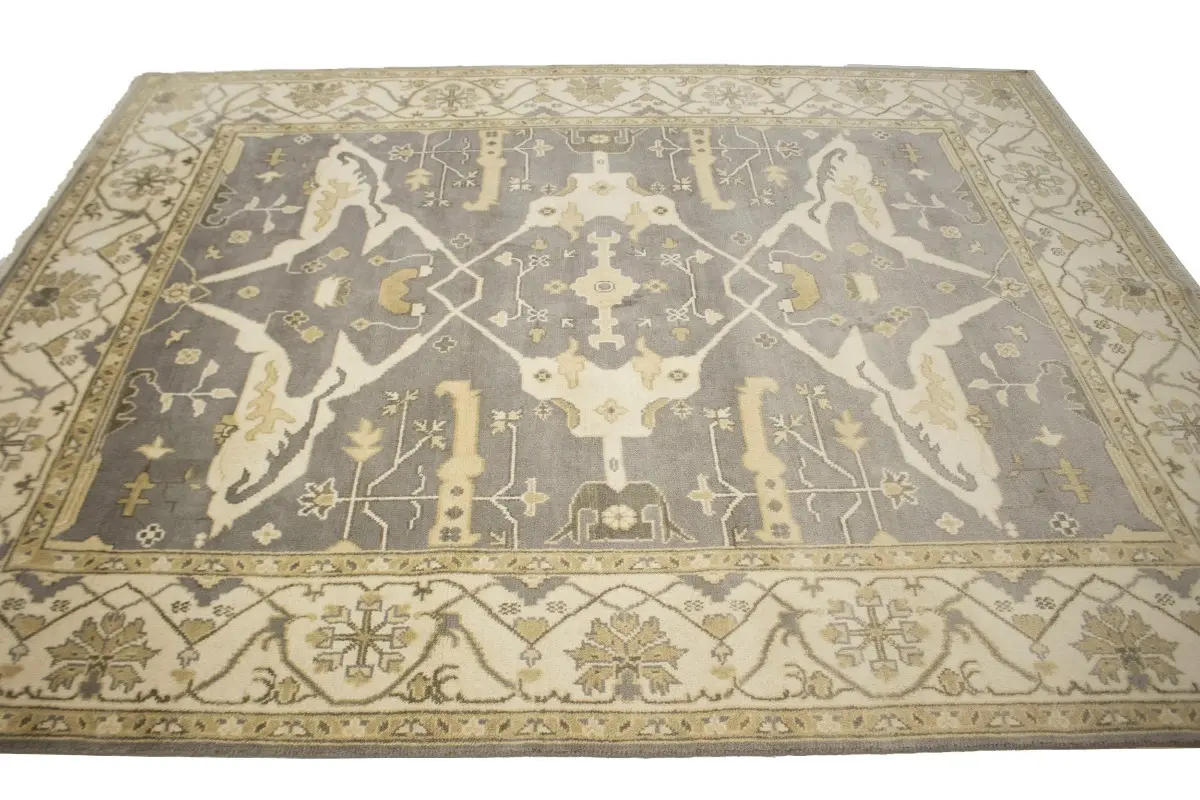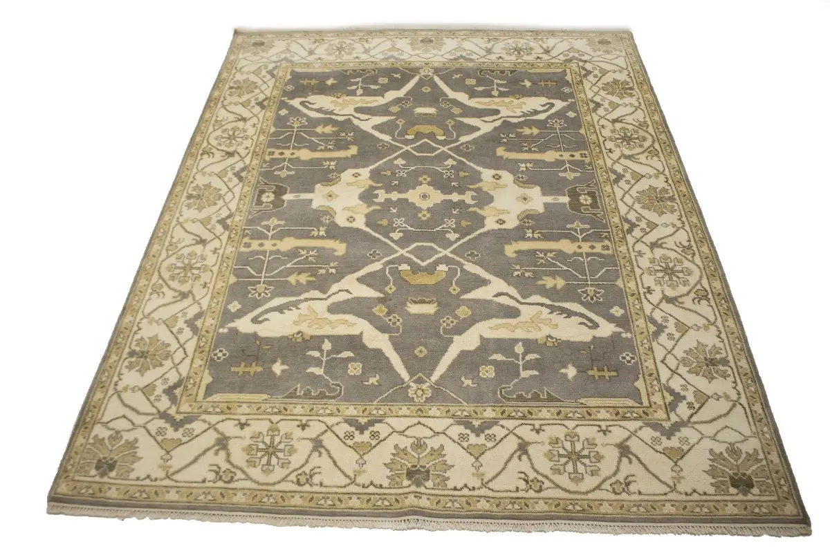 This genuine 8X10 gray new Oriental rug was made by the hands of gifted weavers inspired by a variety of spectacular artistic designs, to recreate the aged look of the original piece with a richness of color and ornately patterned background field. What set this vintage style Oriental area rug from the others are the material and dye used (wool pile and cotton foundation), knot count, ancient designs, fantastic grades, and its regional historical connection: it has deep roots, from the story of the people who produced it to the meaning of the symbols and colors displayed across its canvas that have been praised for centuries. This Indian home décor carpet will be completely cozy and inviting that never will go out of style! Also, this Oriental rug would be among your most valuable treasures, it is a great investment that accrues value over time, and it will last for generations because was woven with high-quality, all-natural wool. Environmentally friendly, opulent yet affordable; this rug will give you a thorough amount of character to help define your living space with elegance and warmth that will capture the eyes and attention of your audience (homeowners, designers, decorators, family and friends). OT-4796