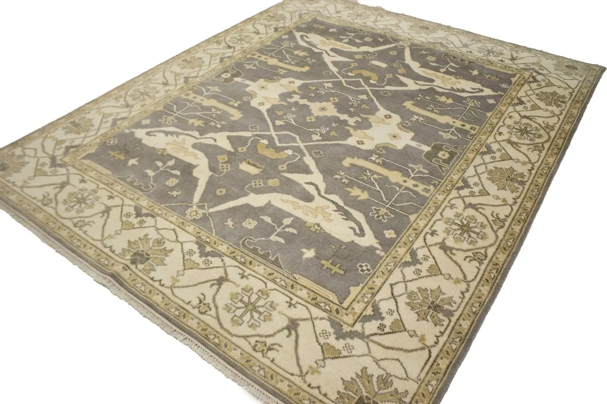 Brownish Gray Floral 8X10 Oushak Oriental Rug