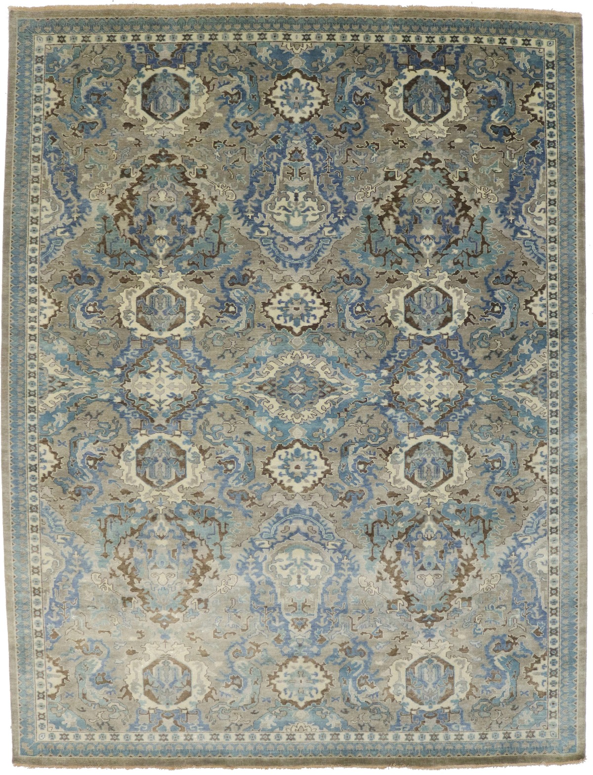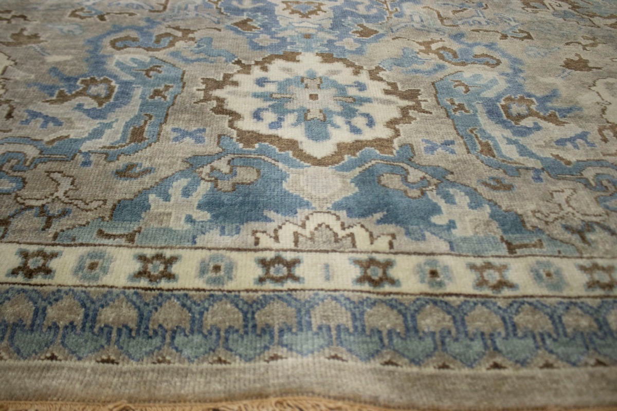 This genuine 9X12 cream new Oriental rug was made by the hands of gifted weavers inspired by a variety of spectacular artistic designs, to recreate the aged look of the original piece with a richness of color and ornately patterned background field. What set this vintage style Oriental area rug from the others are the material and dye used (wool pile and cotton foundation), knot count, ancient designs, fantastic grades, and its regional historical connection: it has deep roots, from the story of the people who produced it to the meaning of the symbols and colors displayed across its canvas that have been praised for centuries. This Indian home décor carpet will be completely cozy and inviting that never will go out of style! Also, this Oriental rug would be among your most valuable treasures, it is a great investment that accrues value over time, and it will last for generations because was woven with high-quality, all-natural wool. Environmentally friendly, opulent yet affordable; this rug will give you a thorough amount of character to help define your living space with elegance and warmth that will capture the eyes and attention of your audience (homeowners, designers, decorators, family and friends). OT-4989