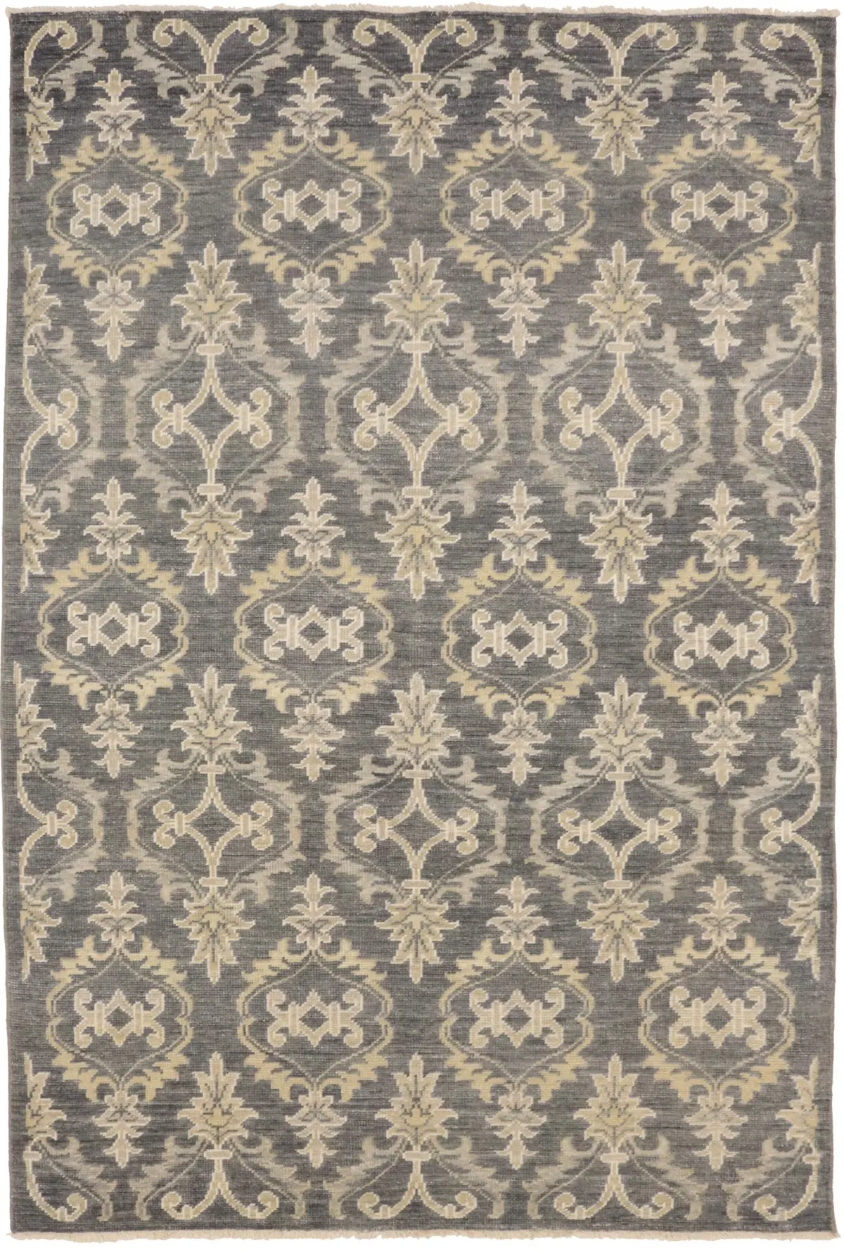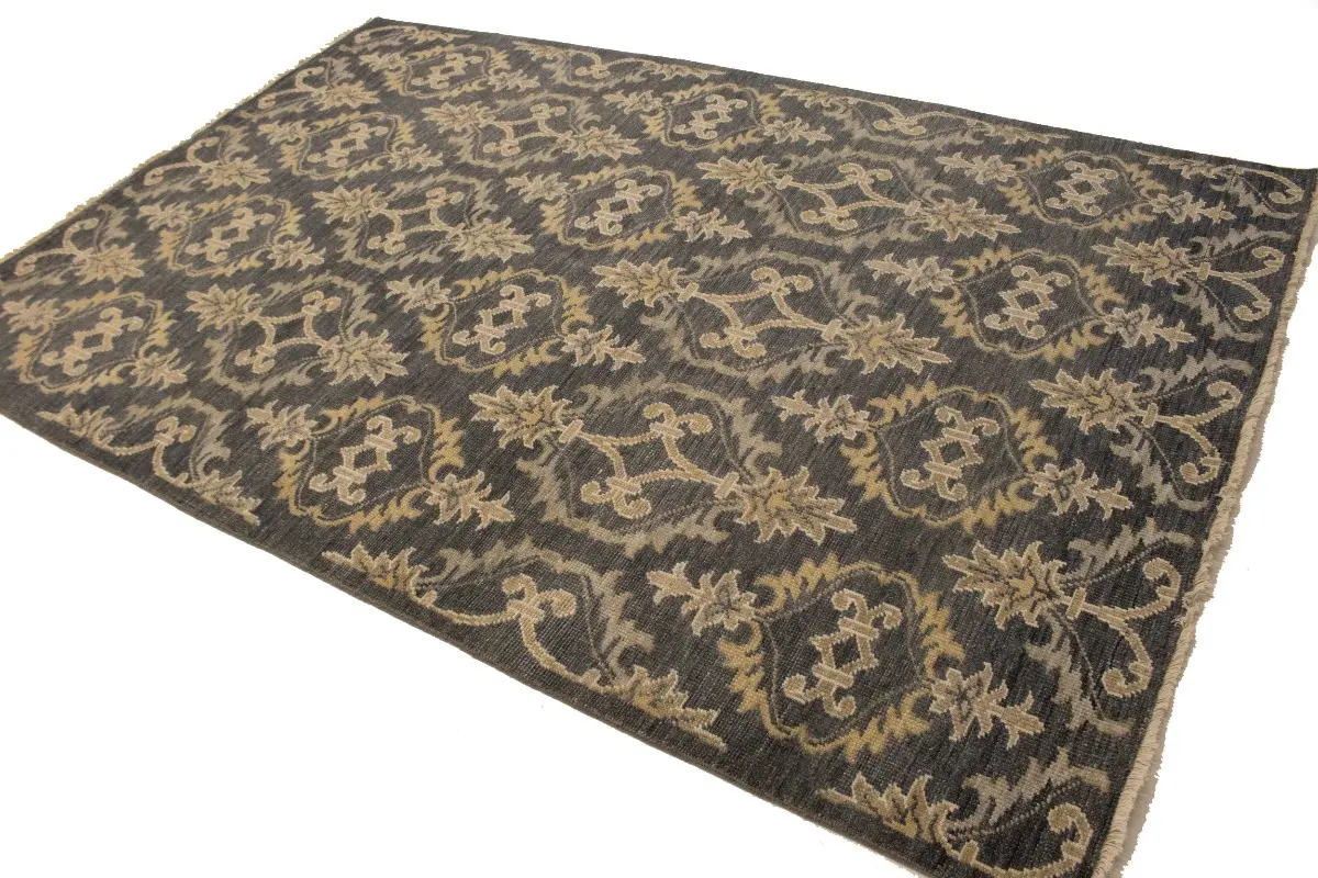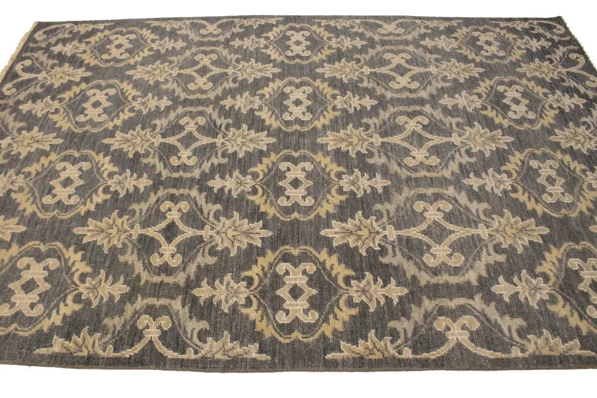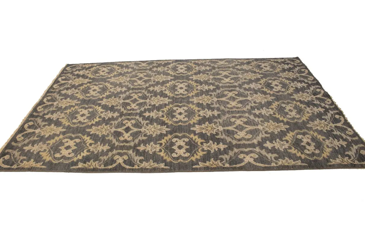This genuine 6X9 gray new Oriental rug was made by the hands of gifted weavers inspired by a variety of spectacular artistic designs, to recreate the aged look of the original piece with a richness of color and ornately patterned background field. What set this vintage style Oriental area rug from the others are the material and dye used (wool pile and cotton foundation), knot count, ancient designs, fantastic grades, and its regional historical connection: it has deep roots, from the story of the people who produced it to the meaning of the symbols and colors displayed across its canvas that have been praised for centuries. This Indian home décor carpet will be completely cozy and inviting that never will go out of style! Also, this Oriental rug would be among your most valuable treasures, it is a great investment that accrues value over time, and it will last for generations because was woven with high-quality, all-natural wool. Environmentally friendly, opulent yet affordable; this rug will give you a thorough amount of character to help define your living space with elegance and warmth that will capture the eyes and attention of your audience (homeowners, designers, decorators, family and friends). OT-6720